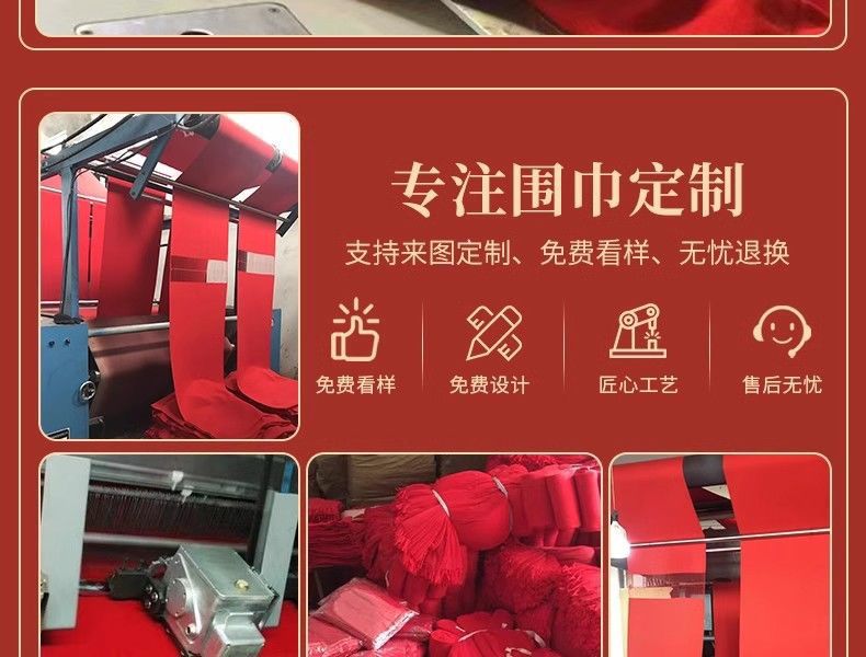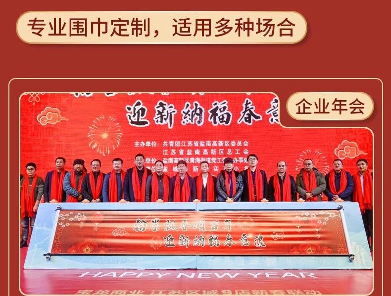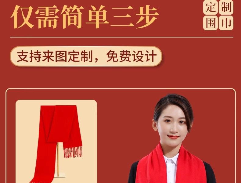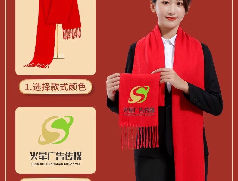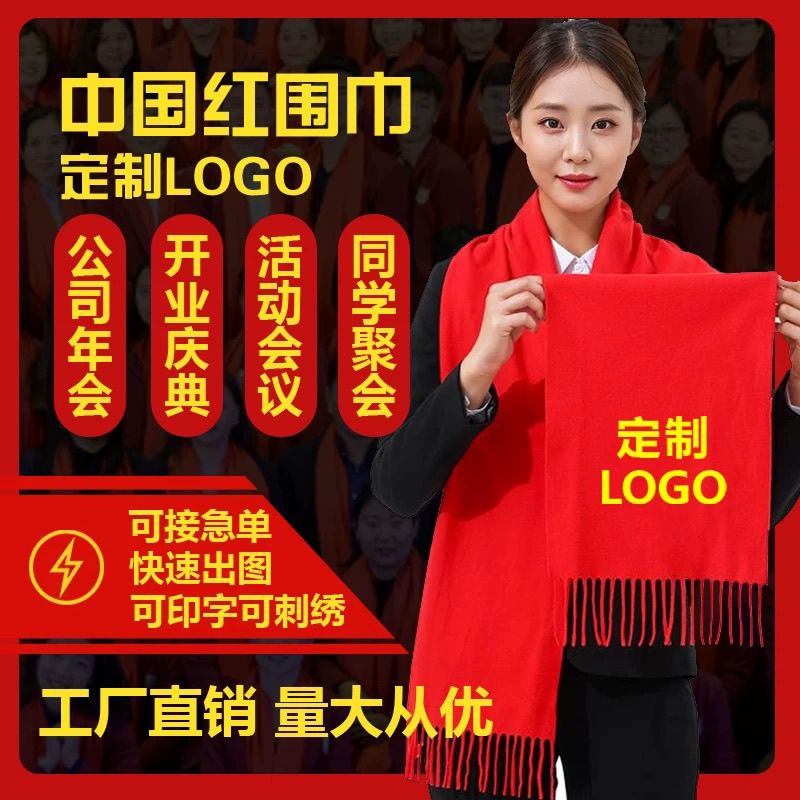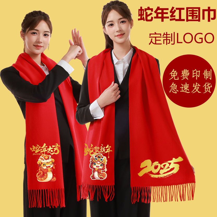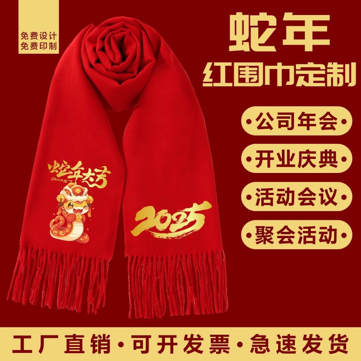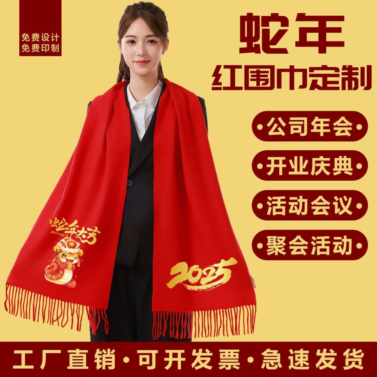 红围巾定制2025蛇年新款中国红围巾印字刺绣logo活动年会聚会庆典