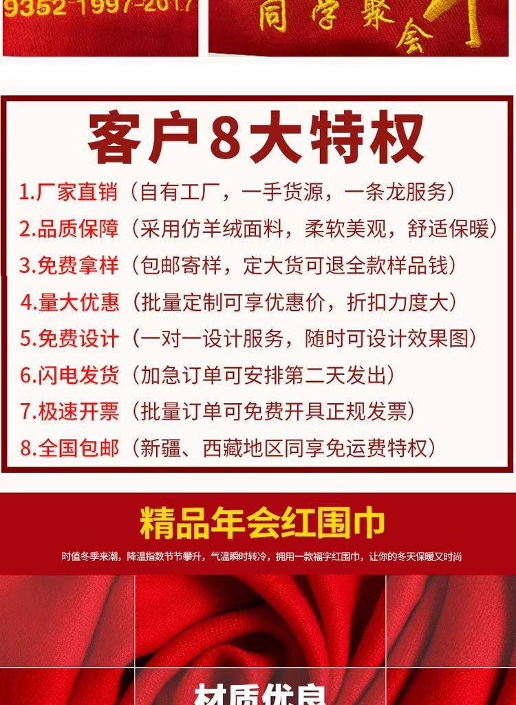 外嫁女红围巾定制logo同学聚会结婚老人祝寿庆典开业活动修谱宗亲