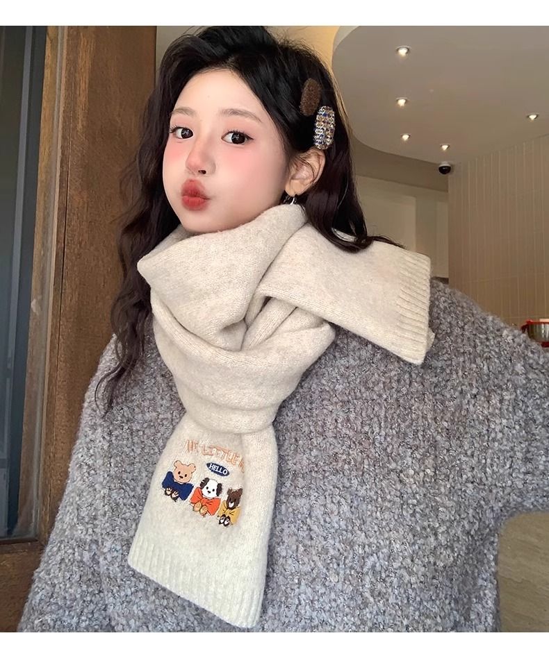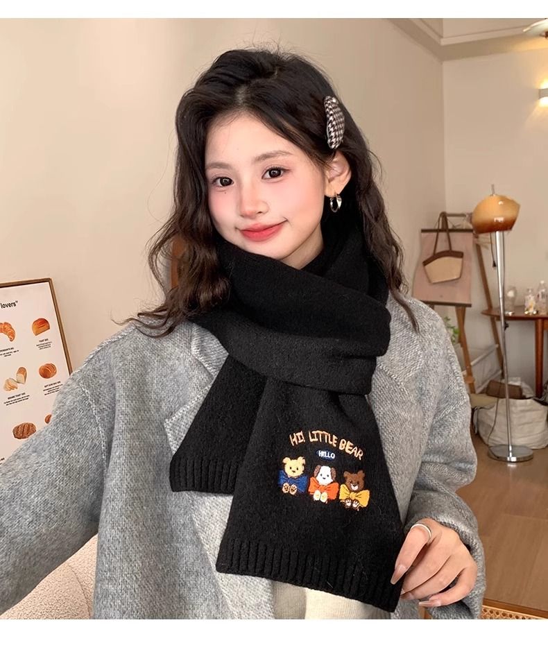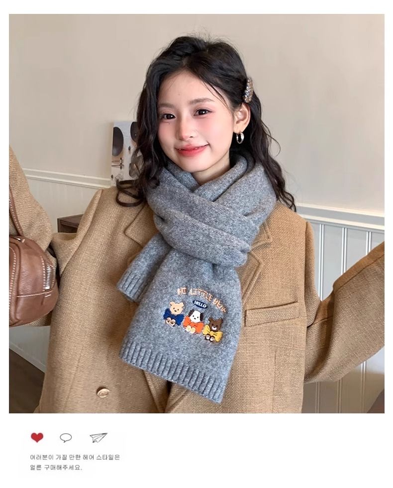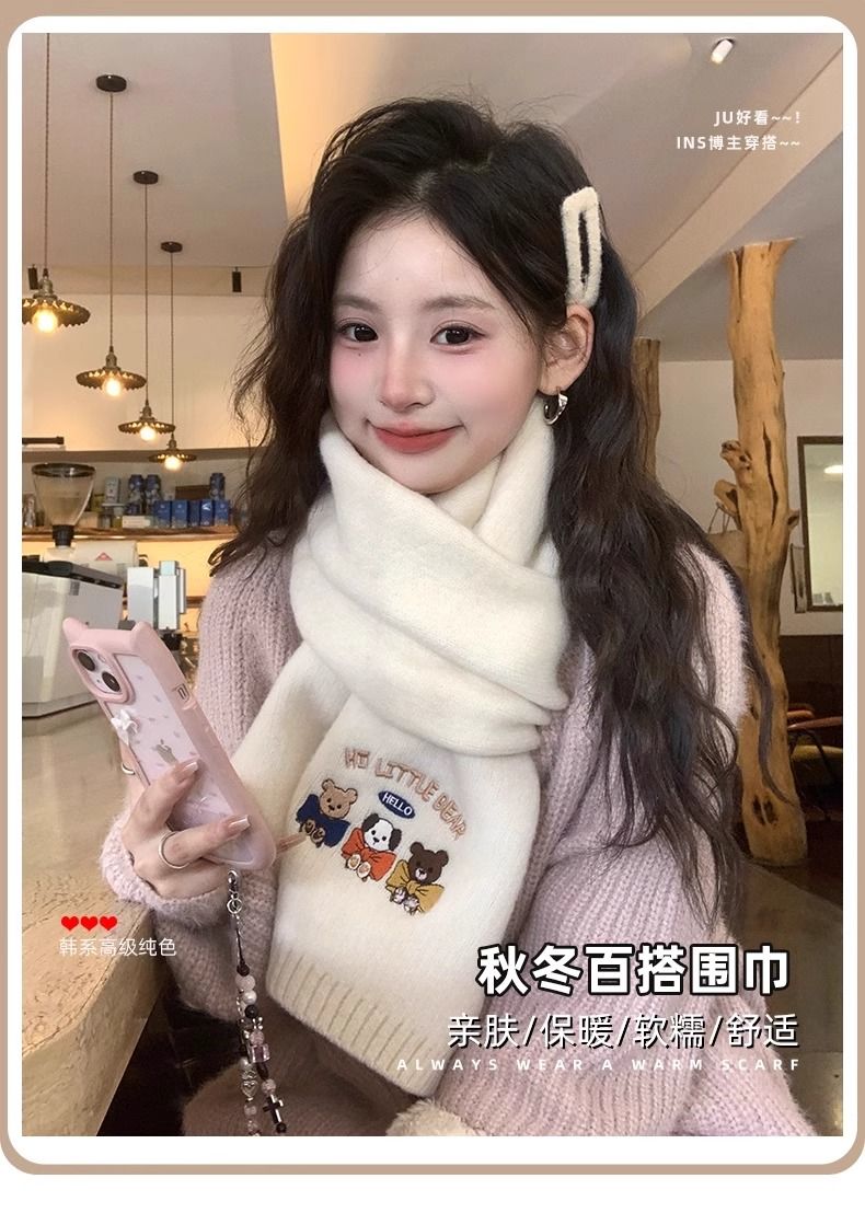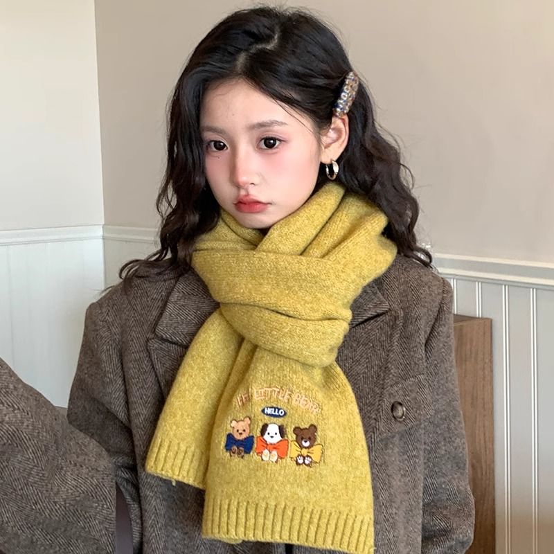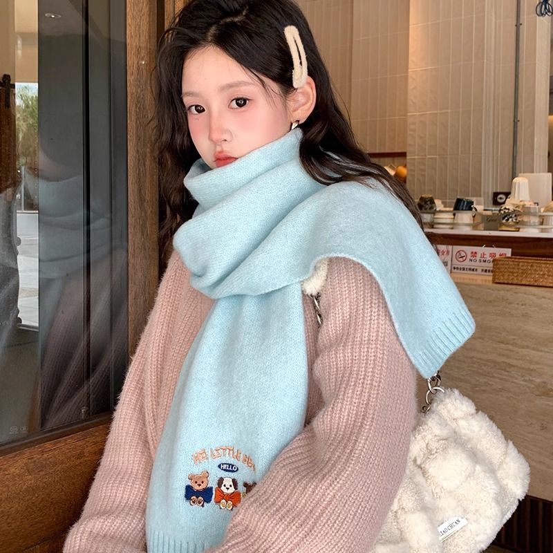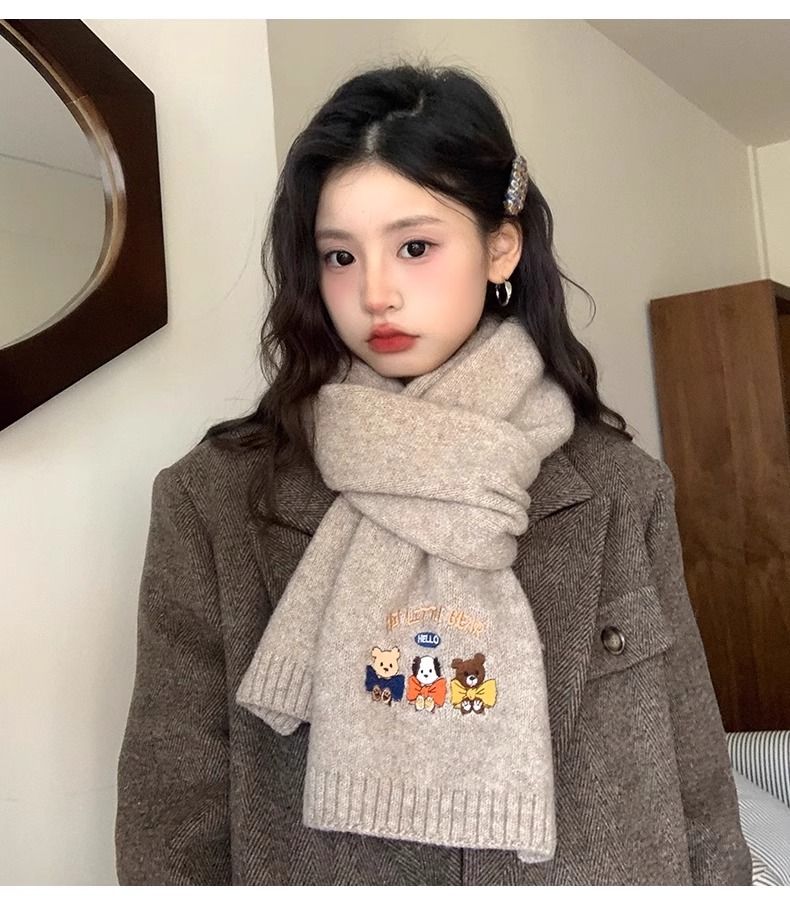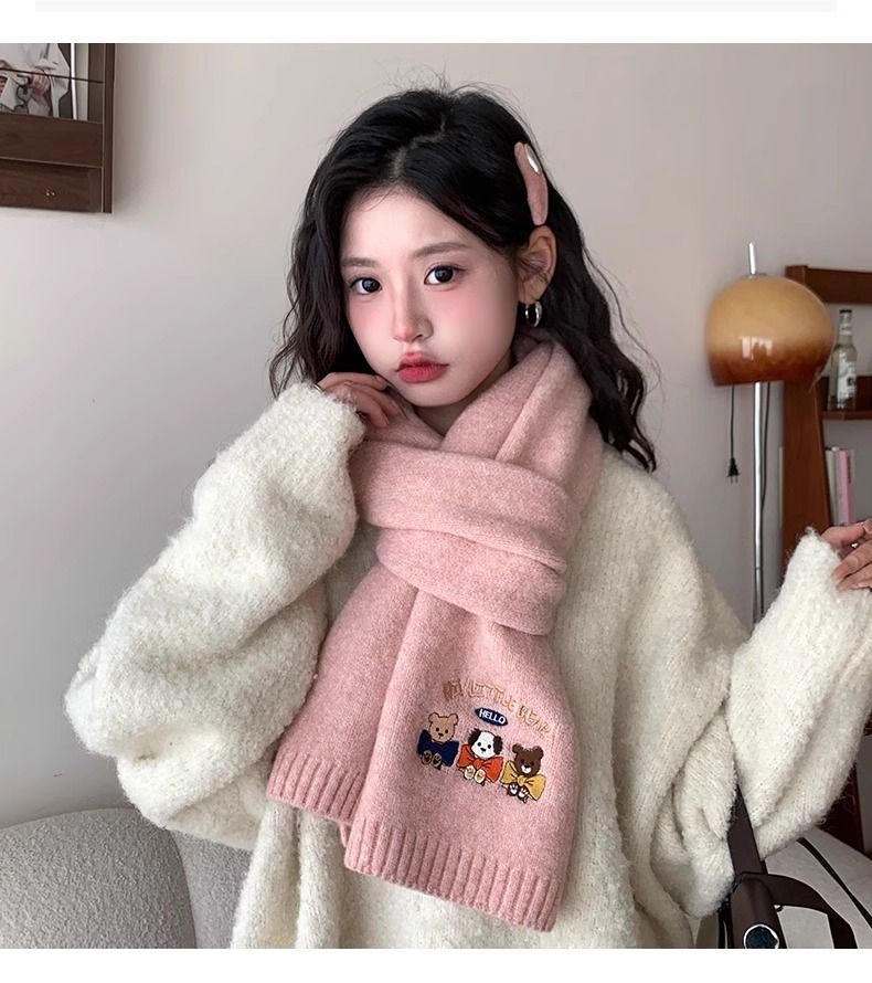 小围巾护颈红色围巾女款冬季针织毛线小熊外搭韩系氛围感保暖围脖