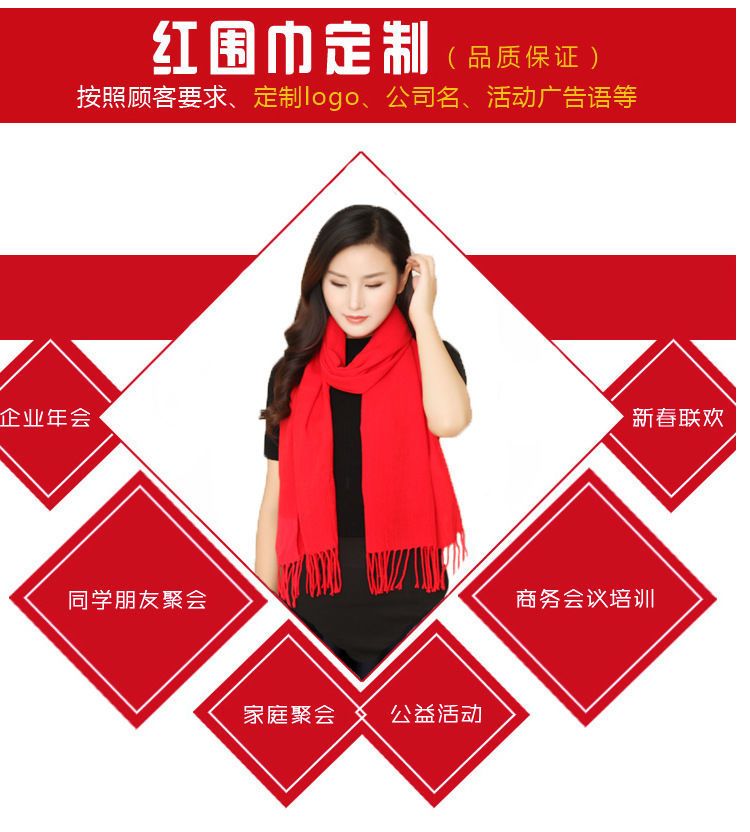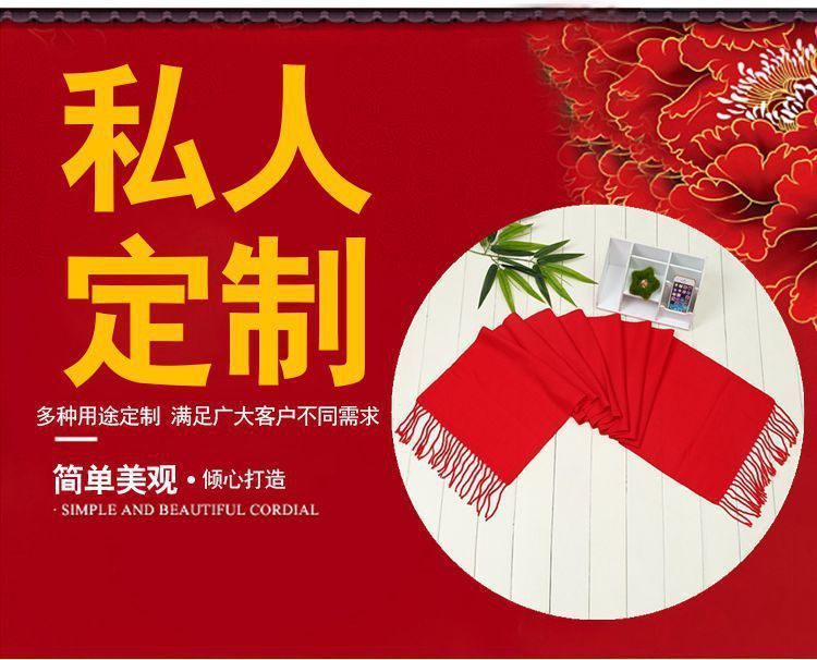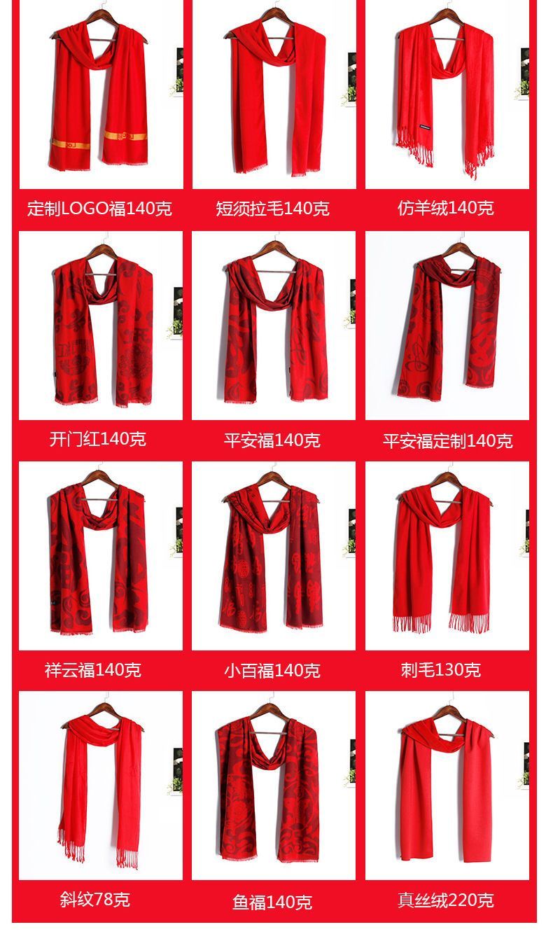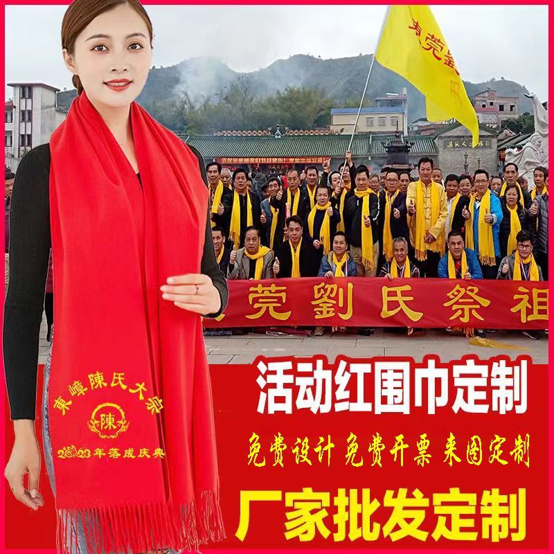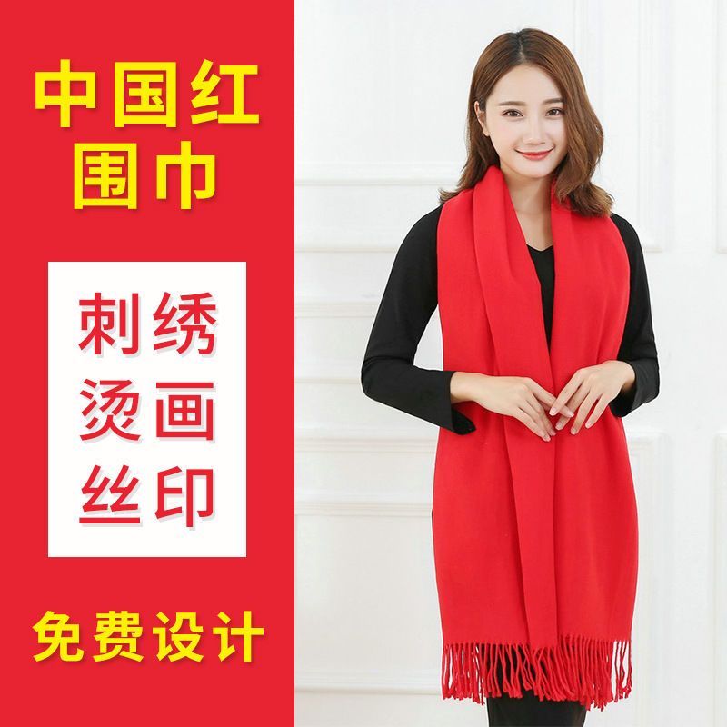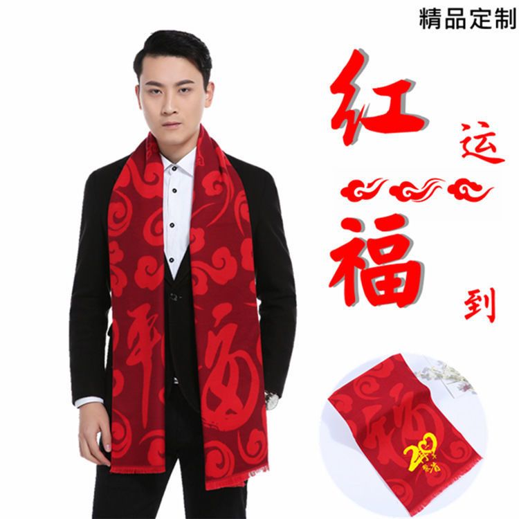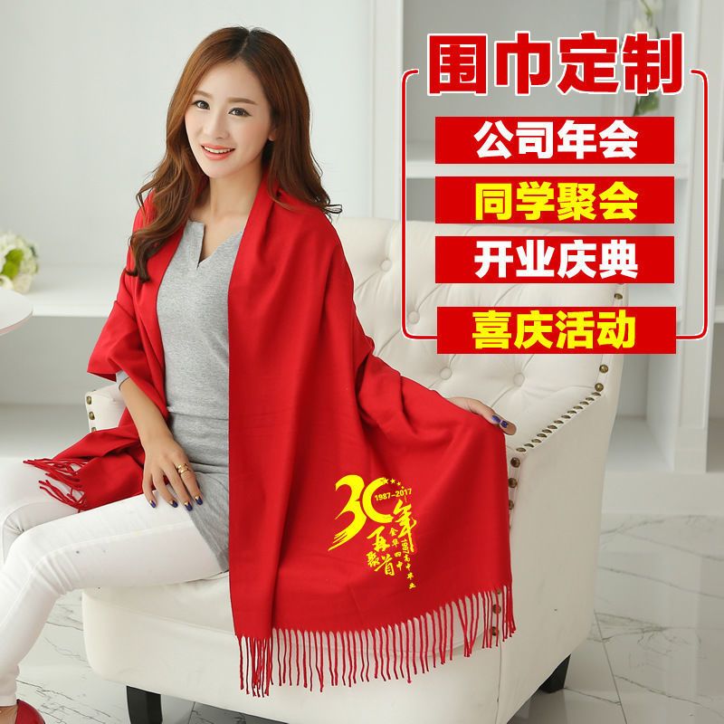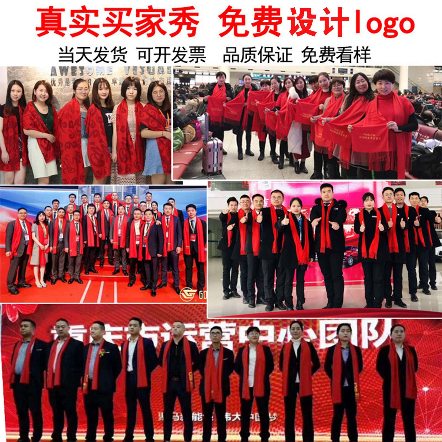 围巾定制logo刺绣中国红大红色公司年会同学聚会福字围巾印字围脖