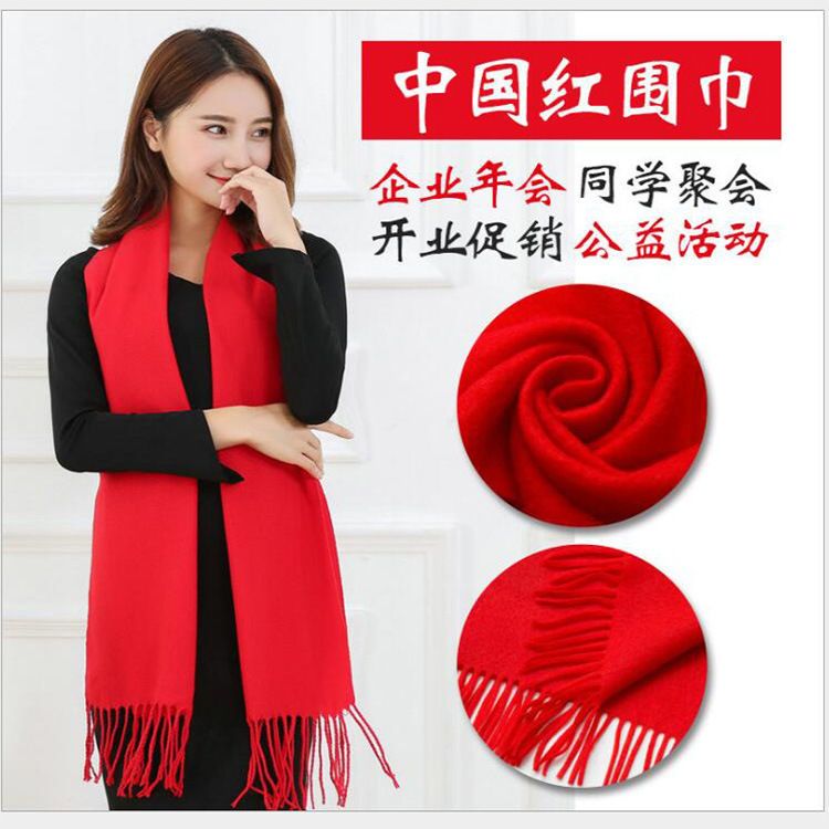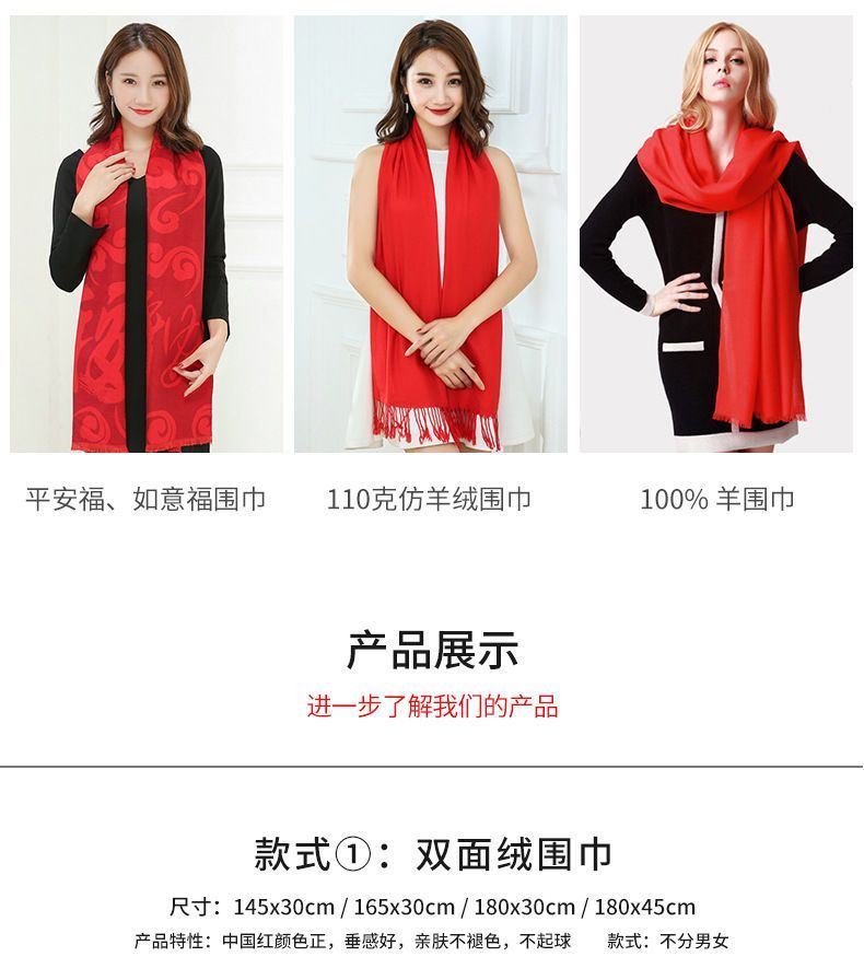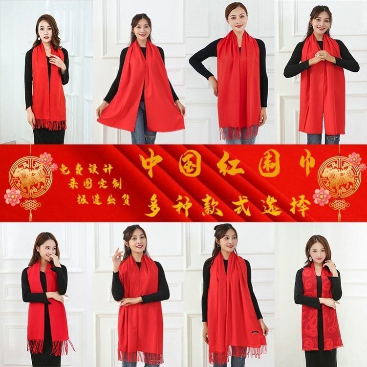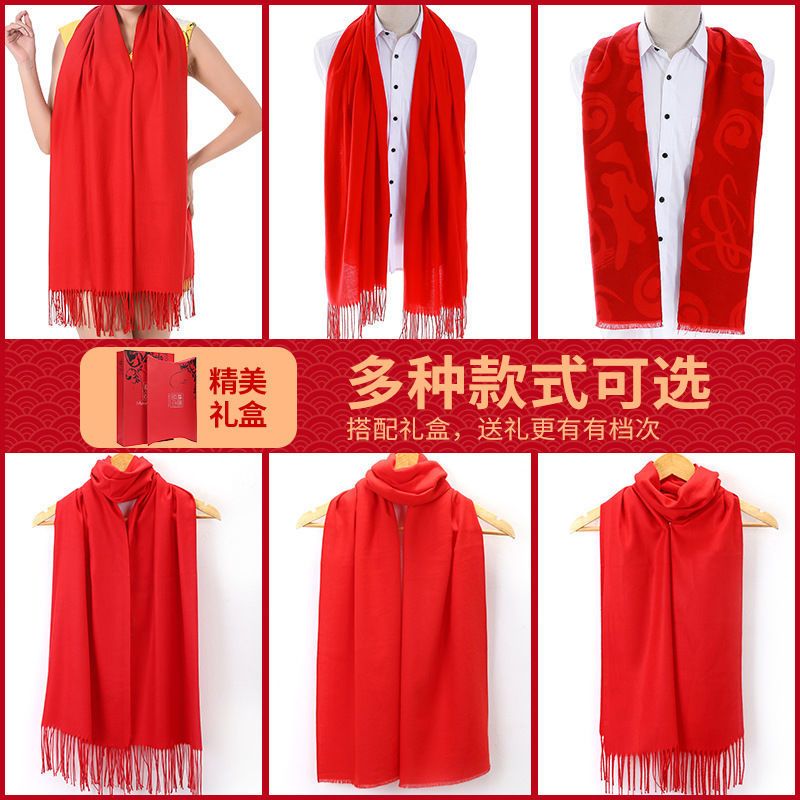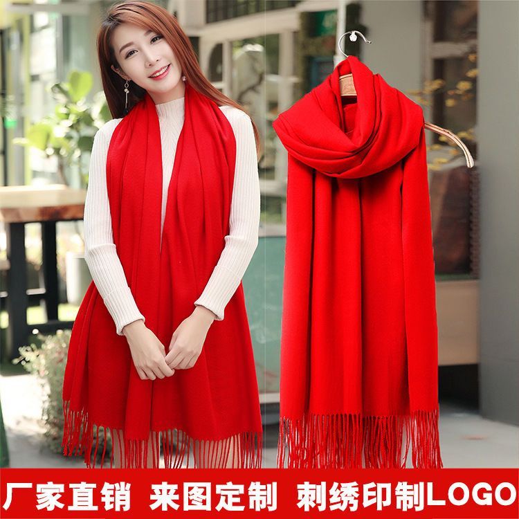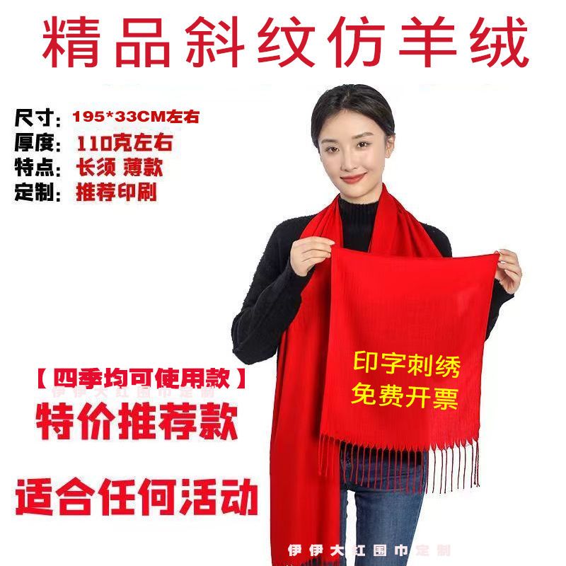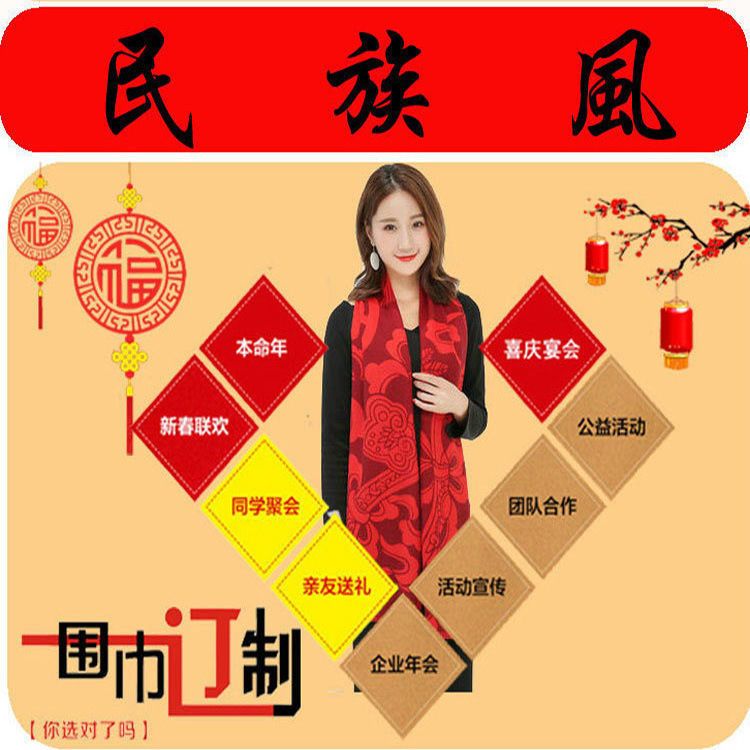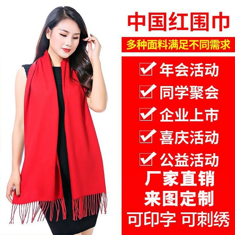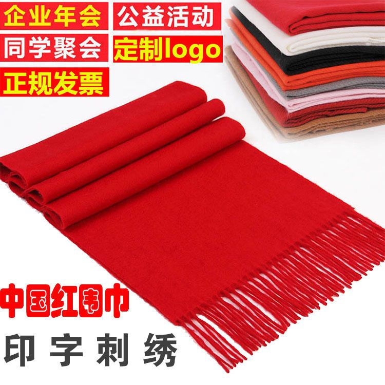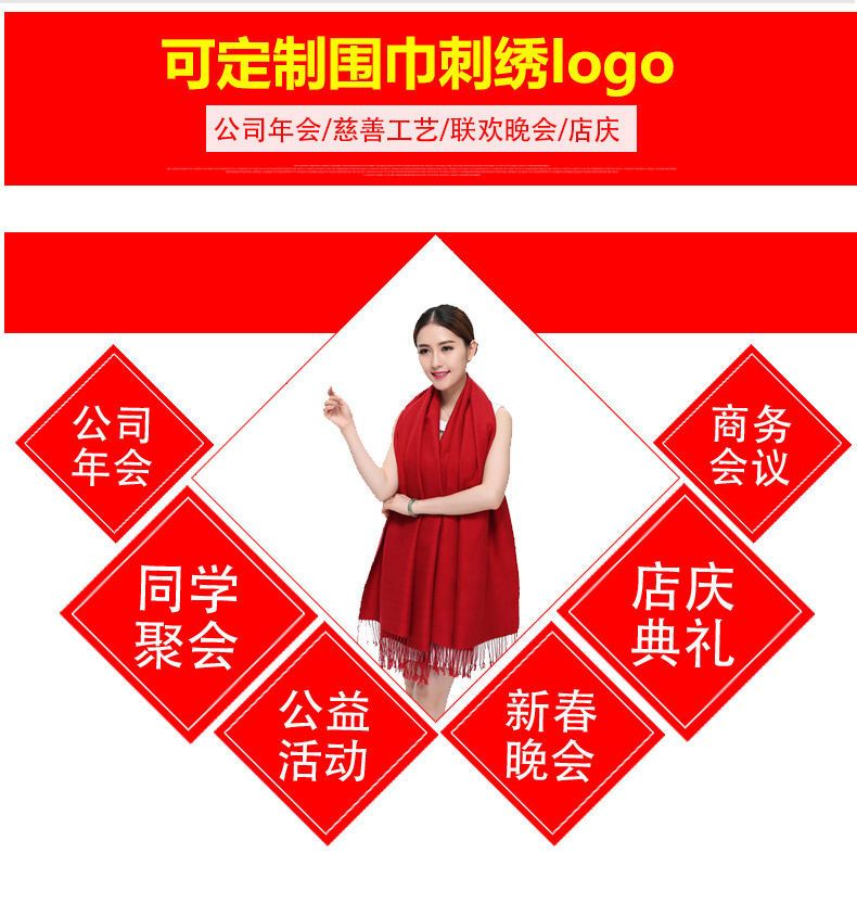 围巾定制logo刺绣中国红大红色公司年会同学聚会福字围巾印字围脖