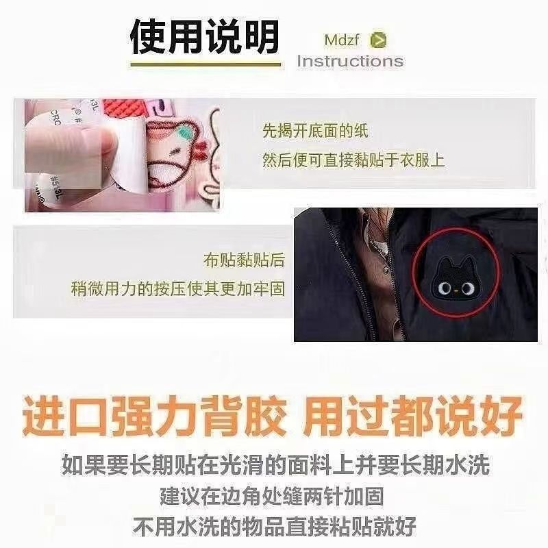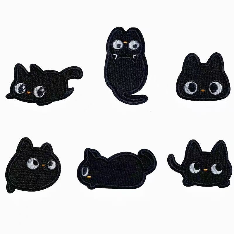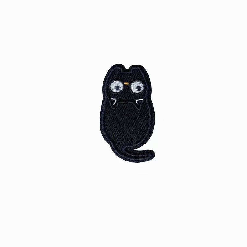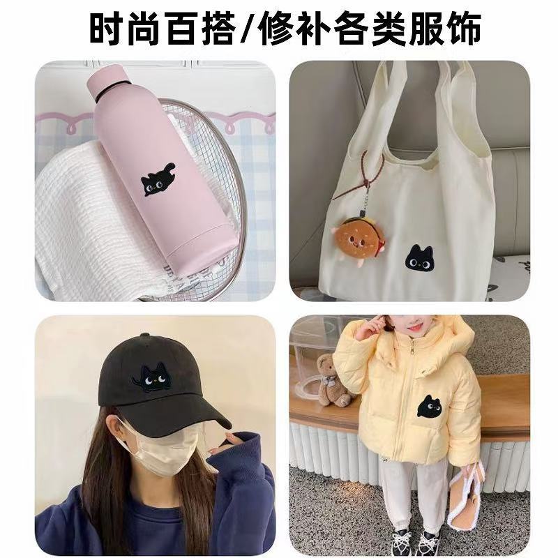 卡通小黑猫刺绣贴手账手机DIY装饰布贴书包龙骧自粘贴纸衣服补丁