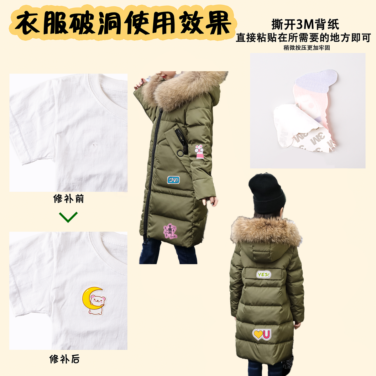 羽绒服补丁贴可水洗卡通图案儿童衣服裤子补丁贴破洞修补鞋子布贴