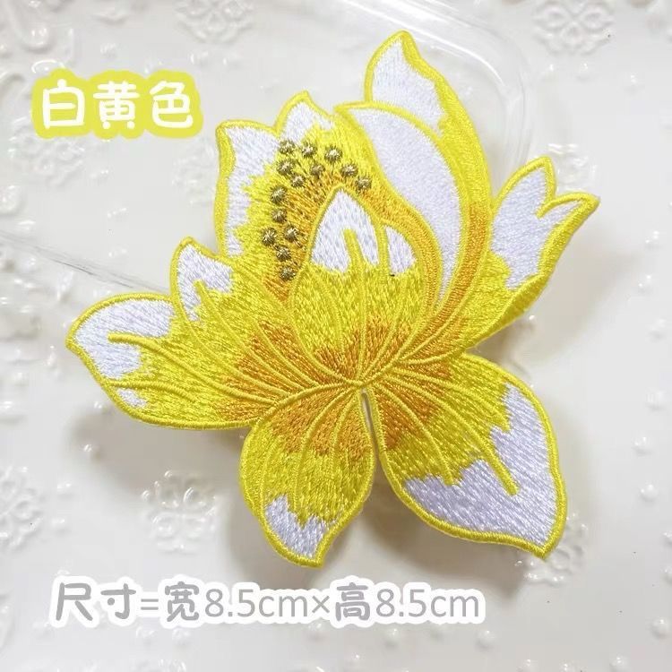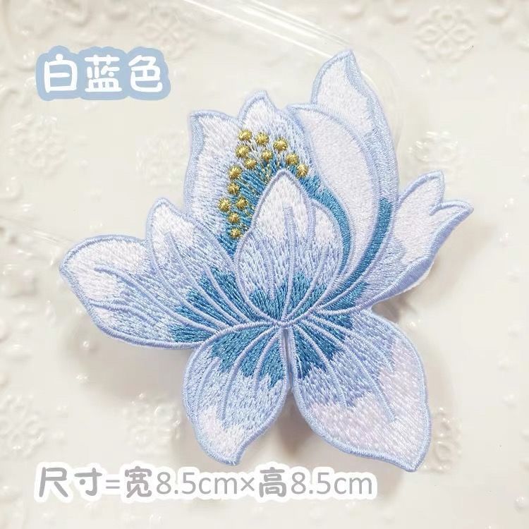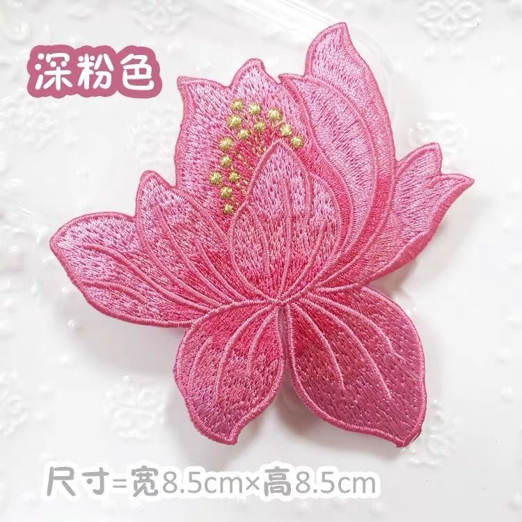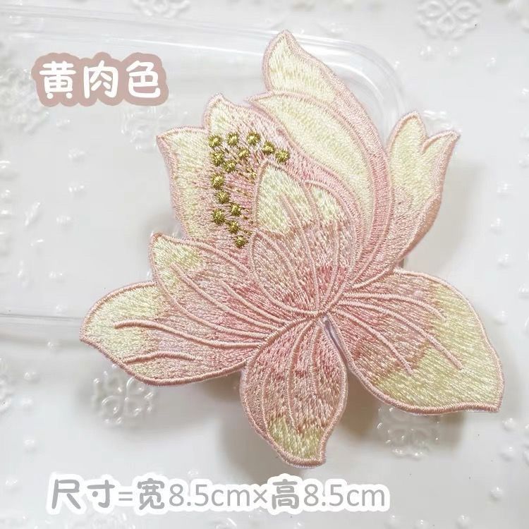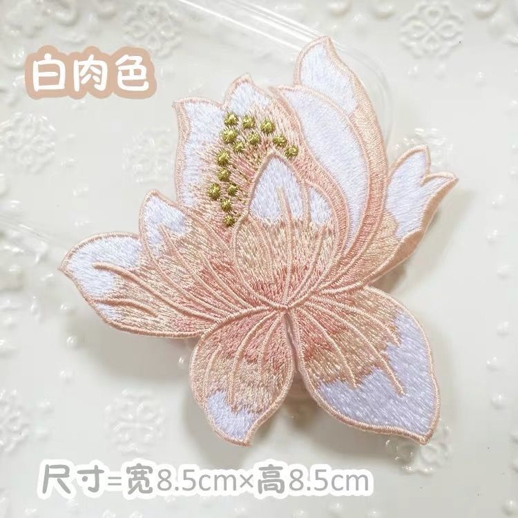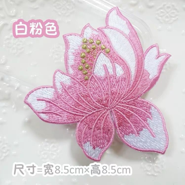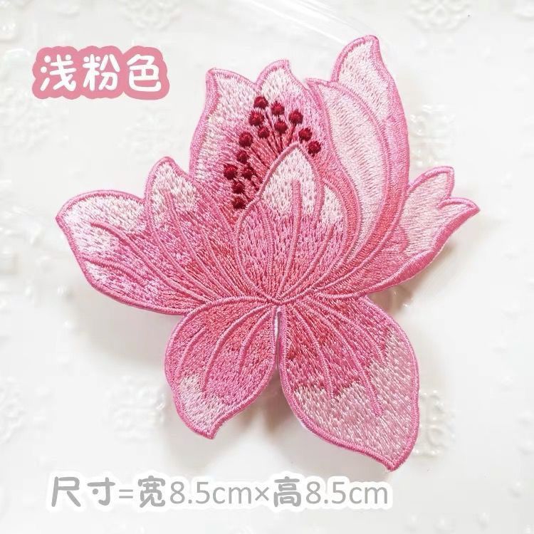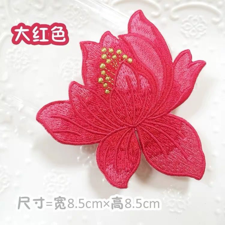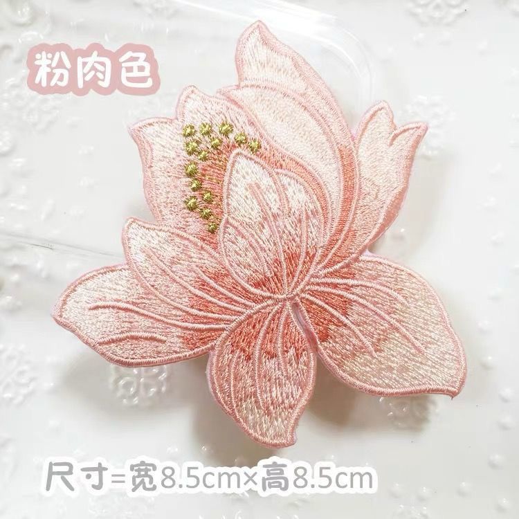 荷花莲花花朵刺绣国风布贴衣服装饰搭补补丁贴花民族绣花百搭背胶