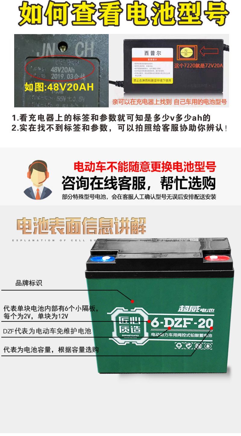 A超威电池60V36V48V电动车三轮车电瓶车电瓶72v20ah【上门安装