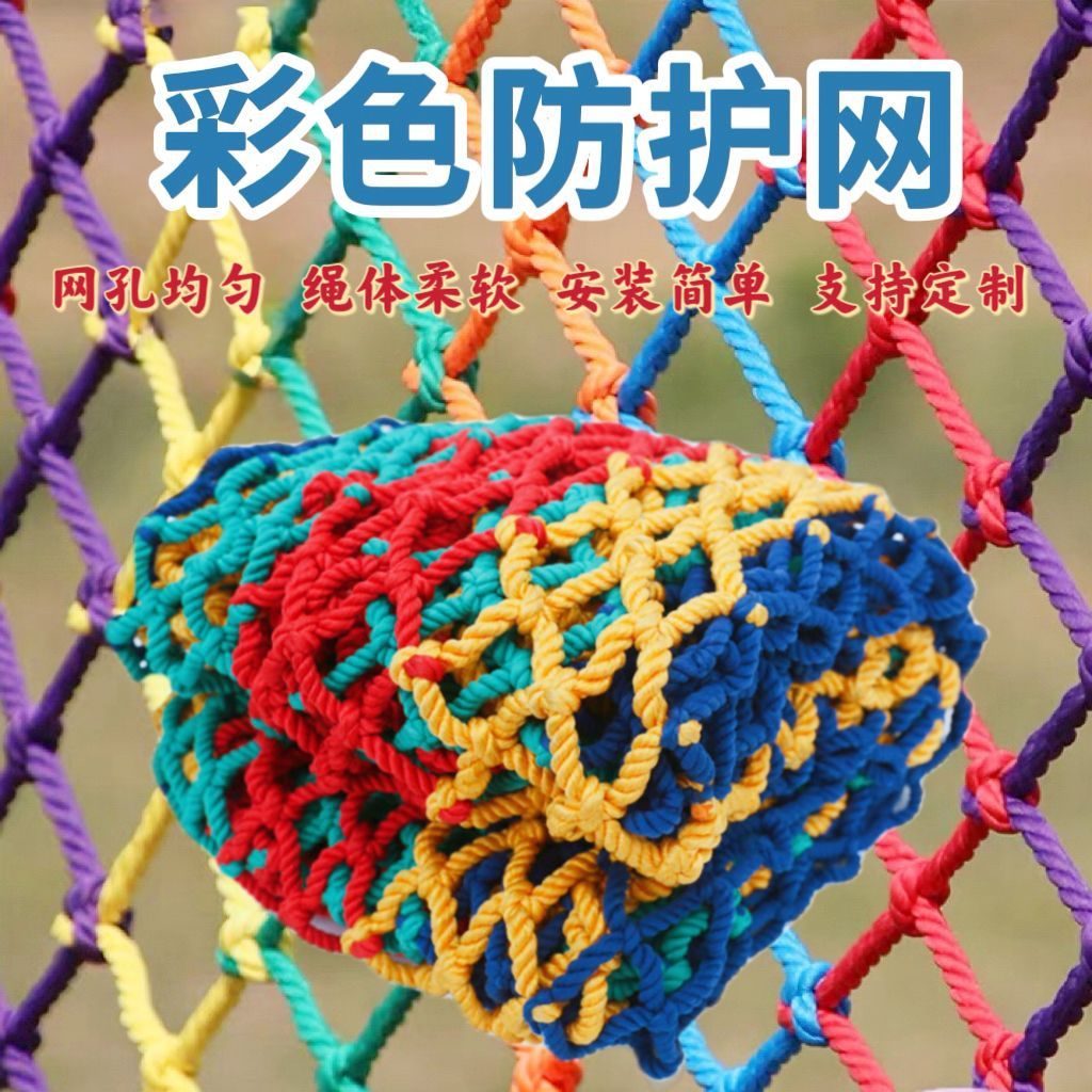 彩色防护网楼梯阳台防坠网运动场围网幼儿园景区围栏防护装饰网