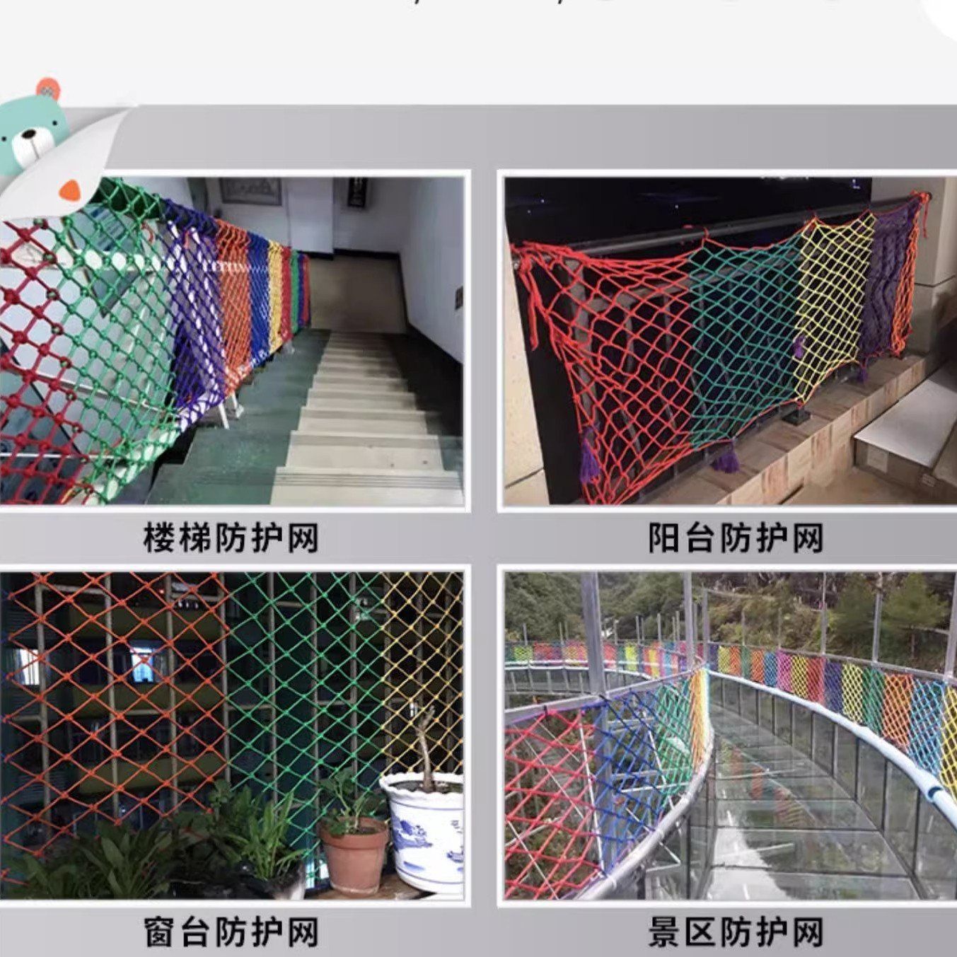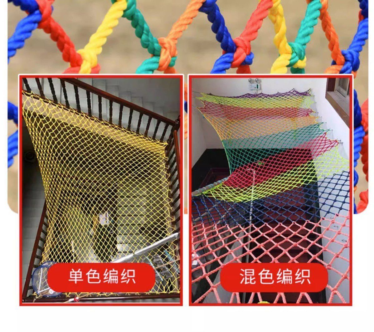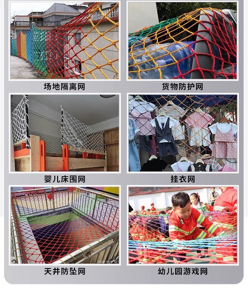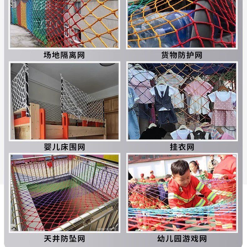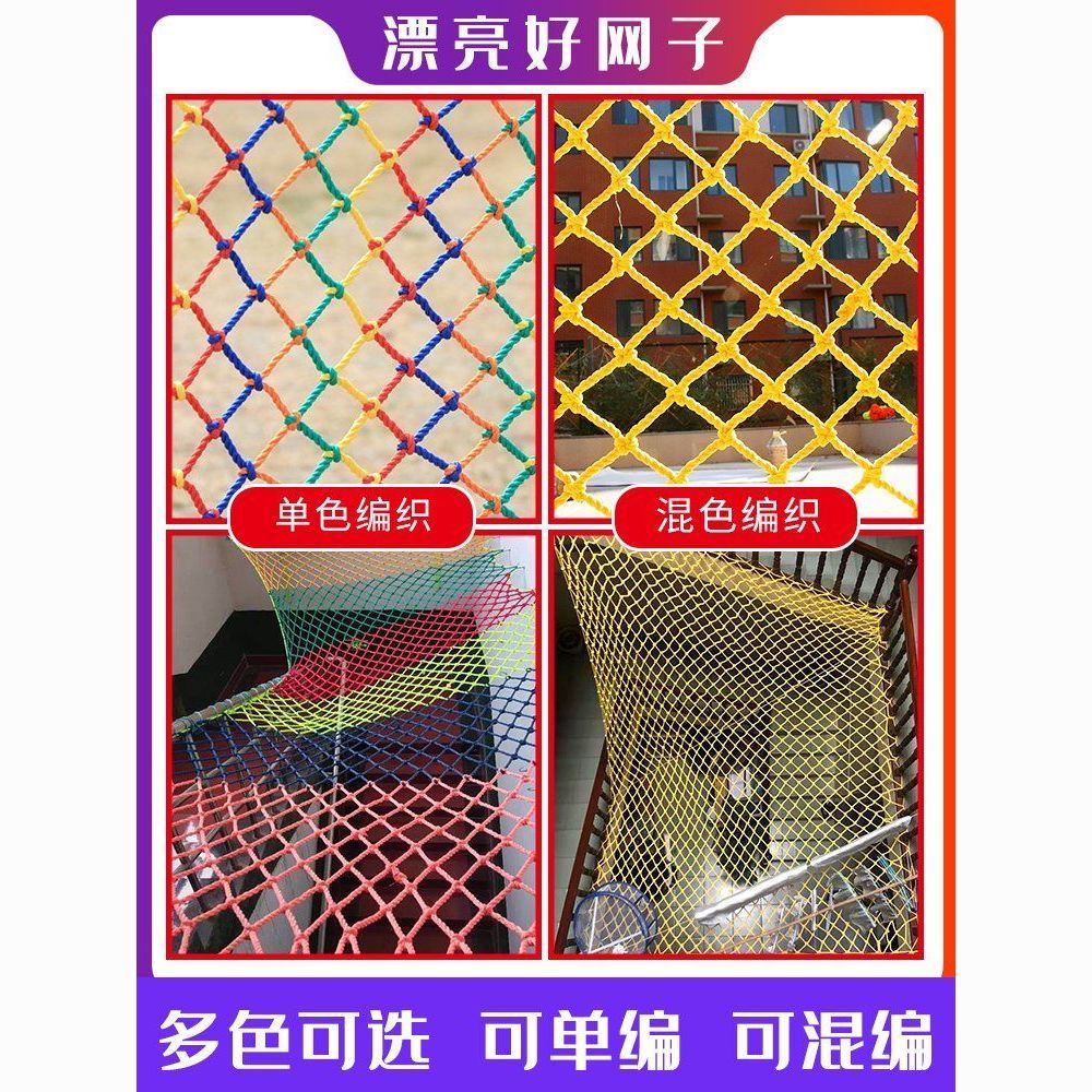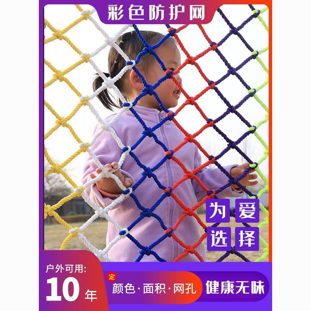 儿童彩色安全网阳台天井楼梯防护网防坠网幼儿园护栏防摔尼龙网绳