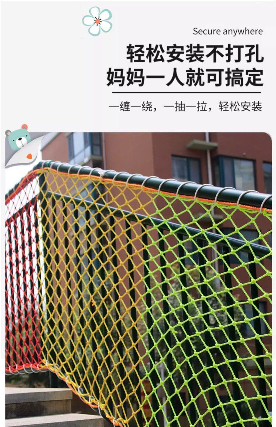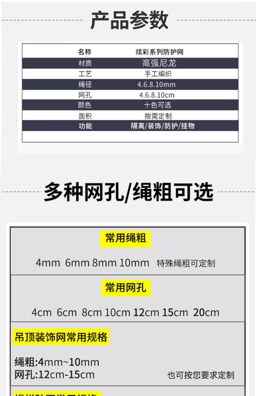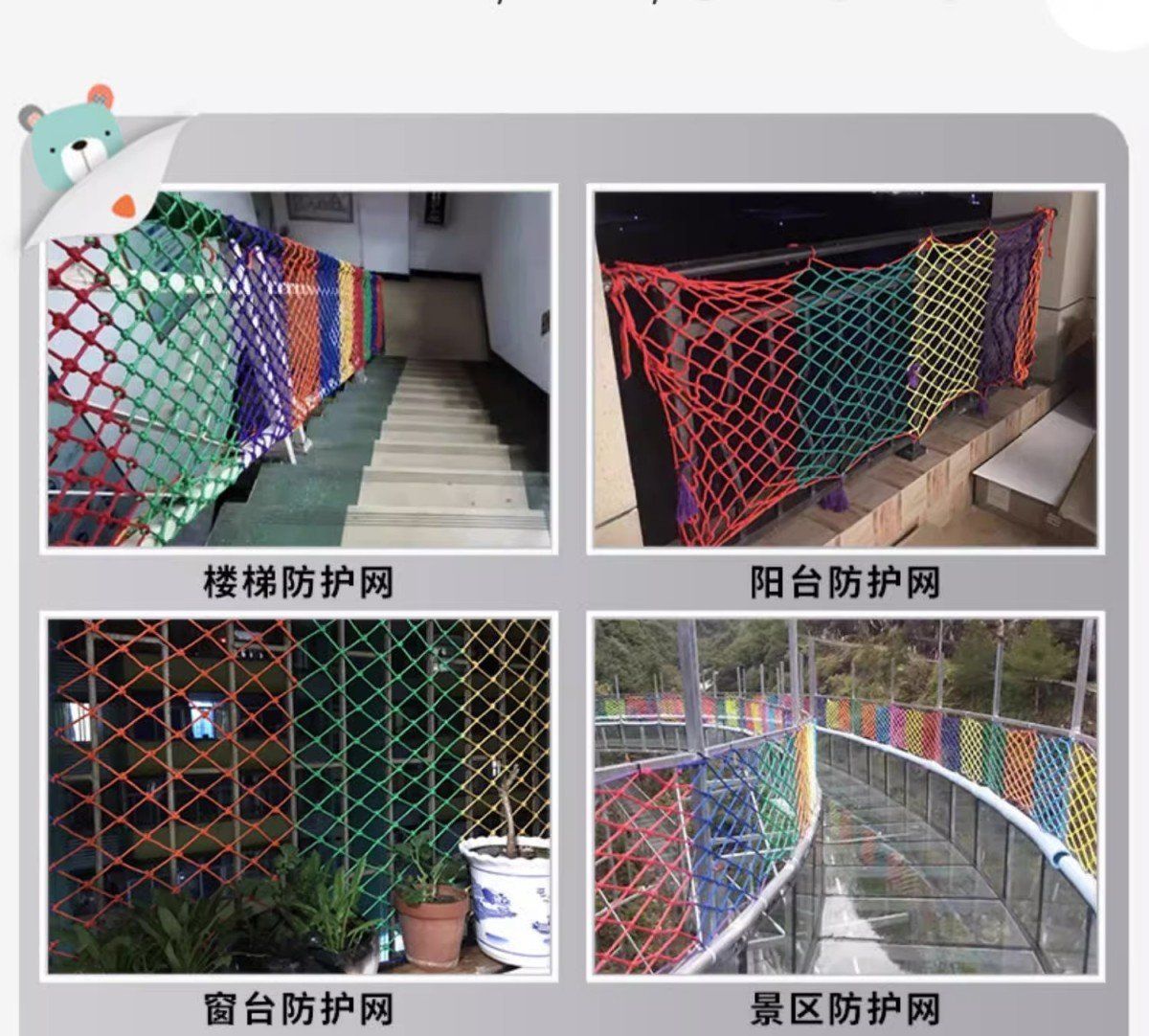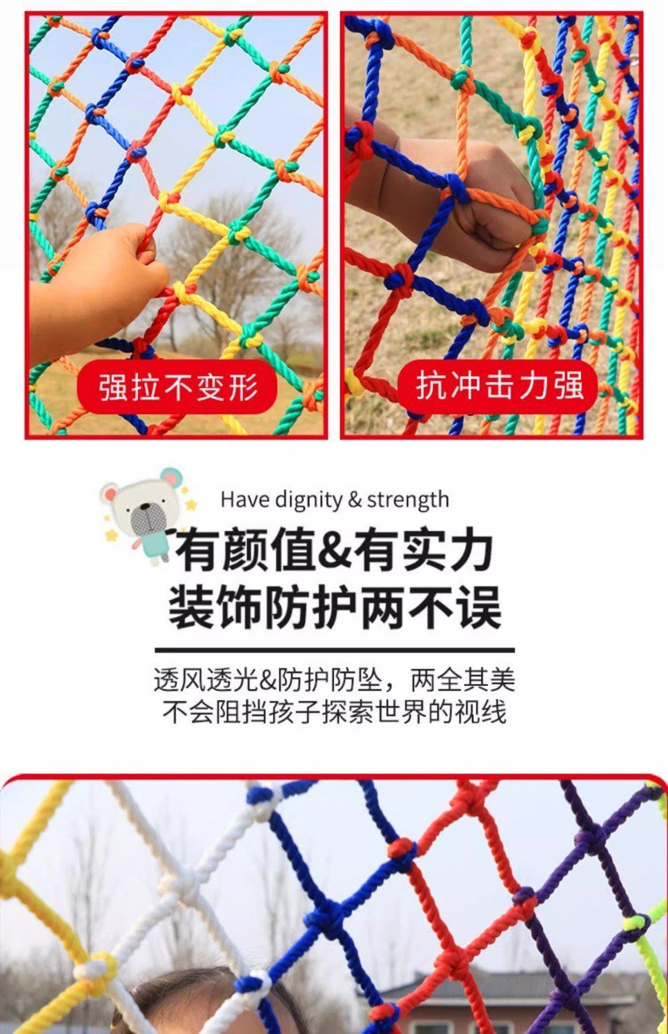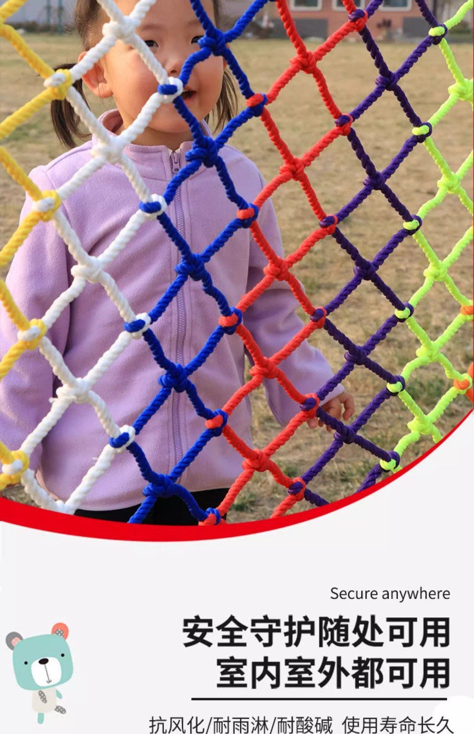 儿童彩色安全网阳台天井楼梯防护网防坠网幼儿园护栏防摔尼龙网绳