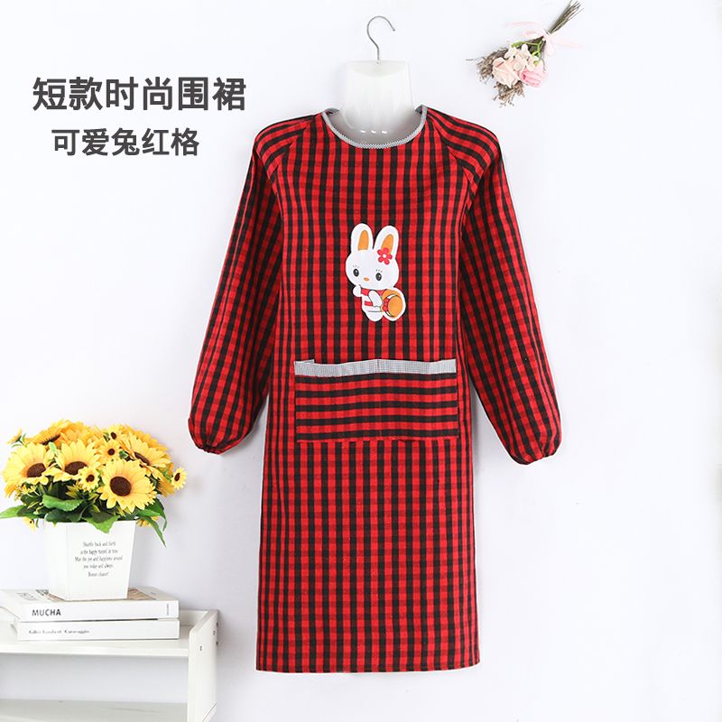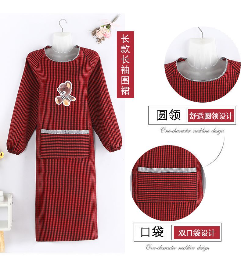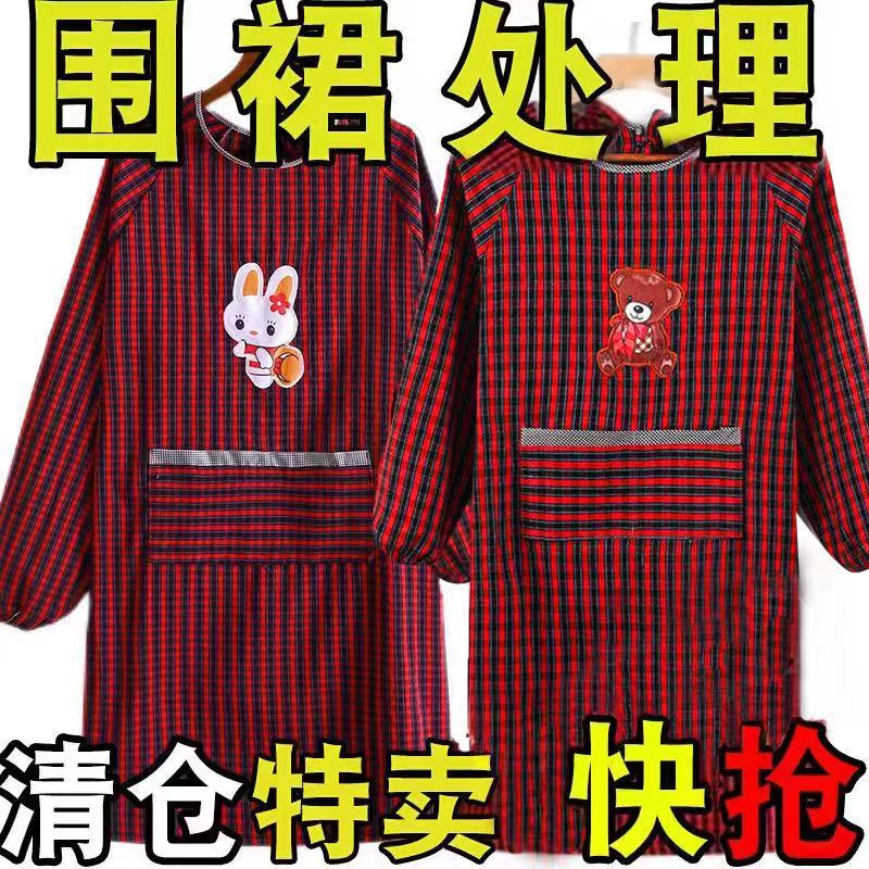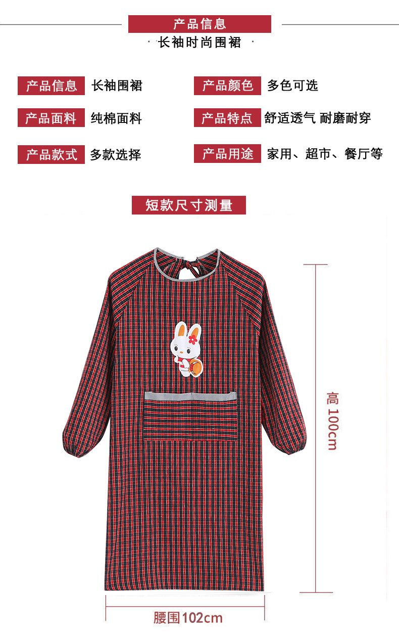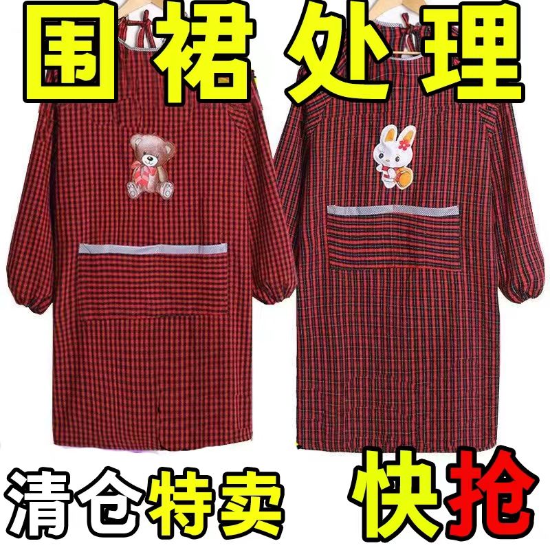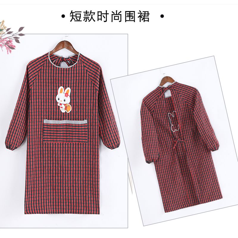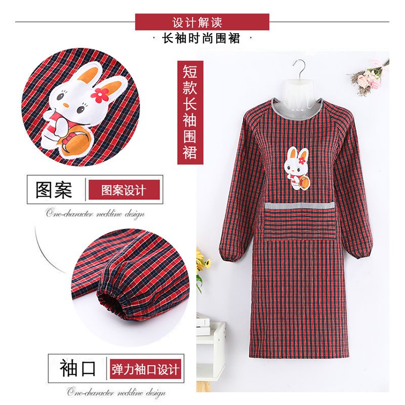 纯棉老粗布围裙有袖厨房家用时尚防水防油可爱罩衣成人男女工作服
