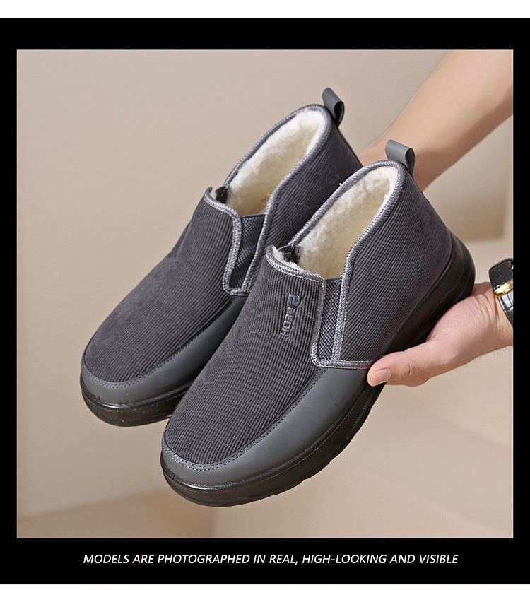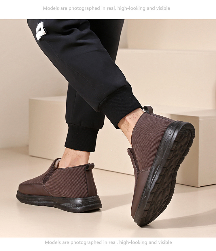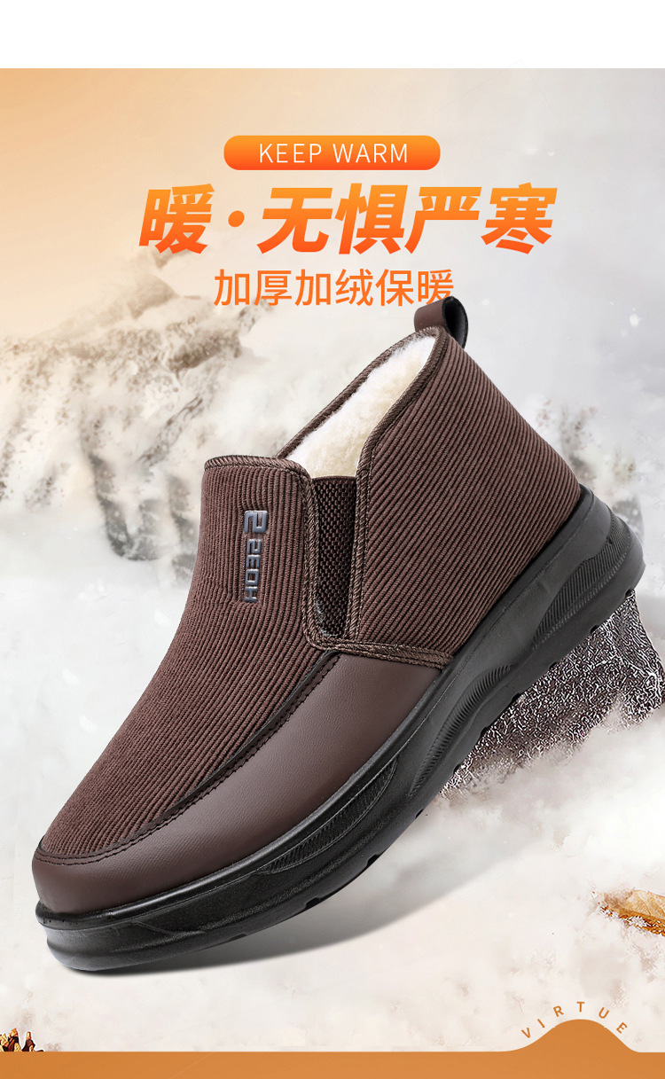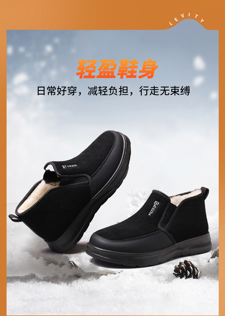 跨境男款大码男式雪地靴聚氨酯轻底软底防滑加绒加厚外贸老人棉鞋