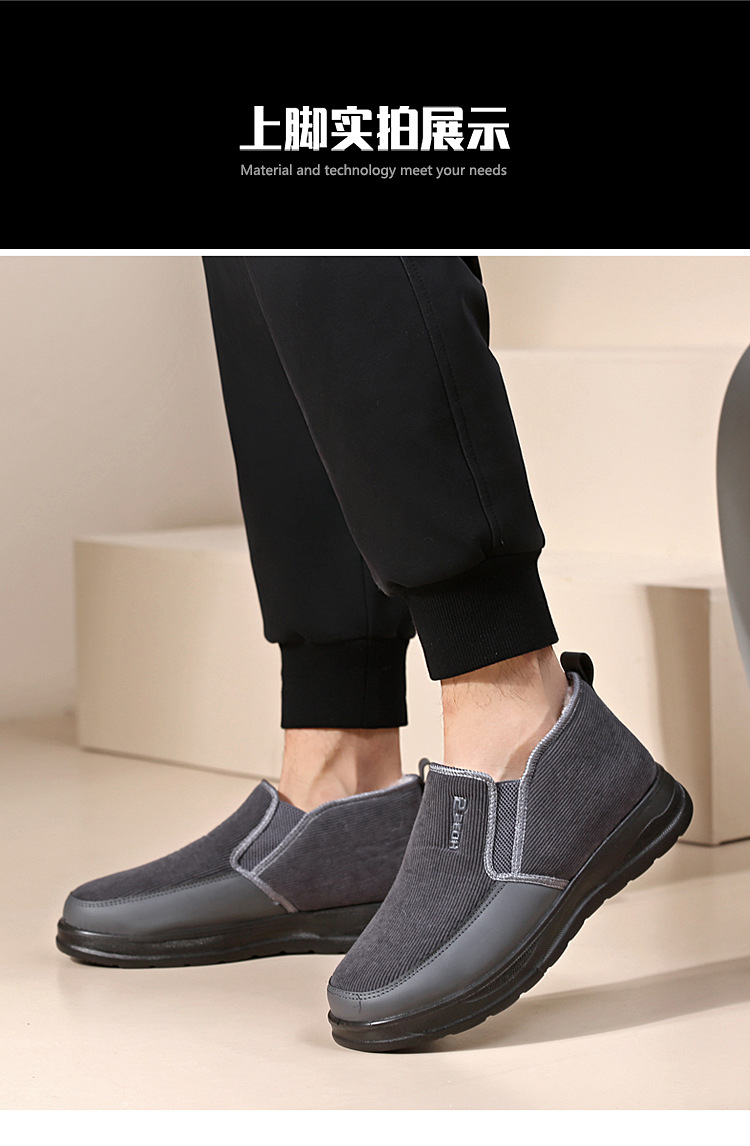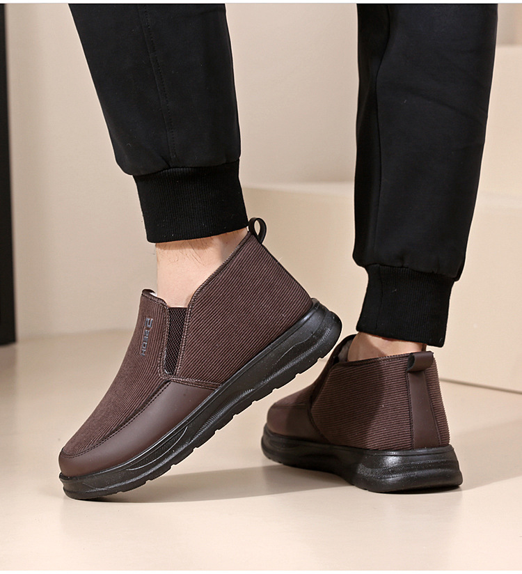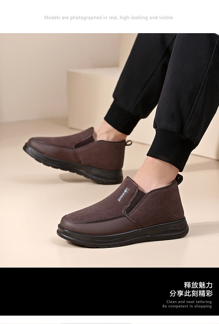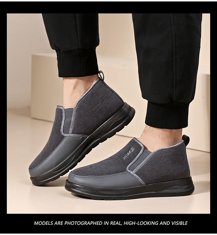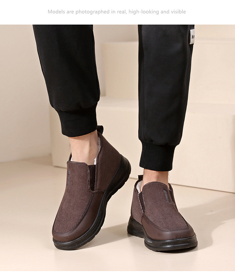 跨境男款大码男式雪地靴聚氨酯轻底软底防滑加绒加厚外贸老人棉鞋