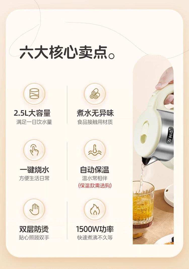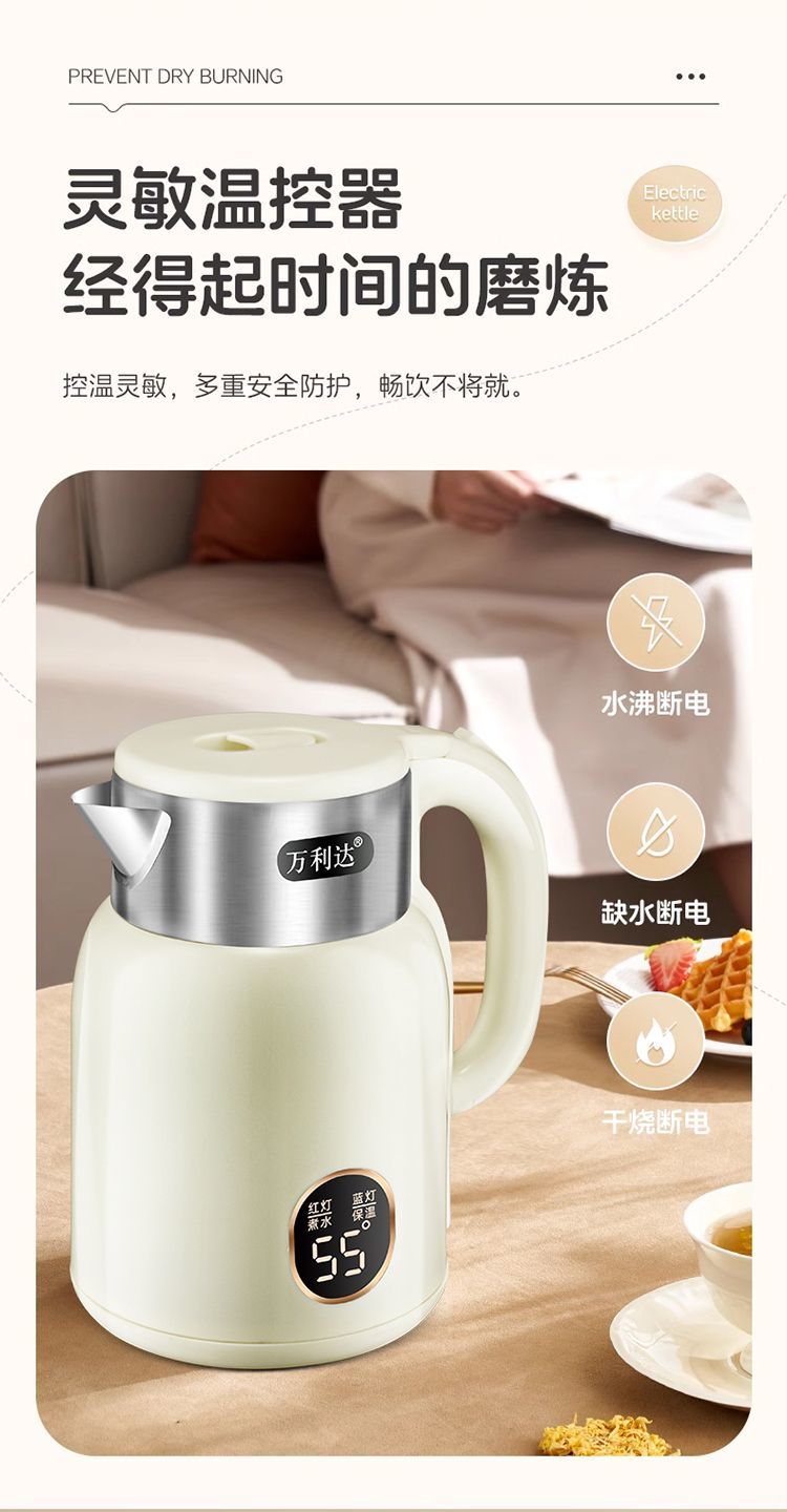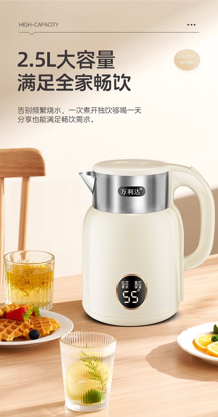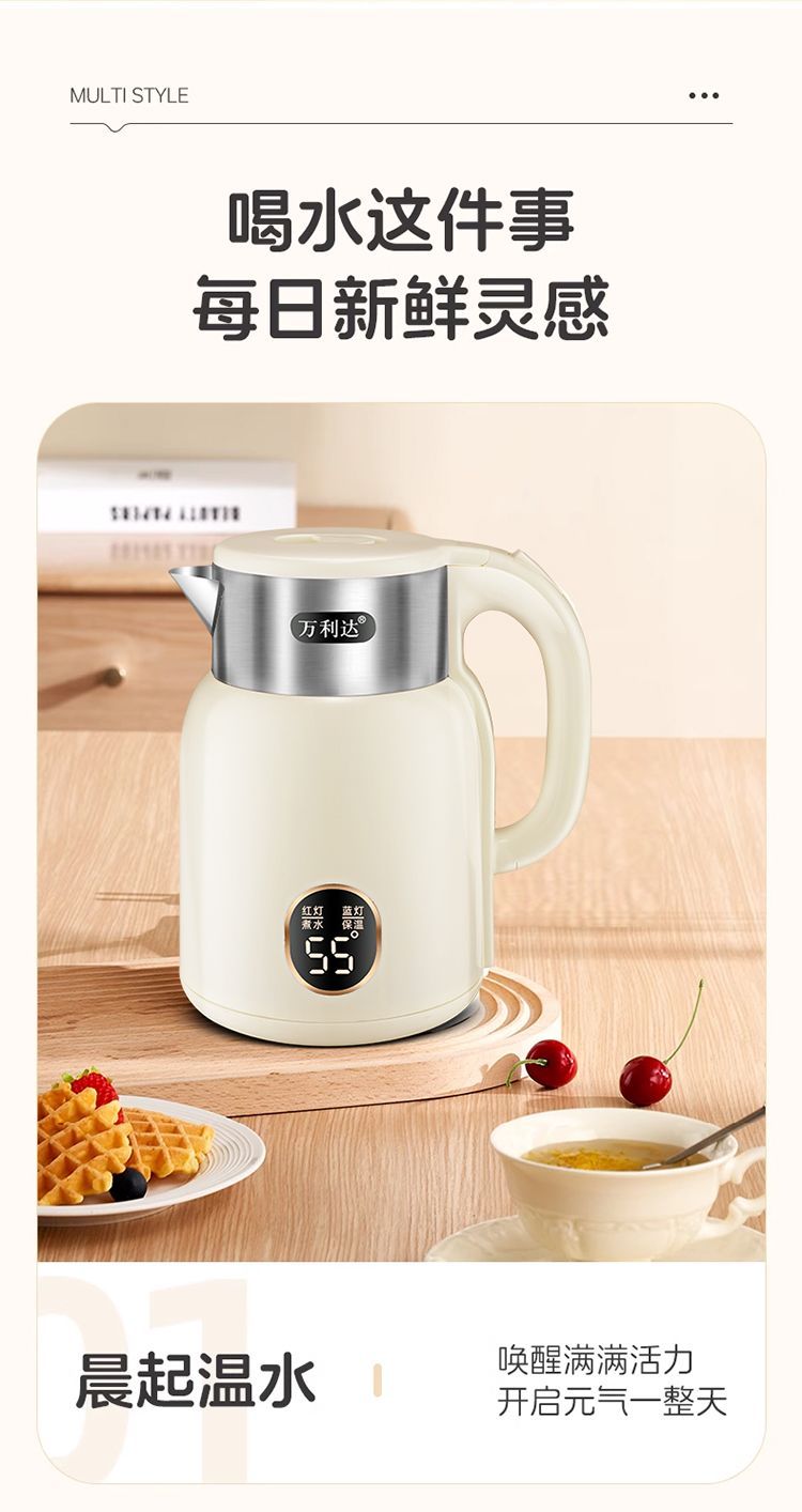 万利达热水壶家用耐用不锈钢保温恒温烧水壶自动断电大容量开水壶