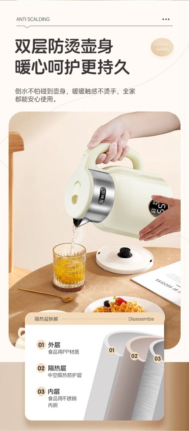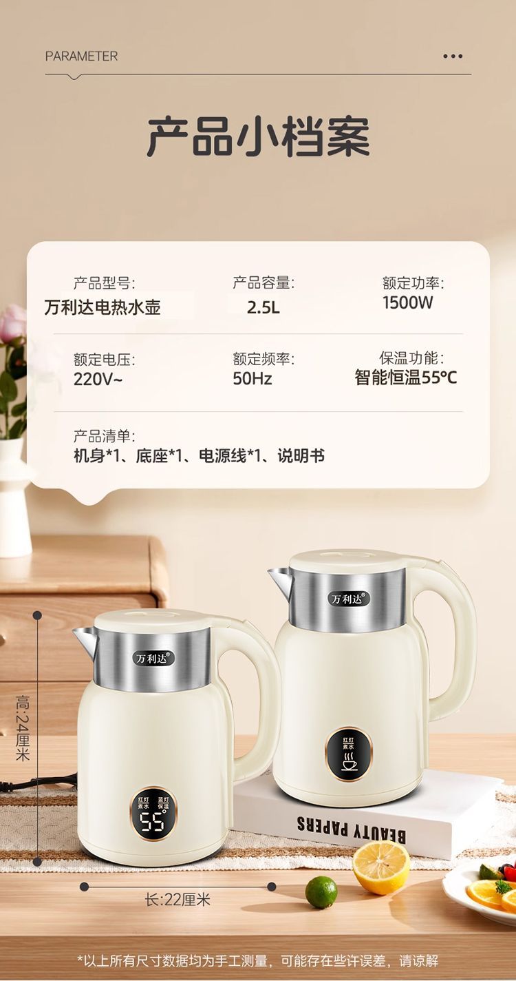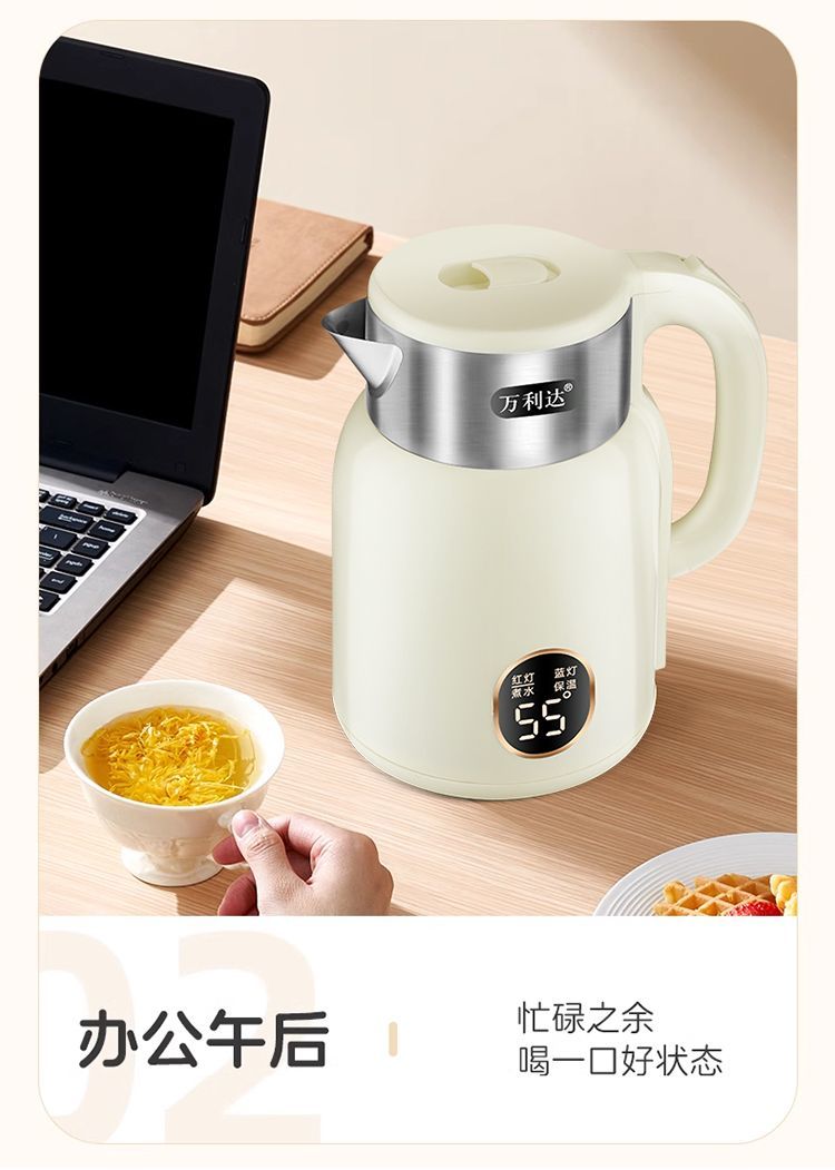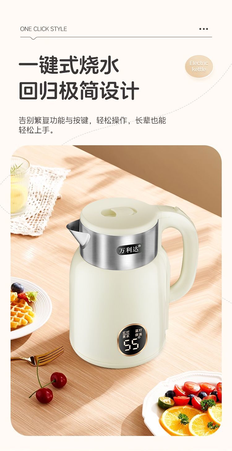 万利达热水壶家用耐用不锈钢保温恒温烧水壶自动断电大容量开水壶