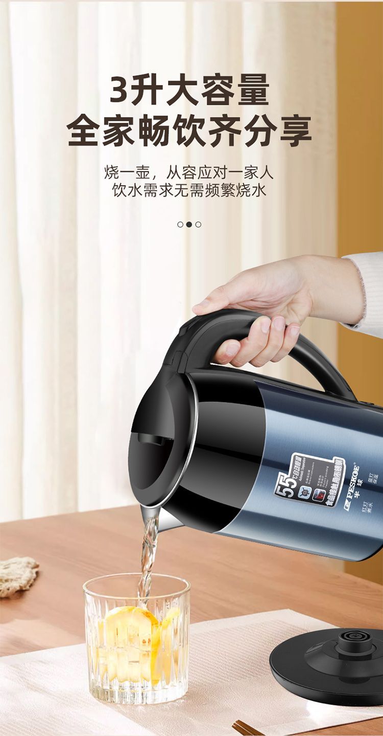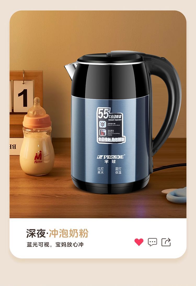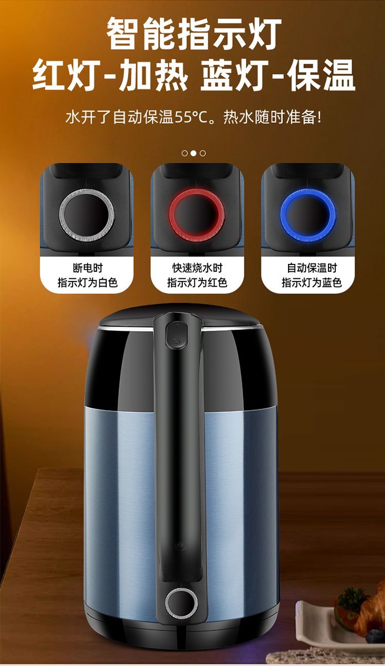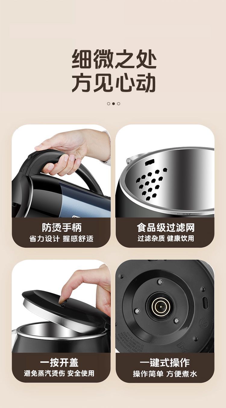 半球电热水壶304不锈钢烧水壶保温一体大容量热水壶家用宿舍防烫