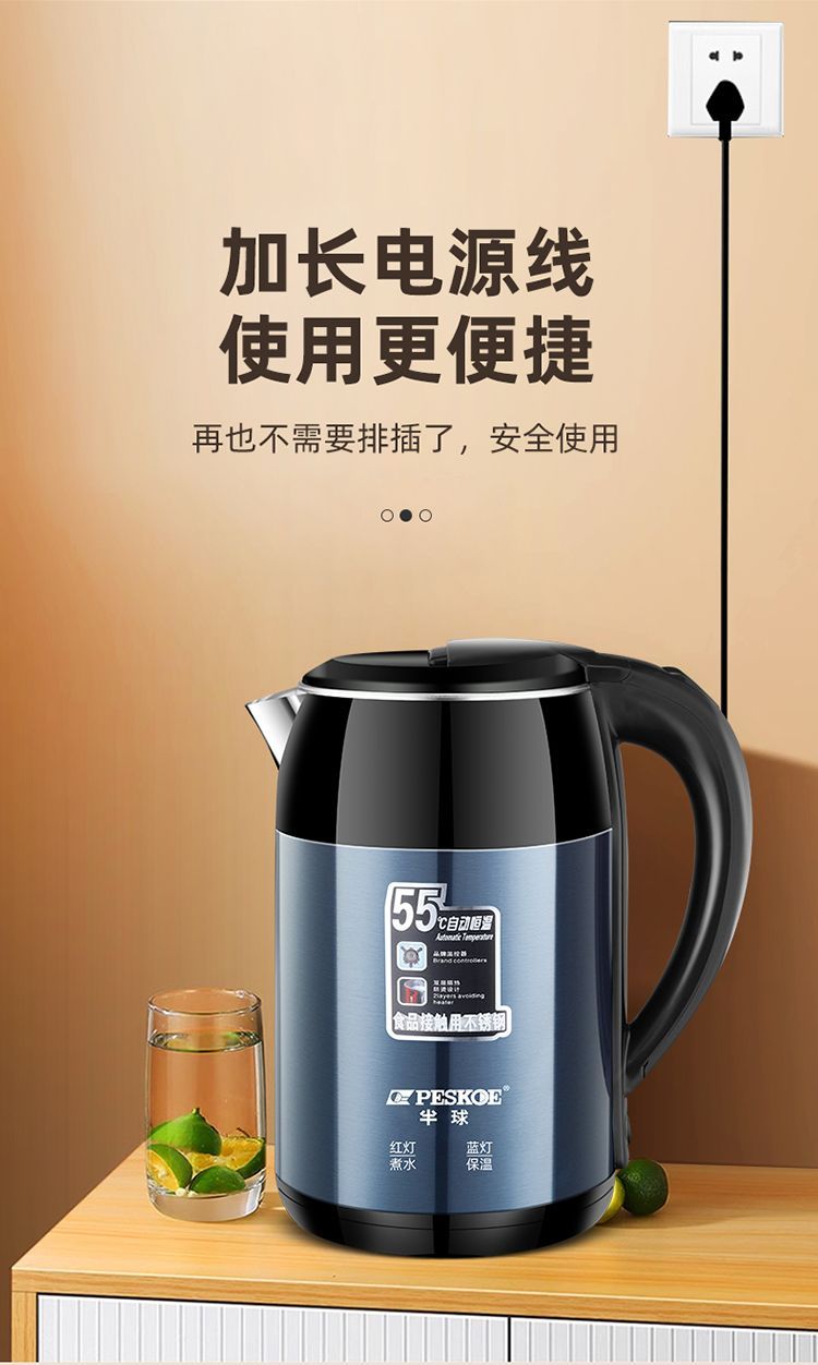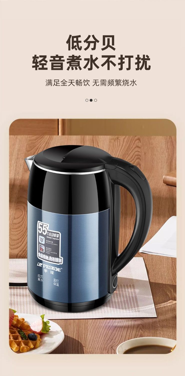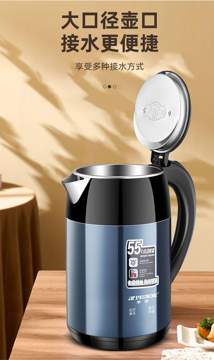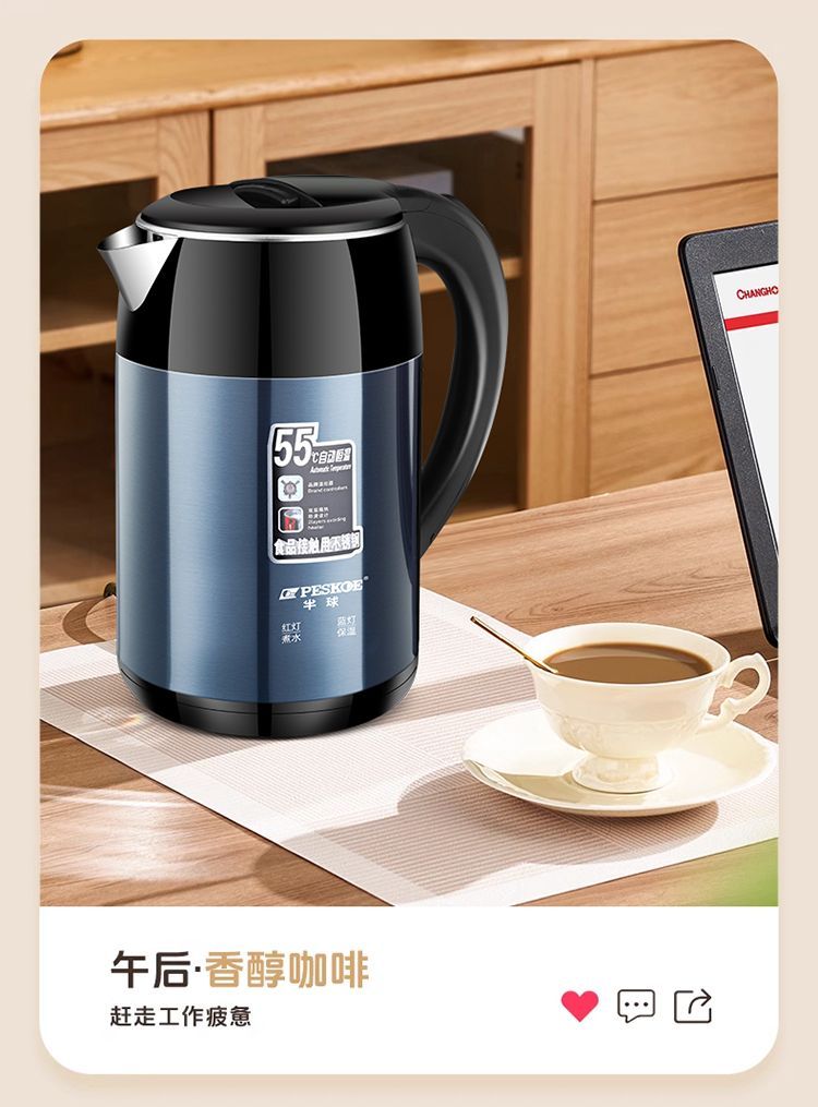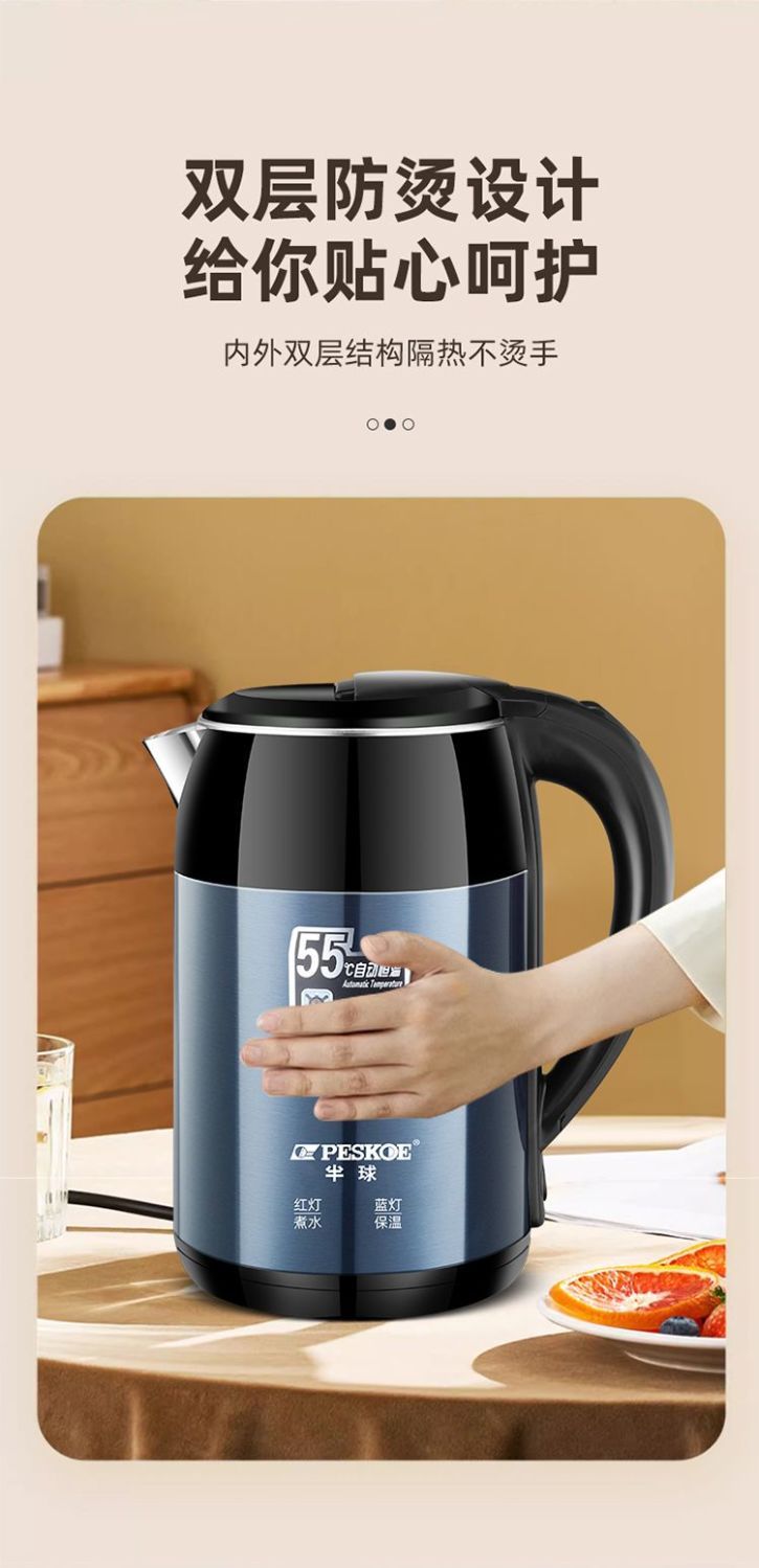 半球电热水壶304不锈钢烧水壶保温一体大容量热水壶家用宿舍防烫