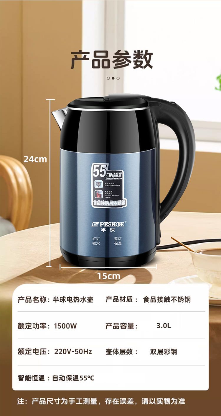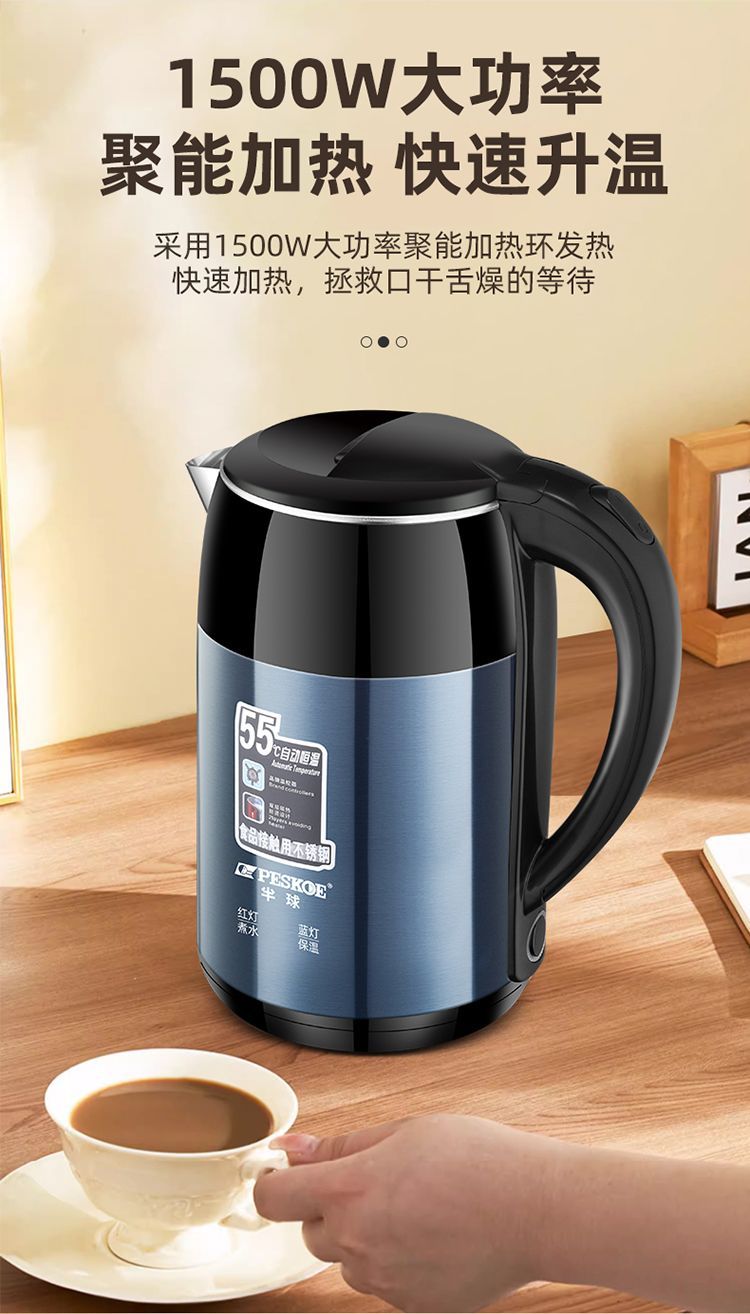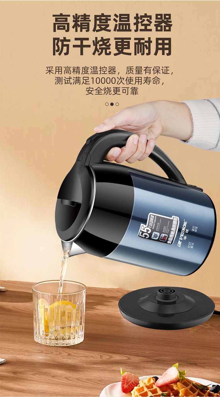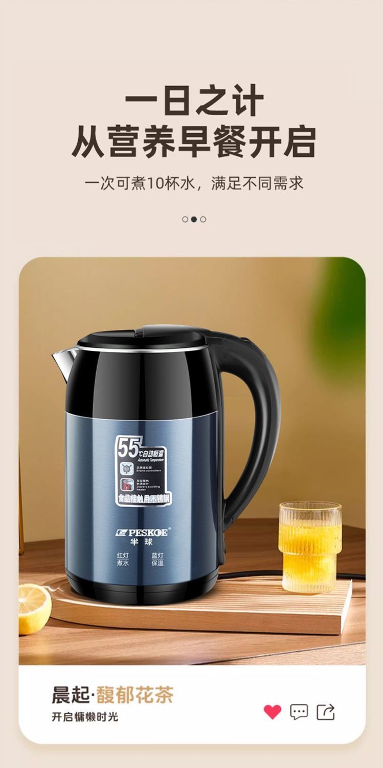 半球电热水壶304不锈钢烧水壶保温一体大容量热水壶家用宿舍防烫