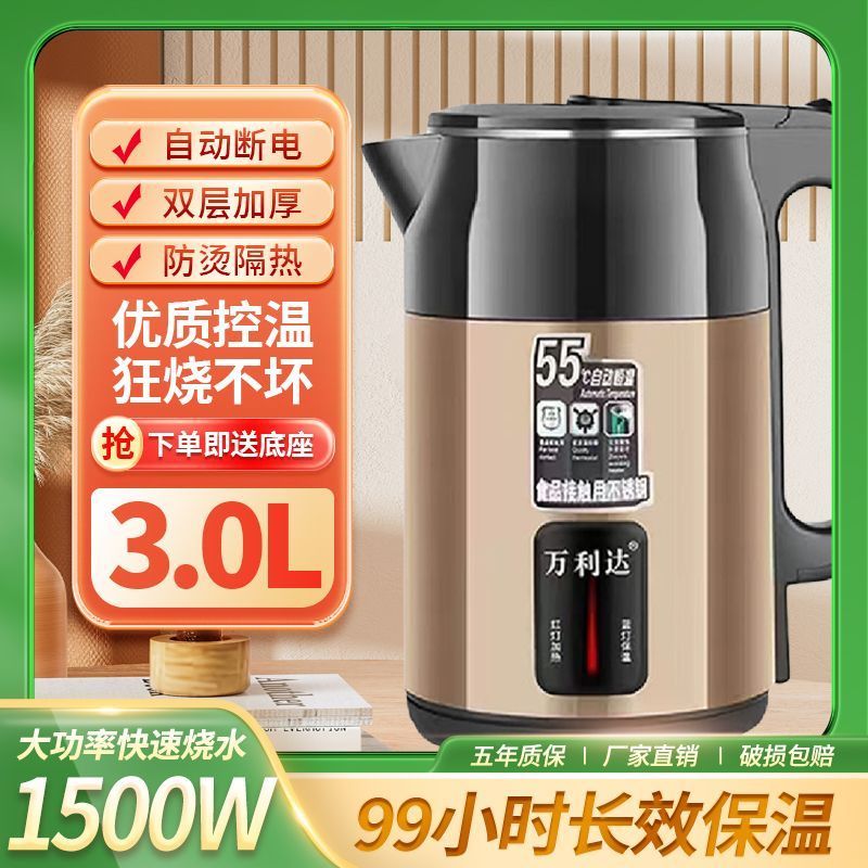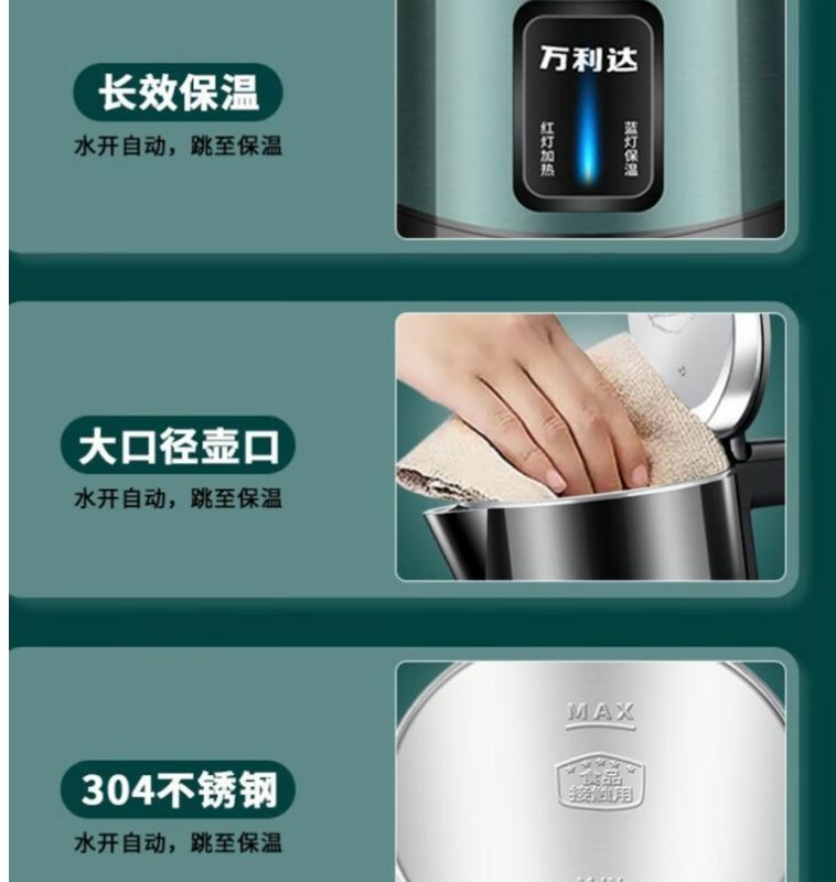 正品万利达加厚保温烧水壶家用耐用快煮大容量304开水壶自动断电