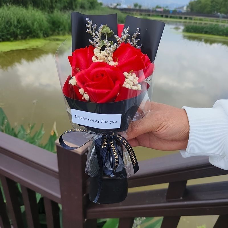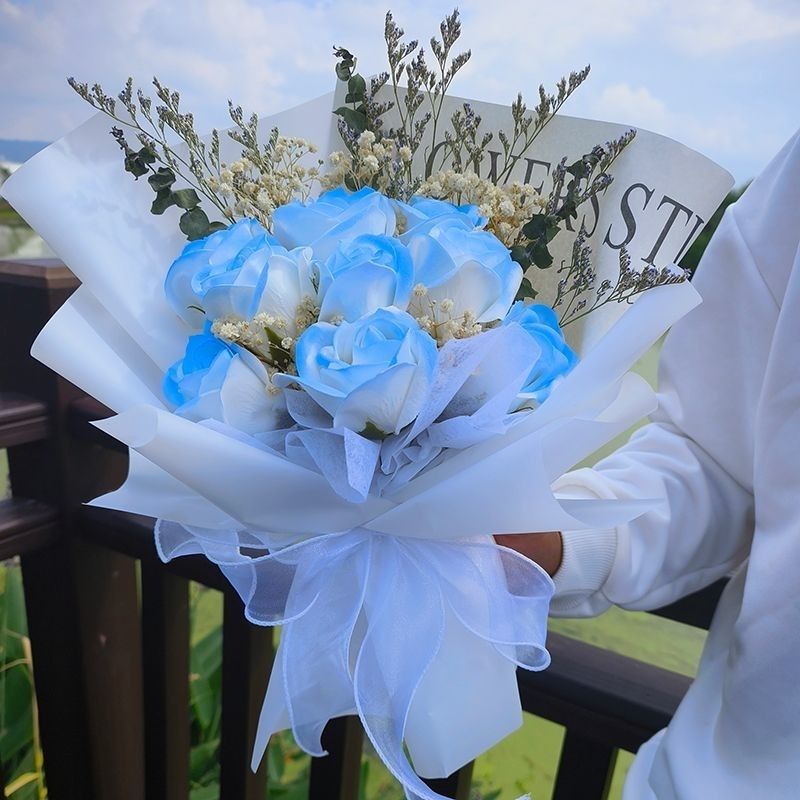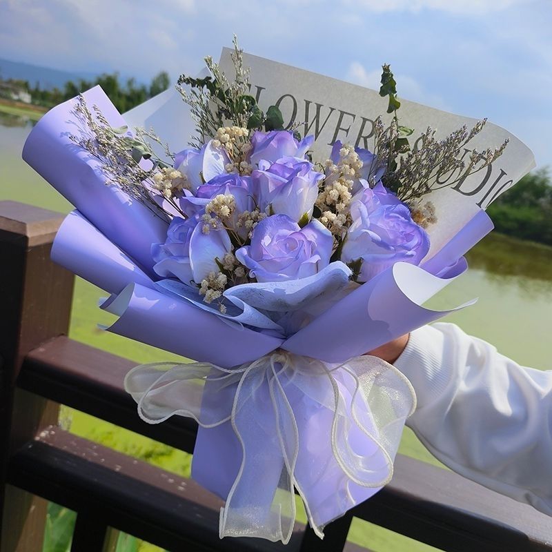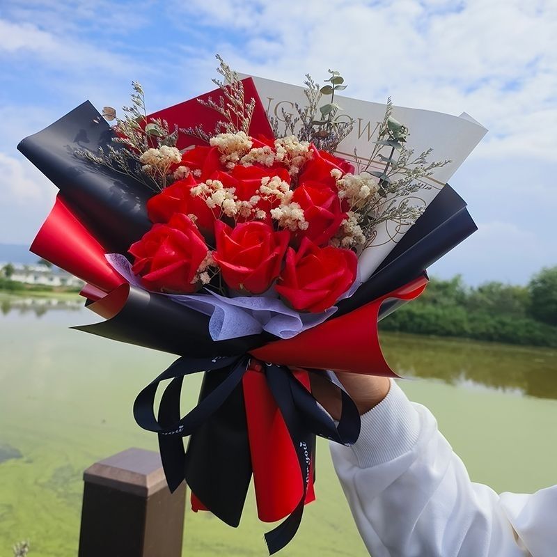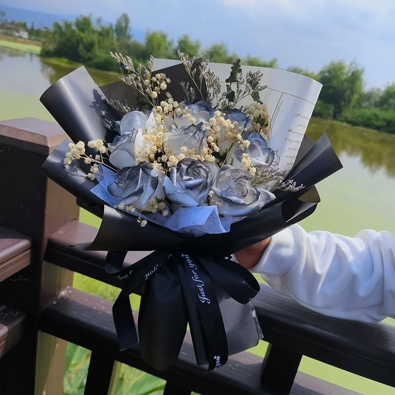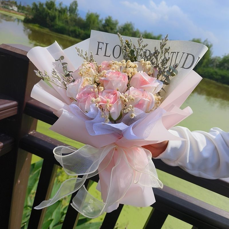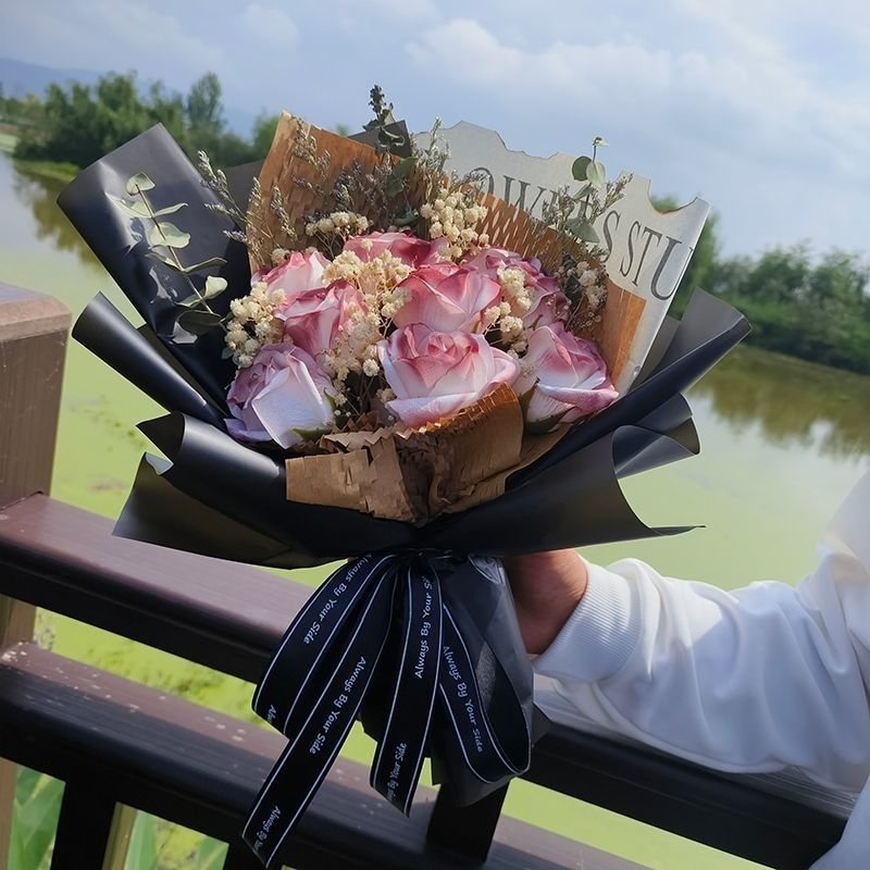 花束送女朋友母亲闺蜜生日礼物成品花束永生满天星真花仿真玫瑰