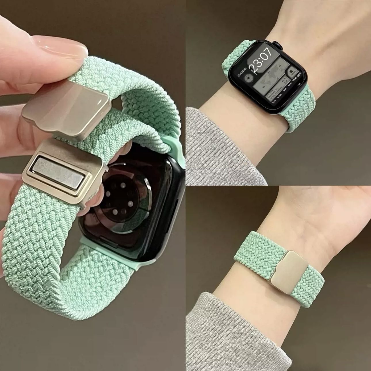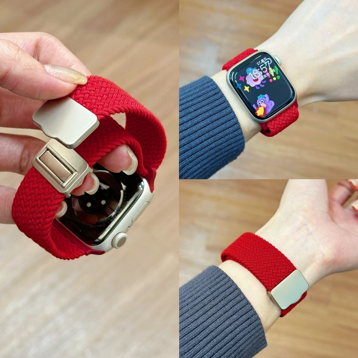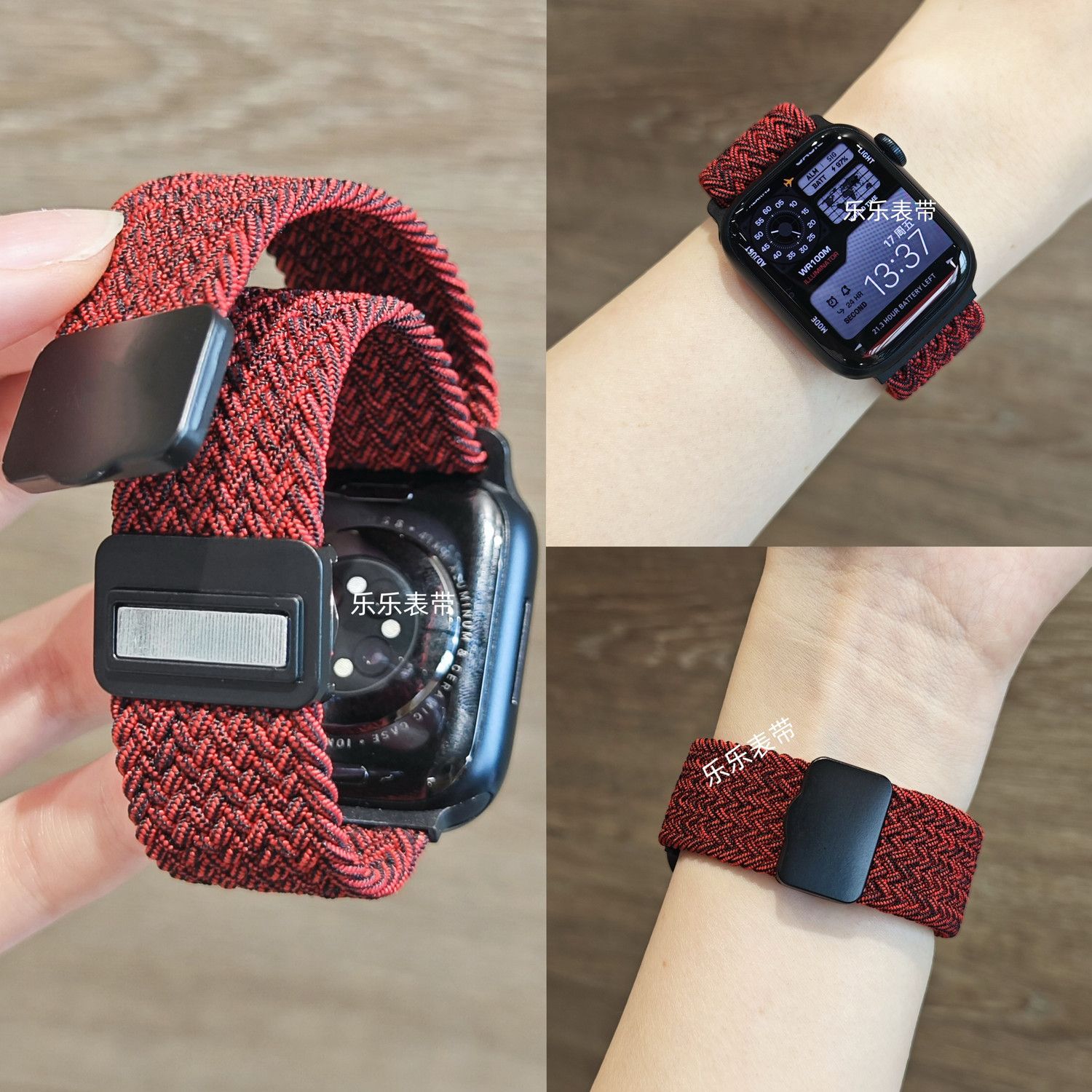 iwatch尼龙回环凸字磁吸扣表带applewatch10/9/8/7弹力编织透气
