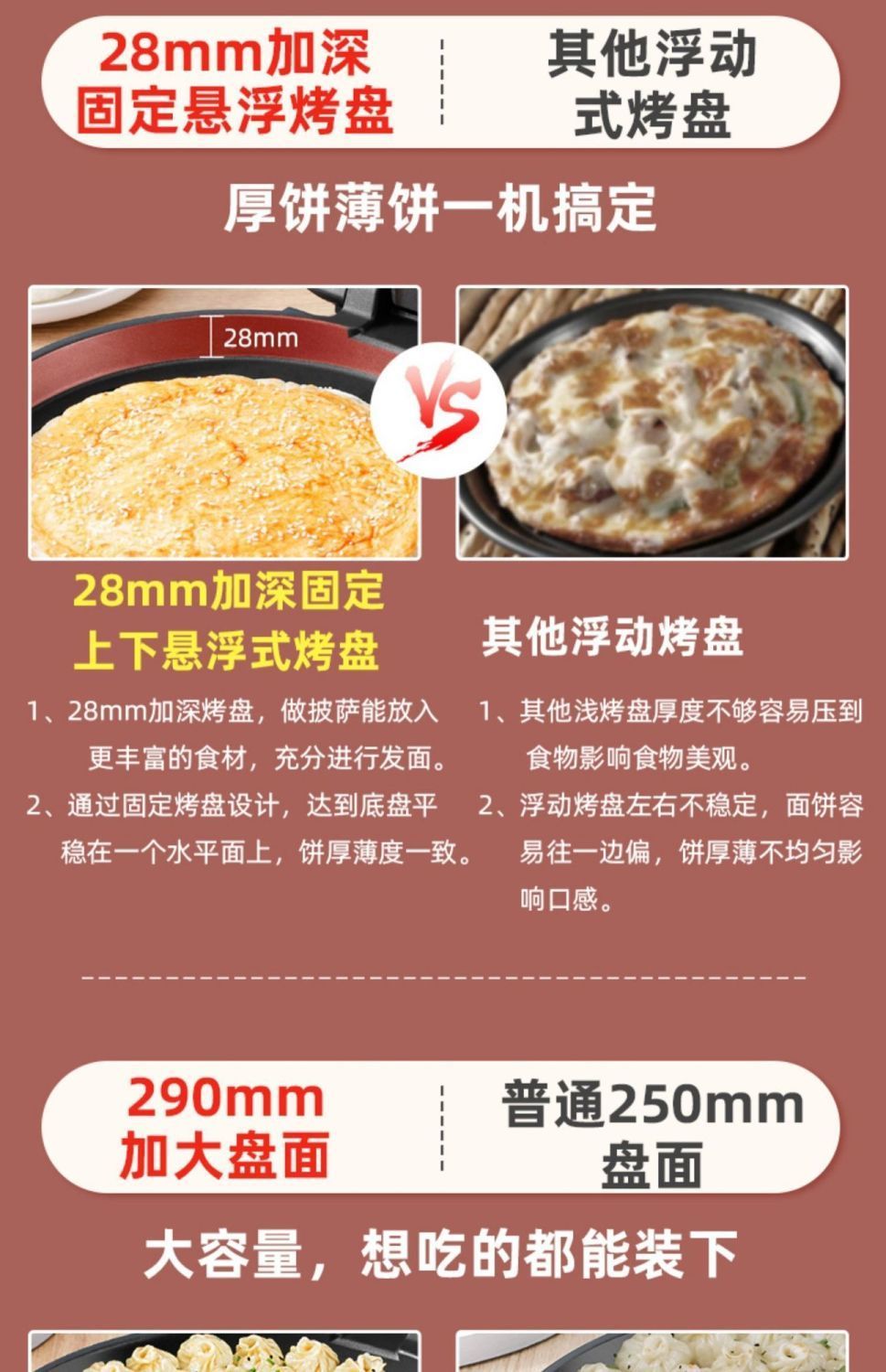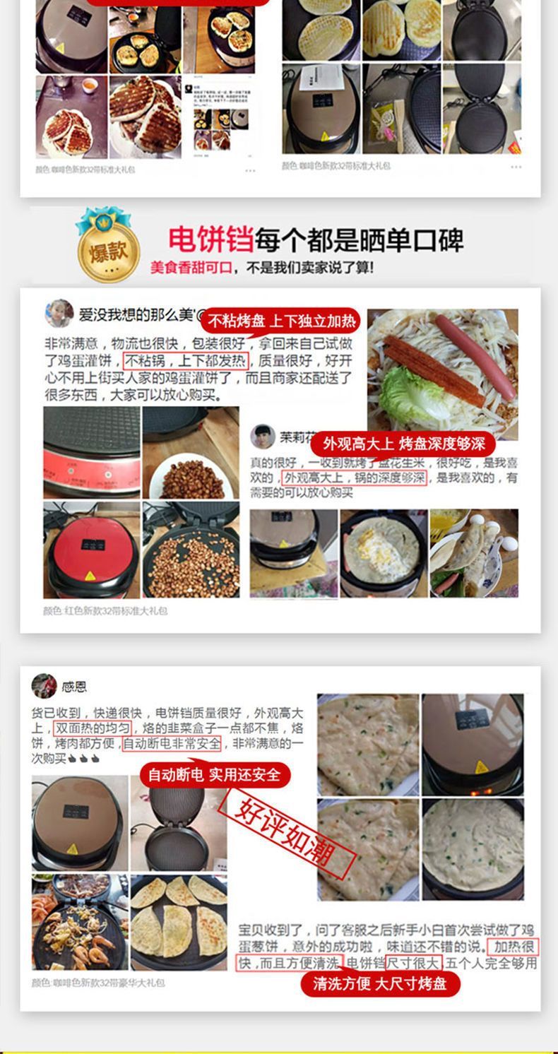 电饼铛家用大号悬浮双面加热电饼档加大加深煎烤烙饼锅薄饼机正品