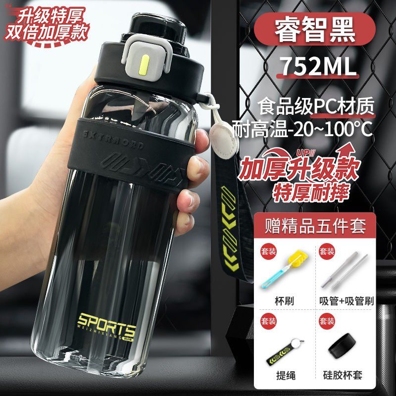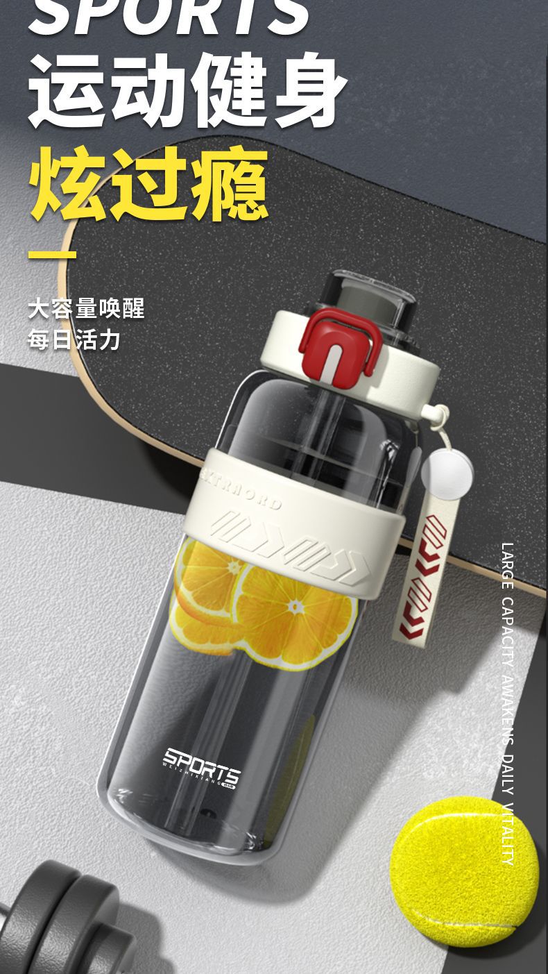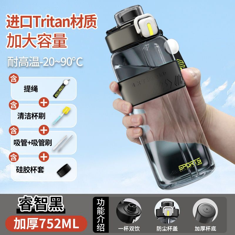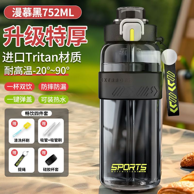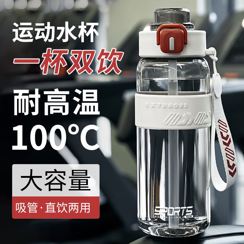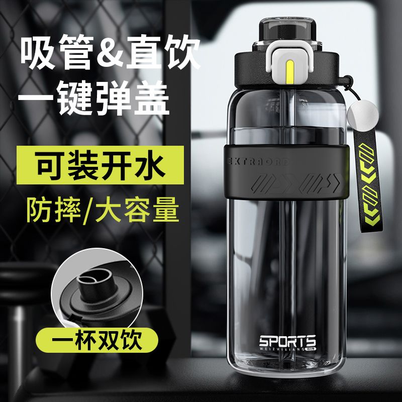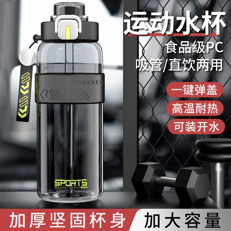 耐高温大容量水杯子运动健身户外便携水壶男女学生网红防摔吸管杯