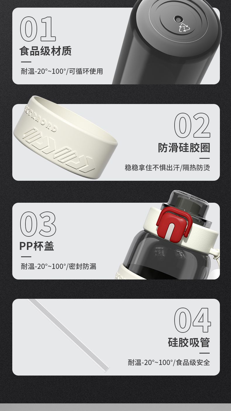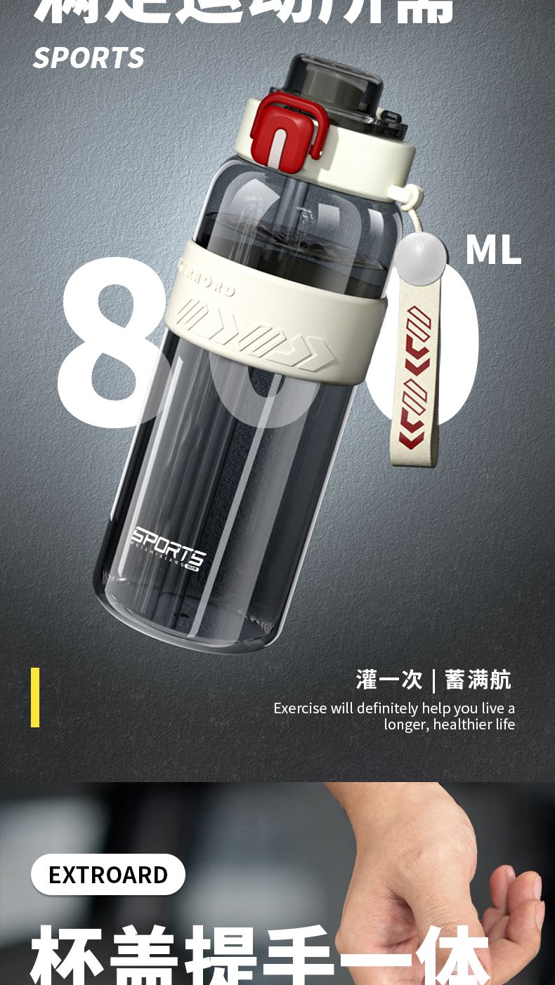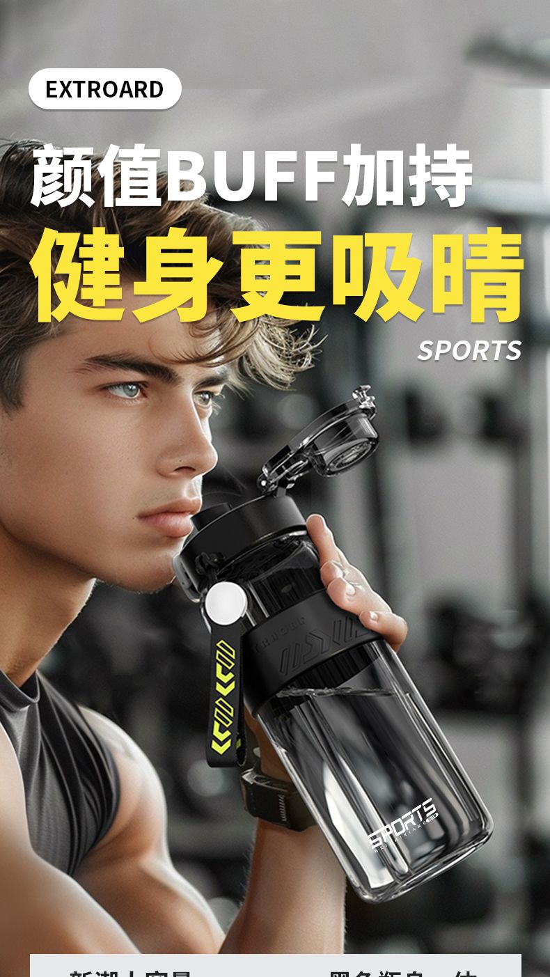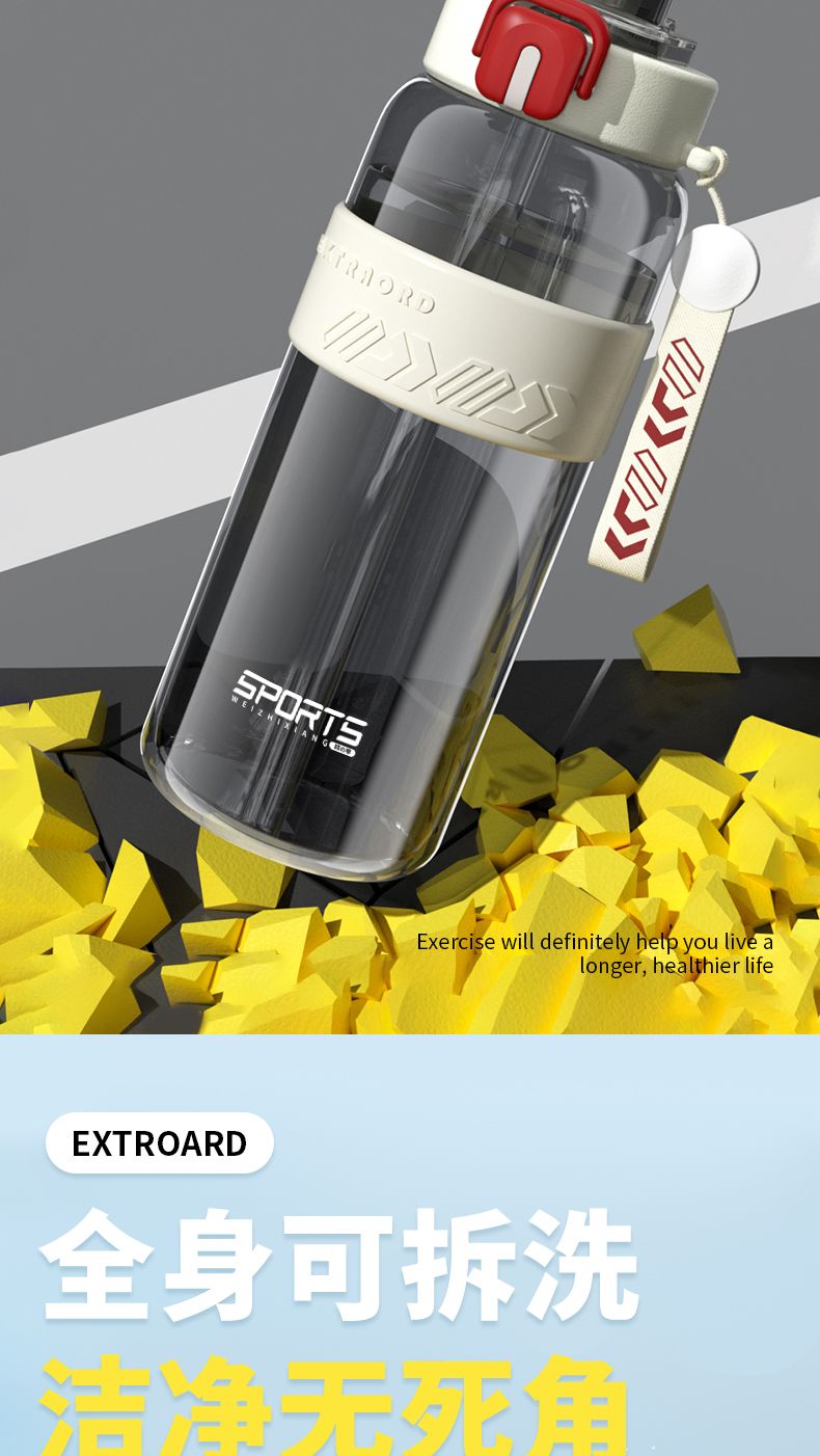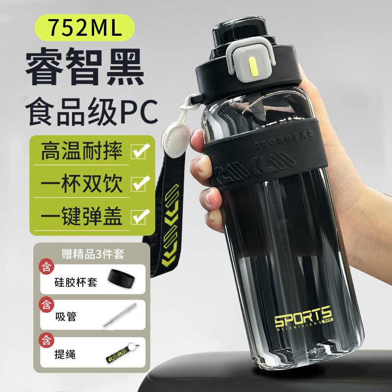 耐高温大容量水杯子运动健身户外便携水壶男女学生网红防摔吸管杯