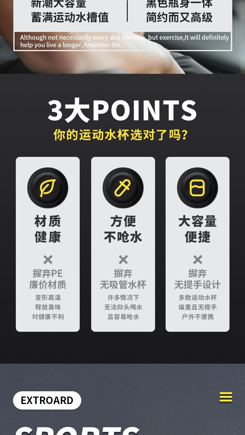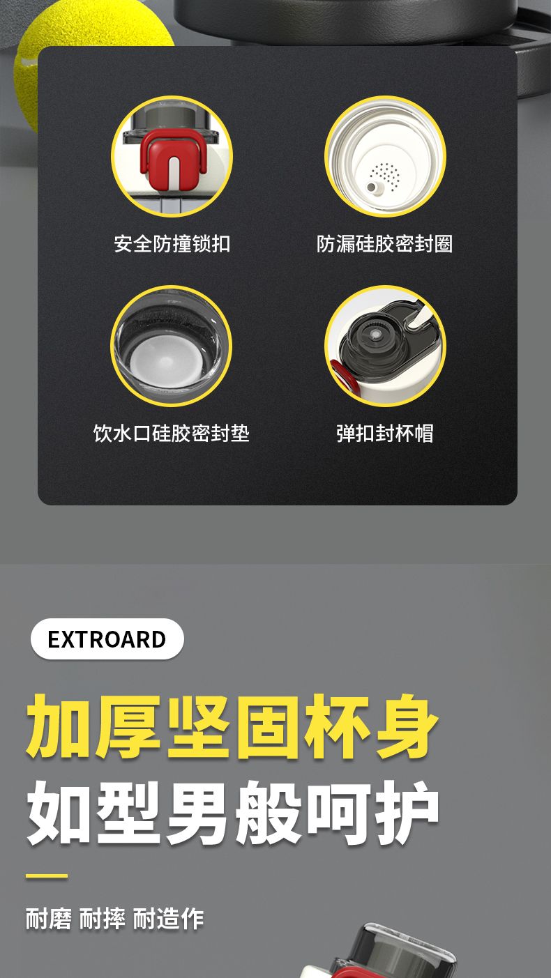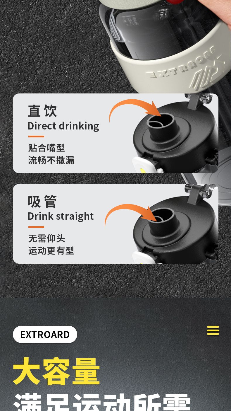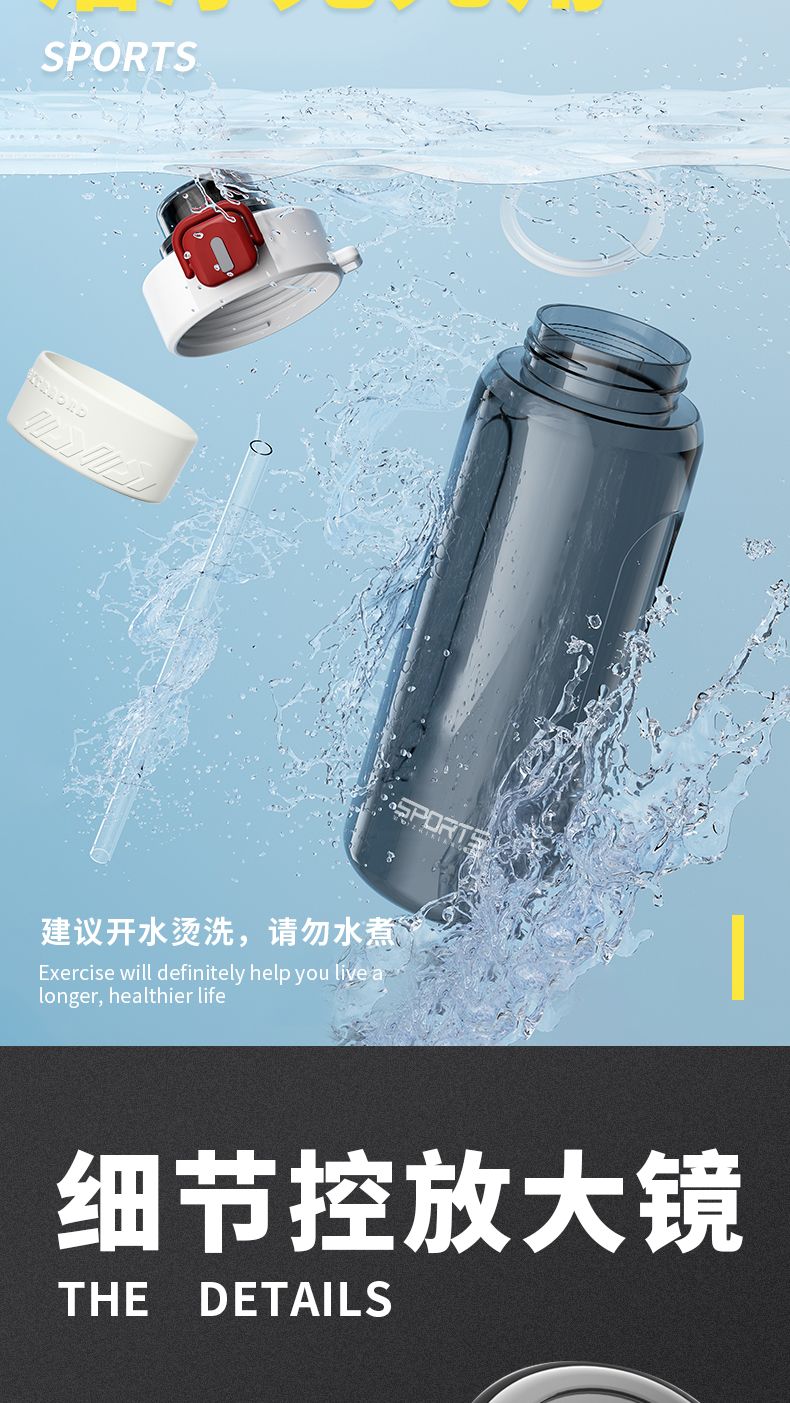 耐高温大容量水杯子运动健身户外便携水壶男女学生网红防摔吸管杯