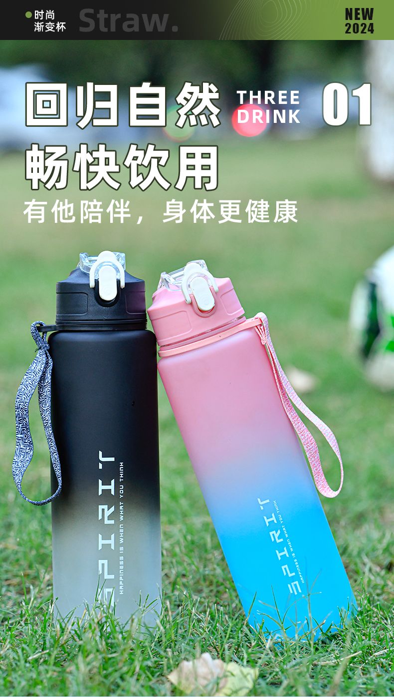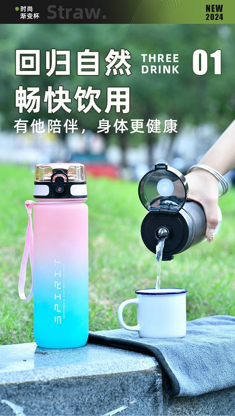拓致运动水壶新款2024便携学生专用耐高温塑料水瓶女生杯子大容量
