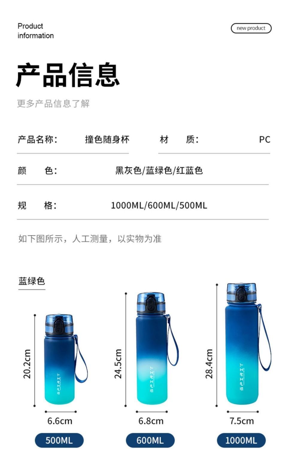 【耐高温】随手夏季便携运动水杯运动壶男女生上学专用随行太空杯