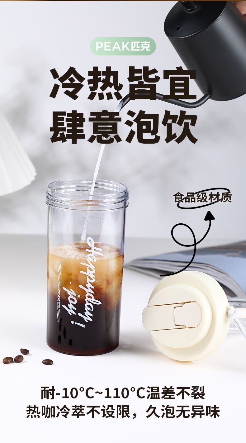 匹克运动水杯女生花茶吸管杯便携高颜值带滤网水壶耐高温饮用水具