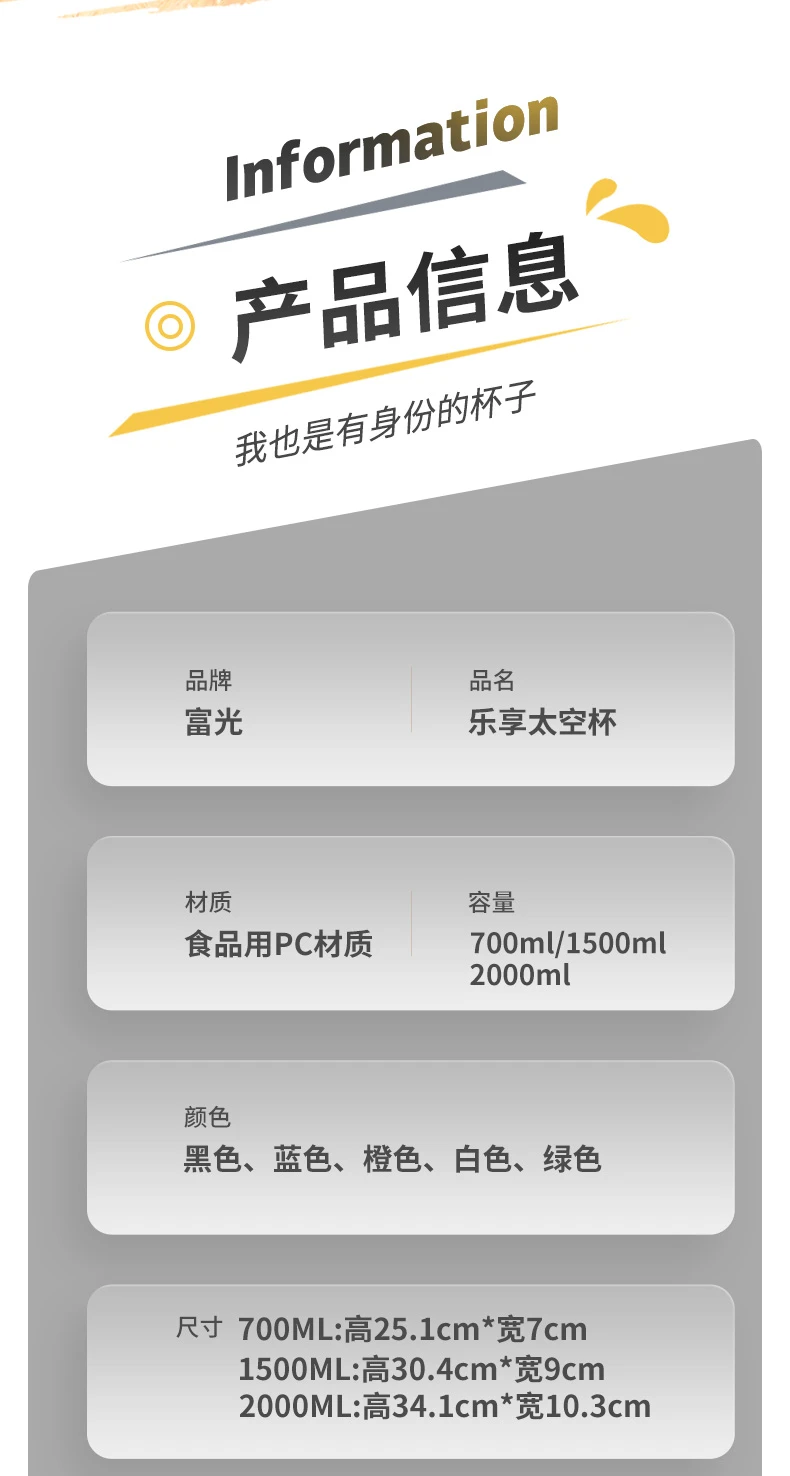 富光超大容量太空杯便携水杯塑料学生运动水壶男女户外防摔茶杯子