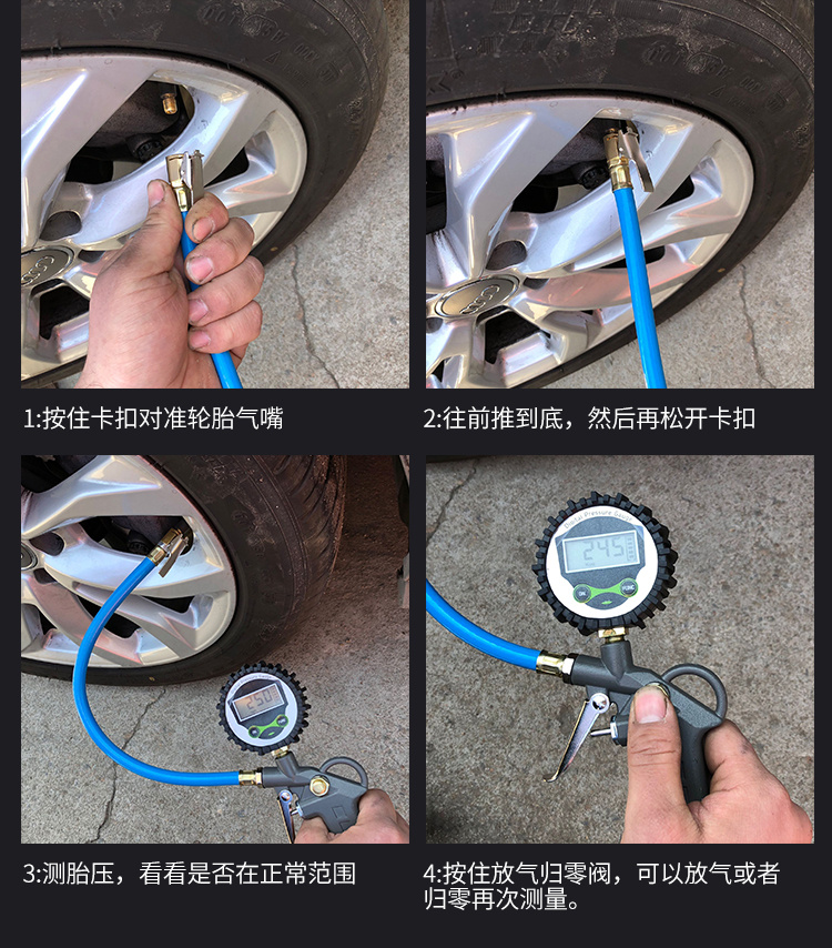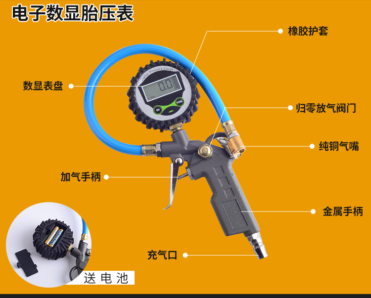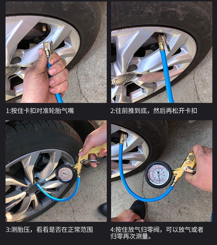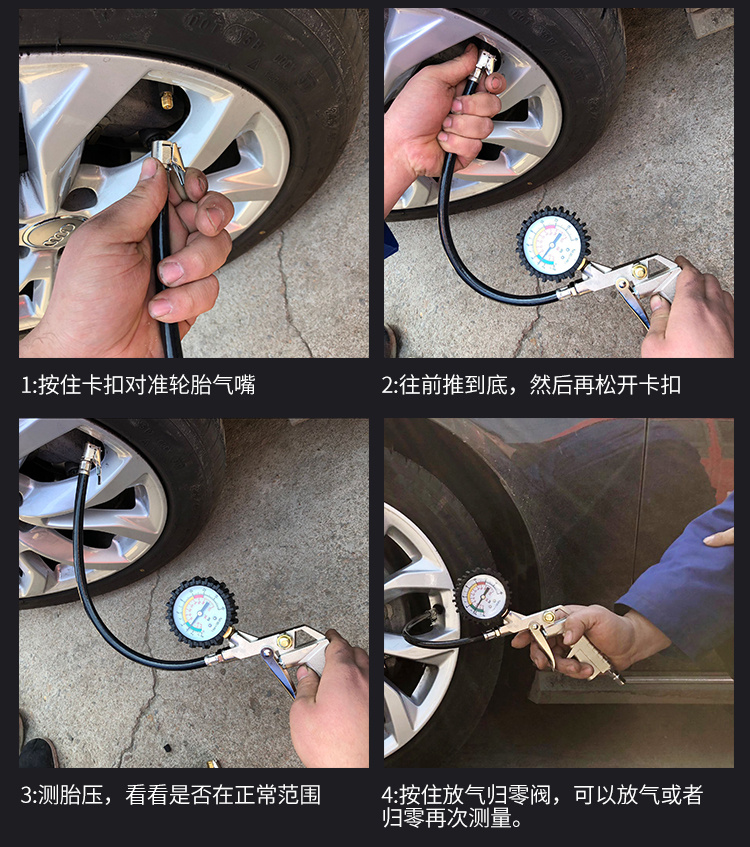 高精度 胎压表 汽车用胎压计轮胎气压表测胎压监测器打气表枪带充