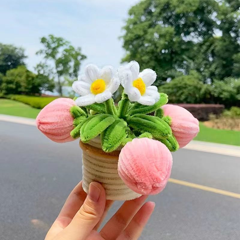 扭扭棒花束小盆栽手工diy材料包自制向日葵幼儿园手工制作永生花