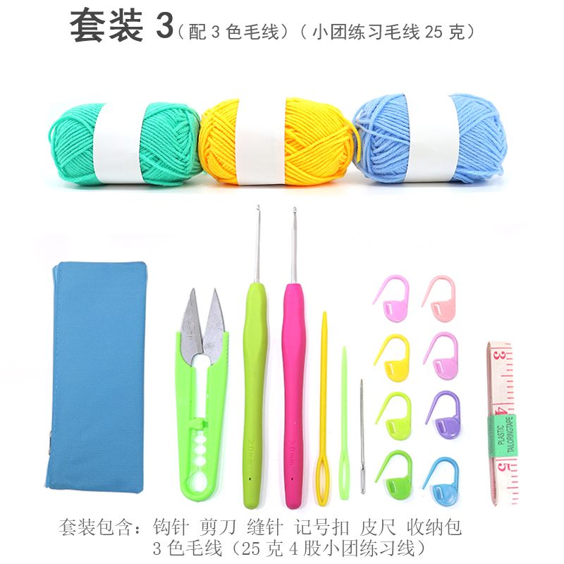 新手学毛线编织入门材料包diy手工软柄鞋勾针钩针工具套装送教程