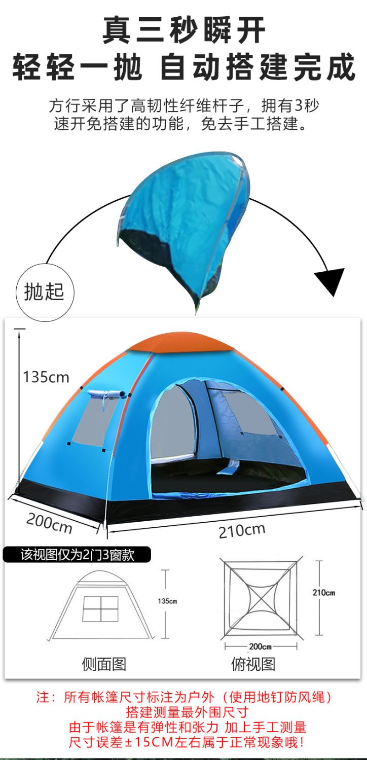| single tent [send buggy bag stake wind rope]](单帐篷【送收纳袋地钉风绳子】) | USD $33.78 | 999999 piece available |