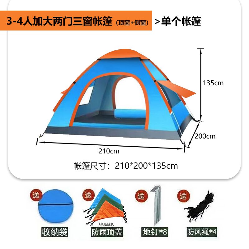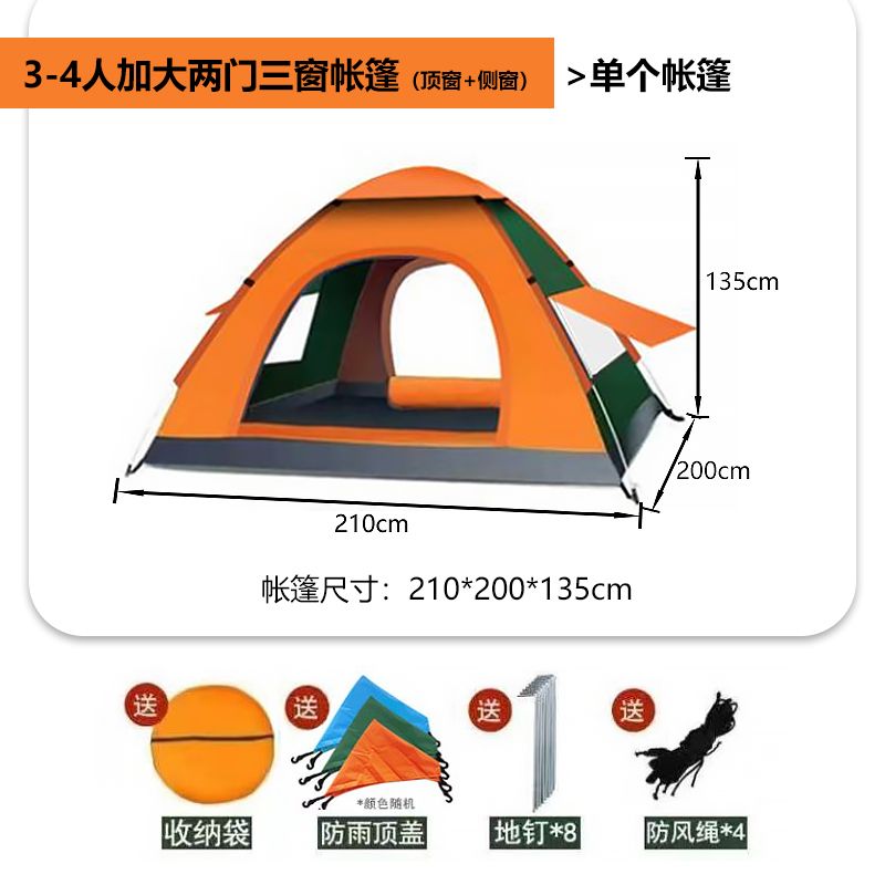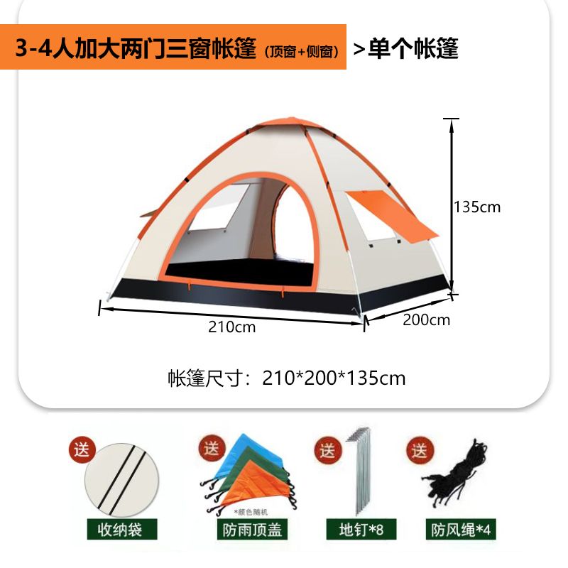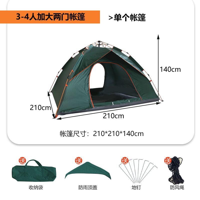 帐篷户外3-4人全自动野营露营2单人双人野外加厚防雨速开帐篷