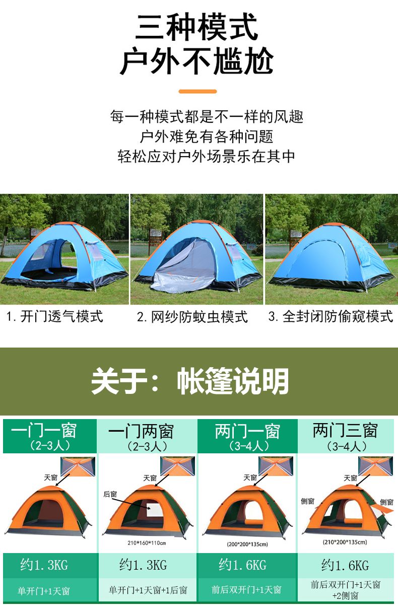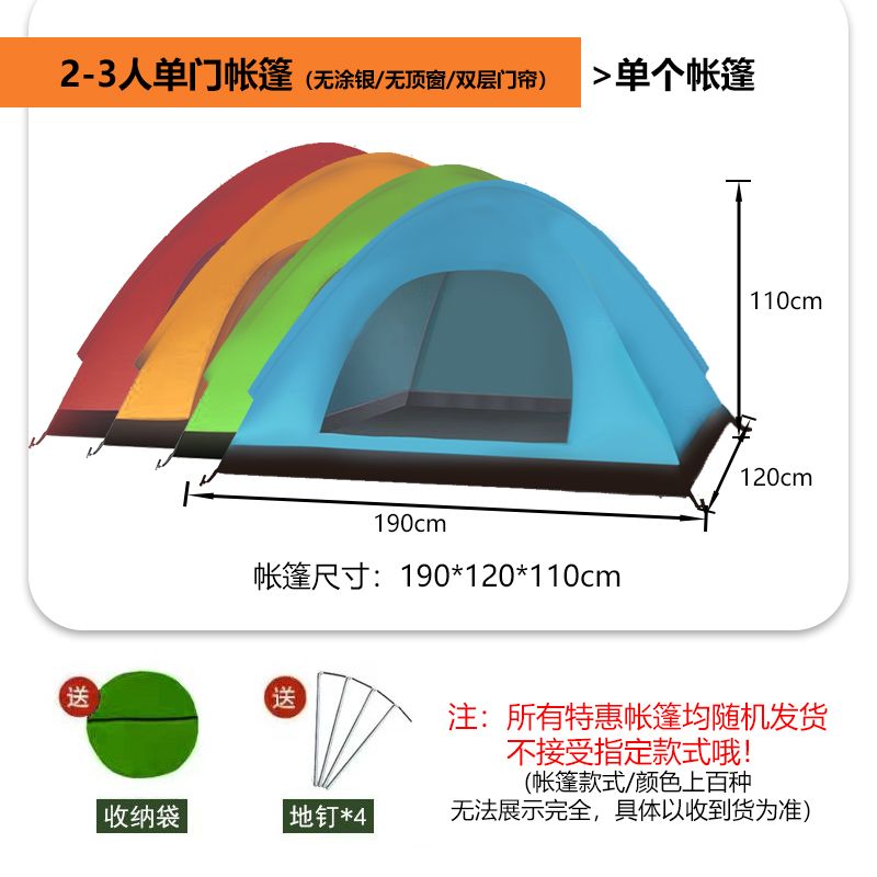 | single tent [send buggy bag stake wind rope]](单帐篷【送收纳袋地钉风绳子】) | USD $37.4 | 999999 piece available |
