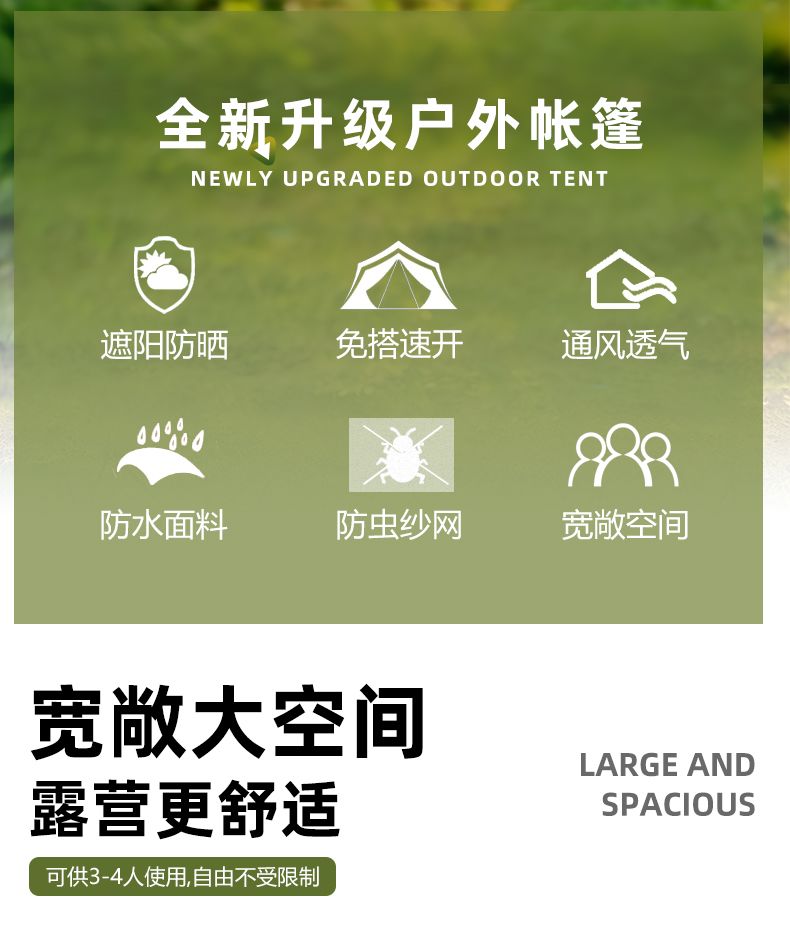| tent + moisture proof pad + picnic mat [play]](帐篷+防潮垫+野餐垫【畅玩】) | USD $21.5 | 999999 piece available |