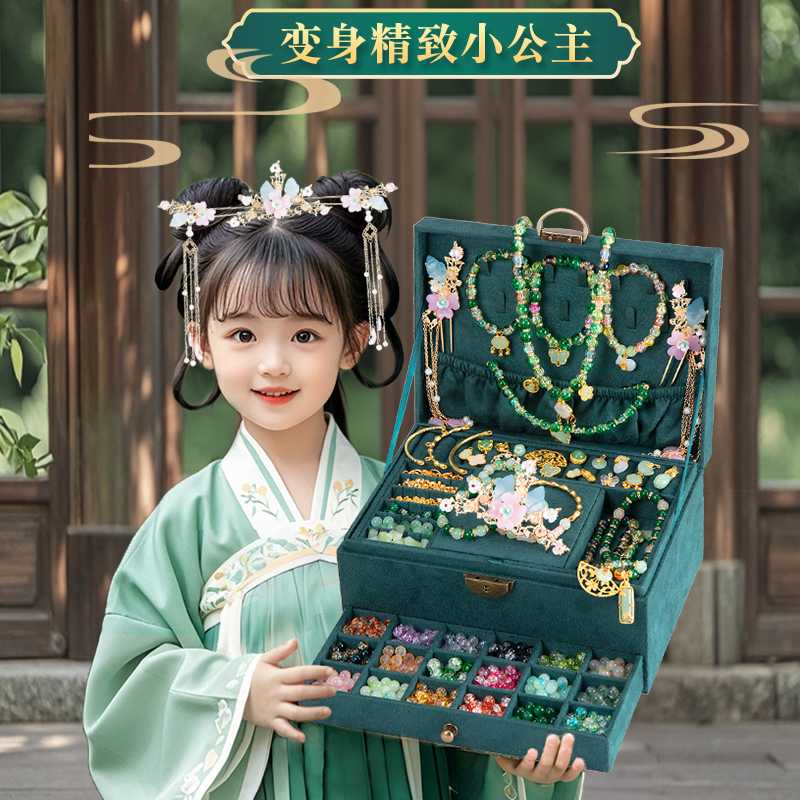 儿童古风琉璃手链礼盒女童串珠手工diy材料国风手串玩具女孩礼物