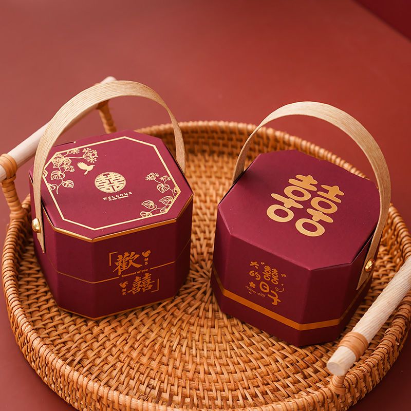 2025新款手提喜糖盒子结婚中式婚礼伴手回礼盒订婚用糖果盒喜糖袋