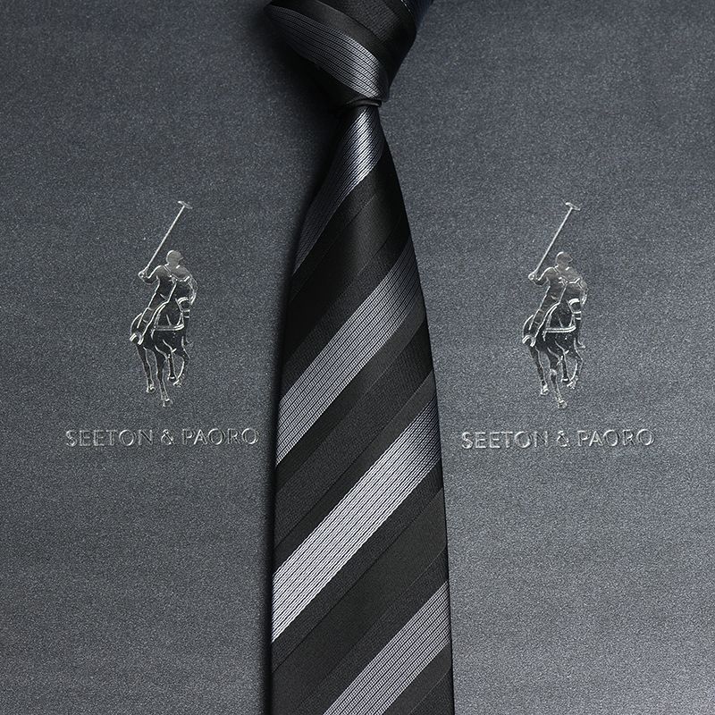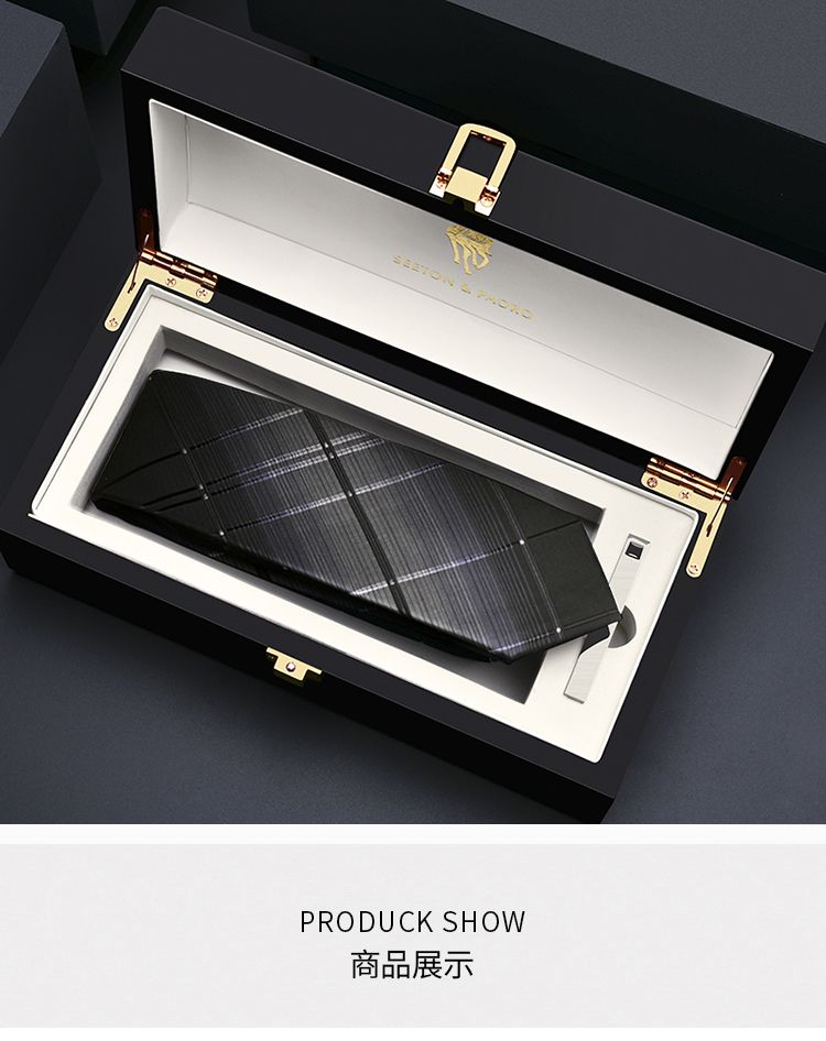 保罗轻奢领带男正装商务西装手打免打拉链式结婚新郎黑色高档礼盒