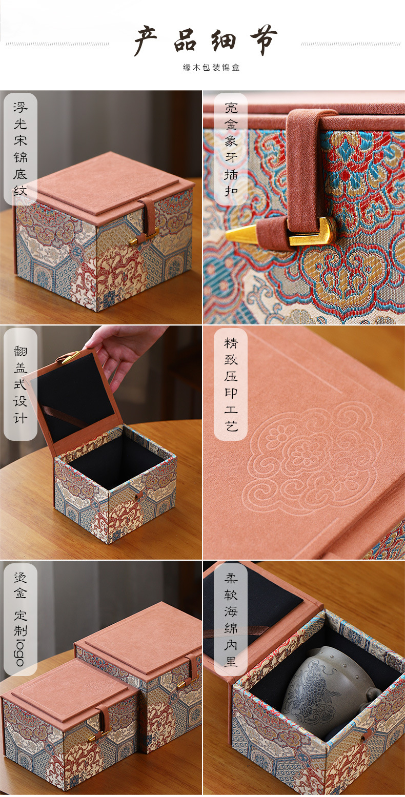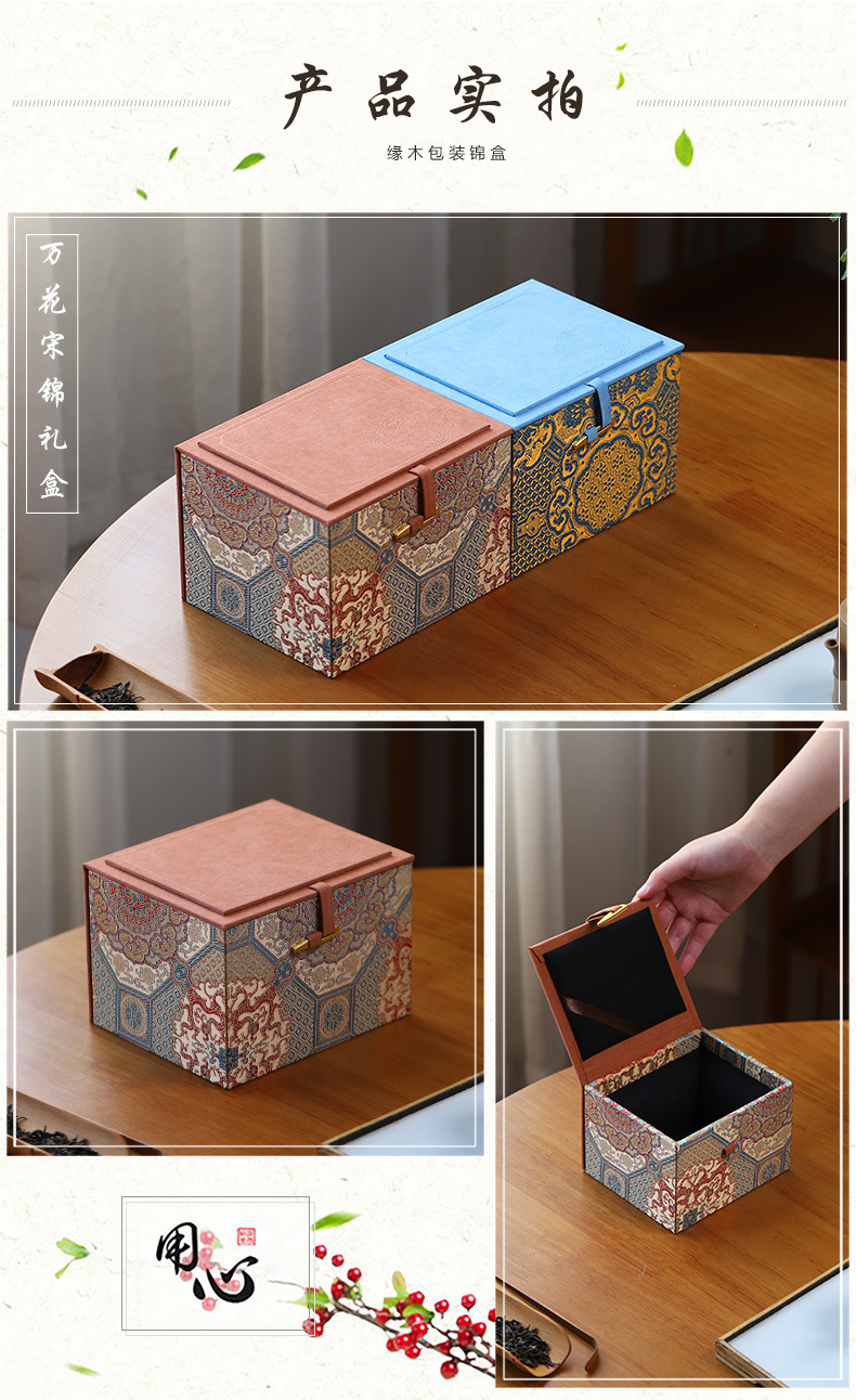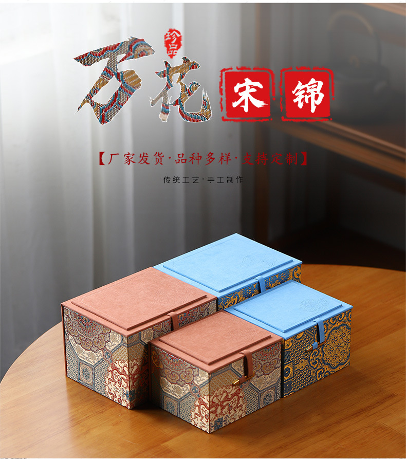 万花宋锦纹锦盒 国风珠宝首饰盒紫砂壶瓷器建盏主人杯茶具礼盒