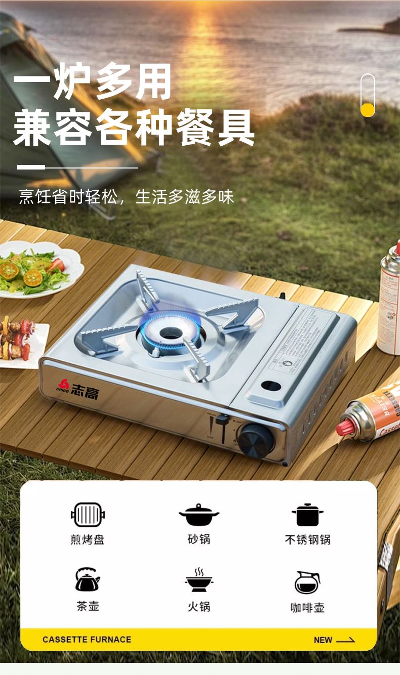 网红志高卡式炉气灶户外便携式卡磁炉烧烤炉猛火防爆自动保护气罐