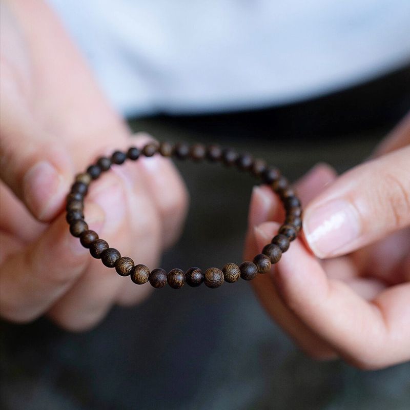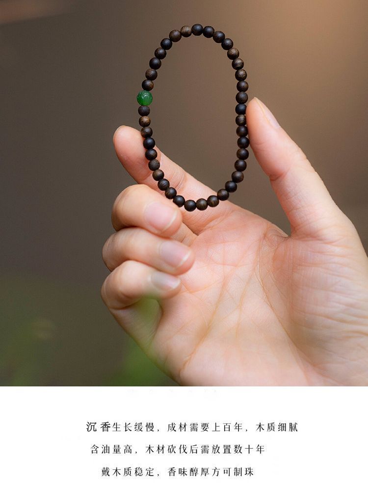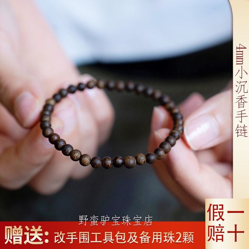 奇楠沉香木手串女4mm文莱沉香真品小米粒珠极细经典百搭禅意手链