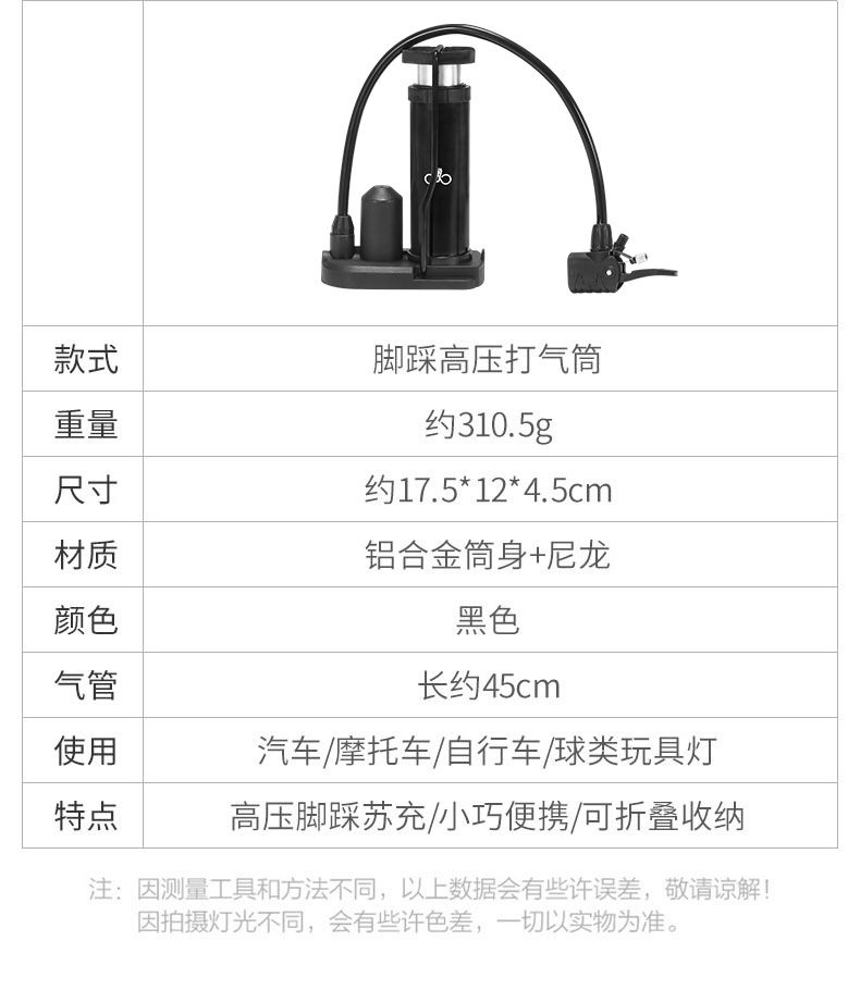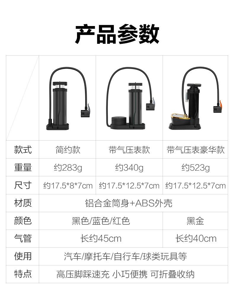 打气筒自行车电动电瓶车篮球摩托车汽车家用多功能小型便携式脚踩