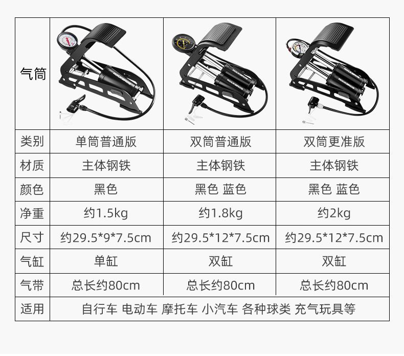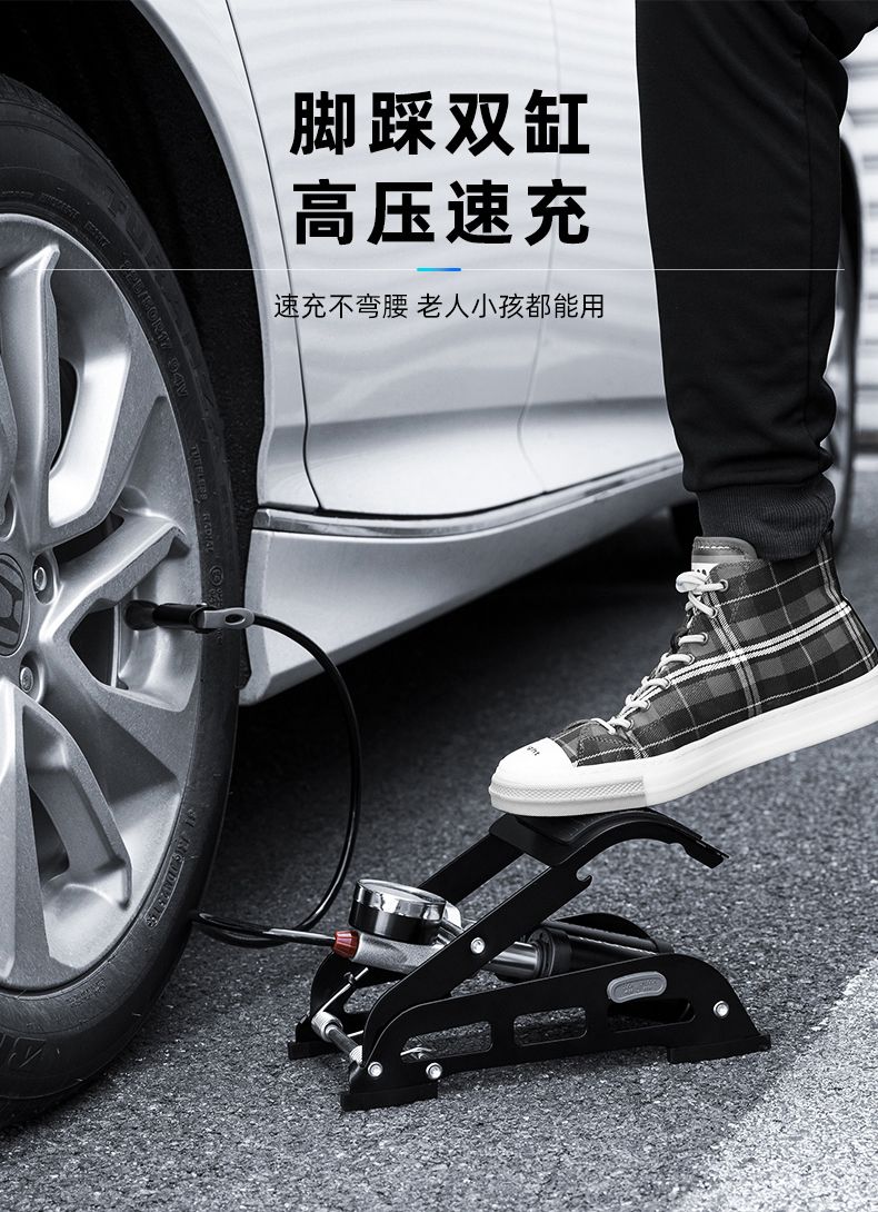 洛克兄弟脚踩打气筒高压便携式篮球自行车电动车摩托车汽车充气泵