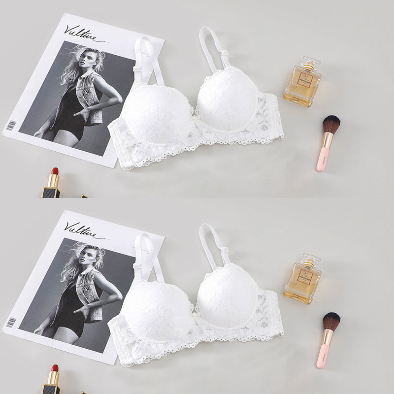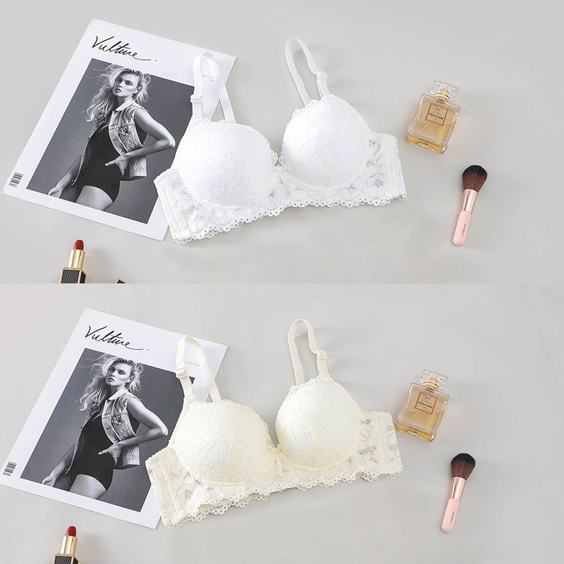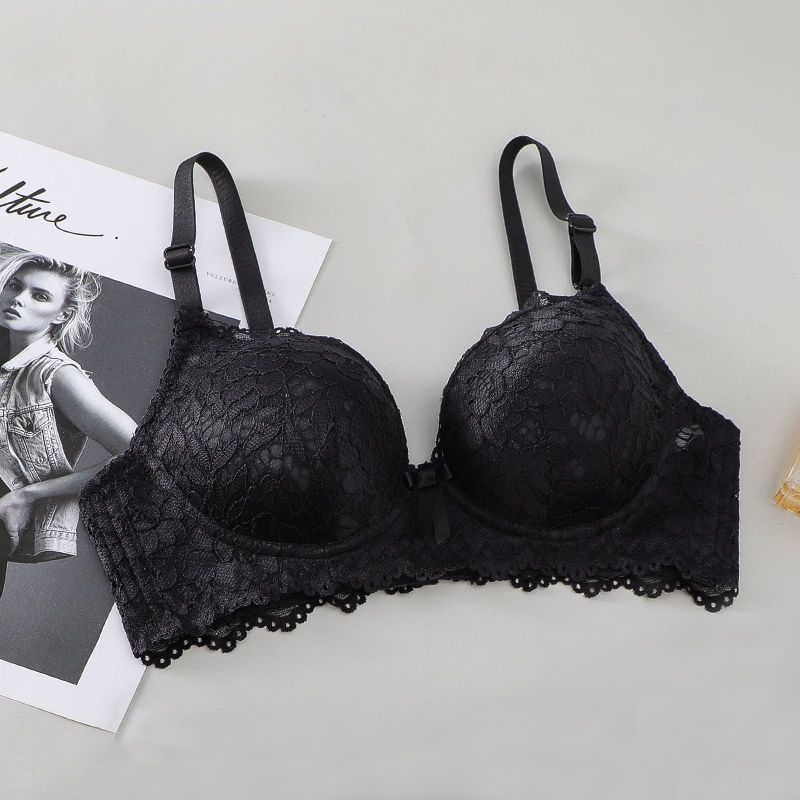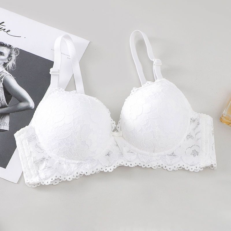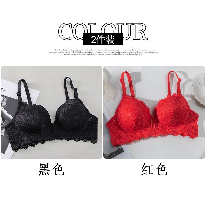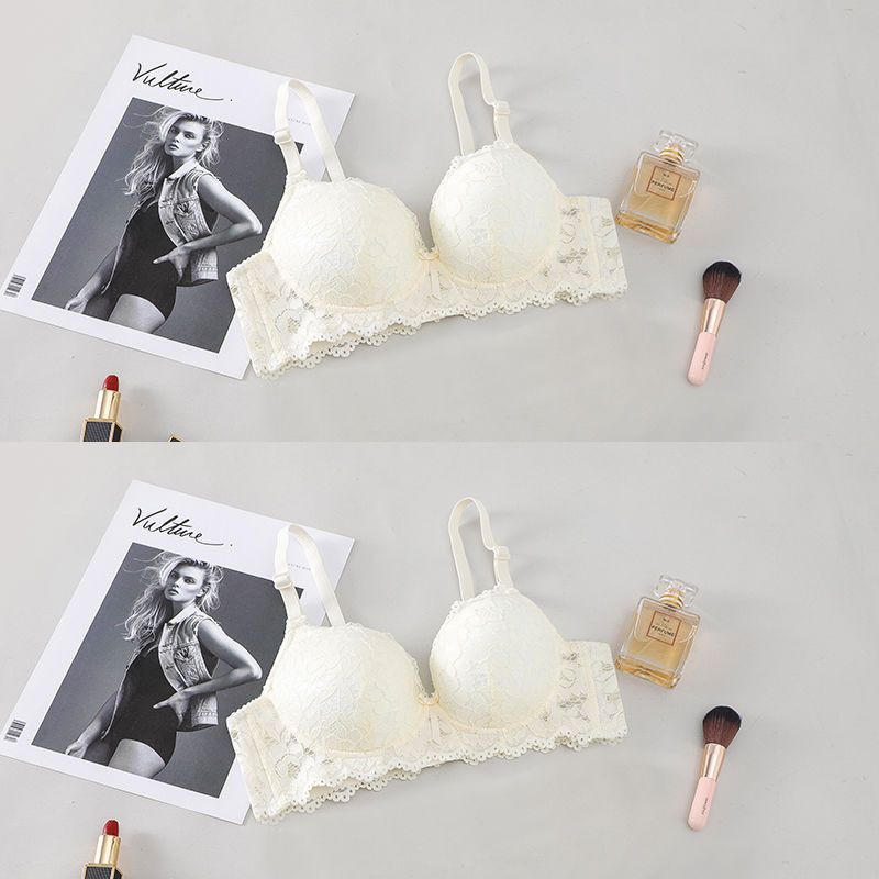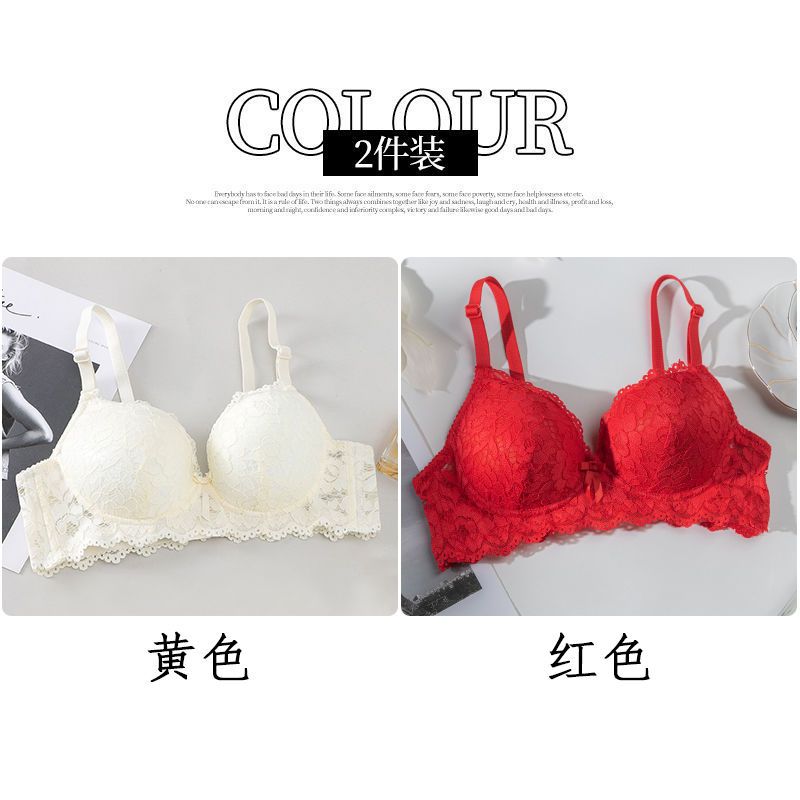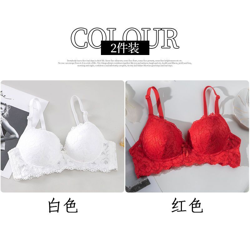 小胸聚拢少女内衣高中学生无钢圈蕾丝性感胸罩上托显大文胸套装薄