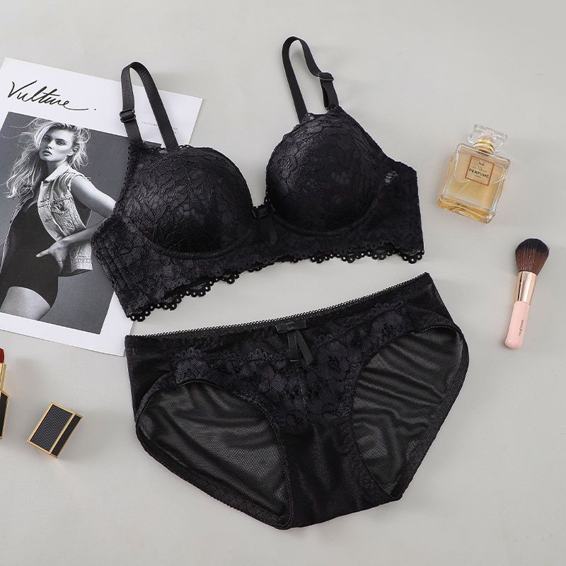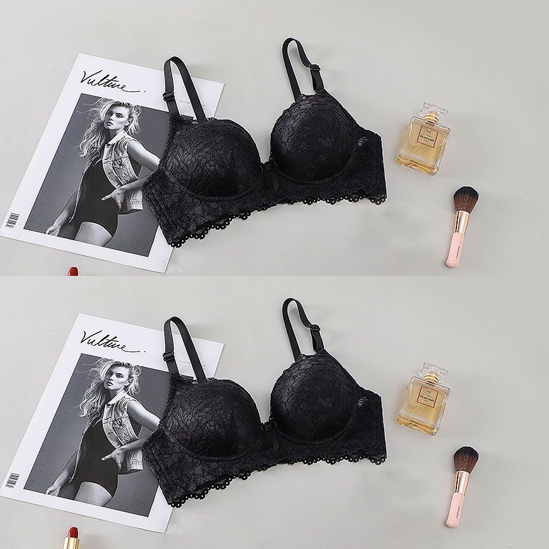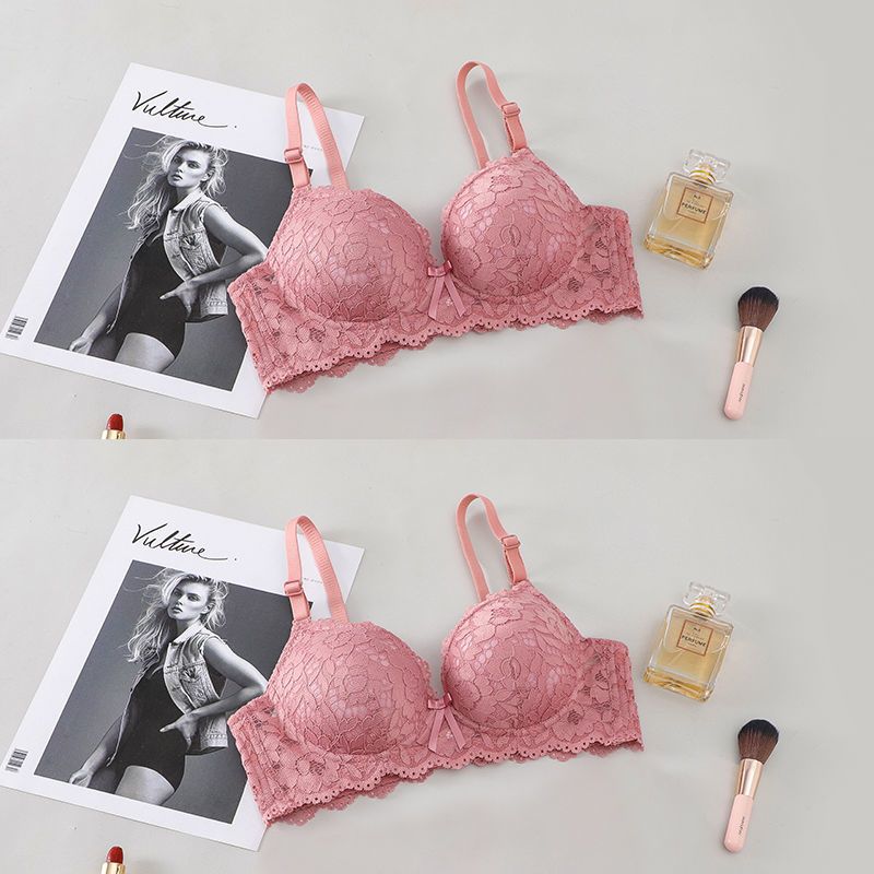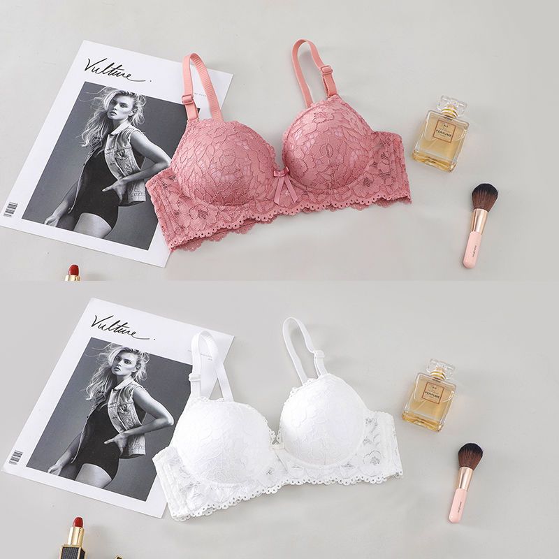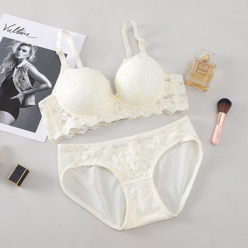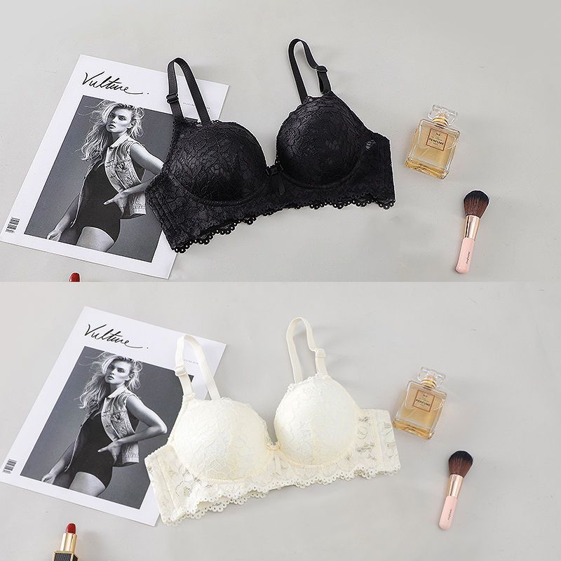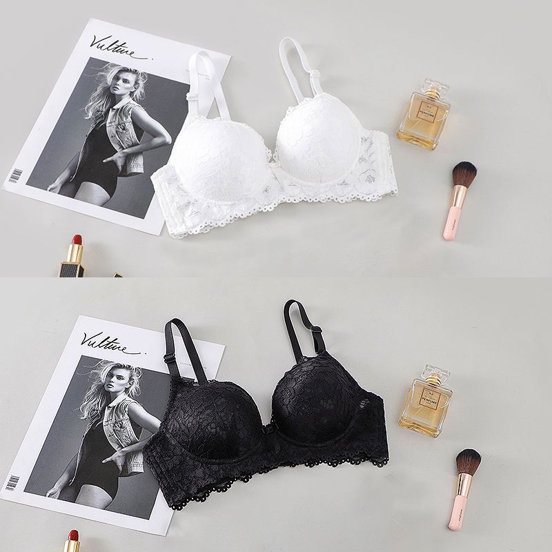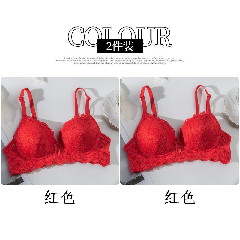 小胸聚拢少女内衣高中学生无钢圈蕾丝性感胸罩上托显大文胸套装薄