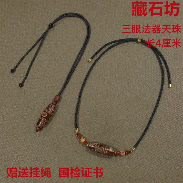 | ancient red three eyes dharma-vessel tibet beads [4cm long] vertical wear(古红三眼法器天珠【长4厘米】竖穿) | USD $2.29 | 999999 piece available |