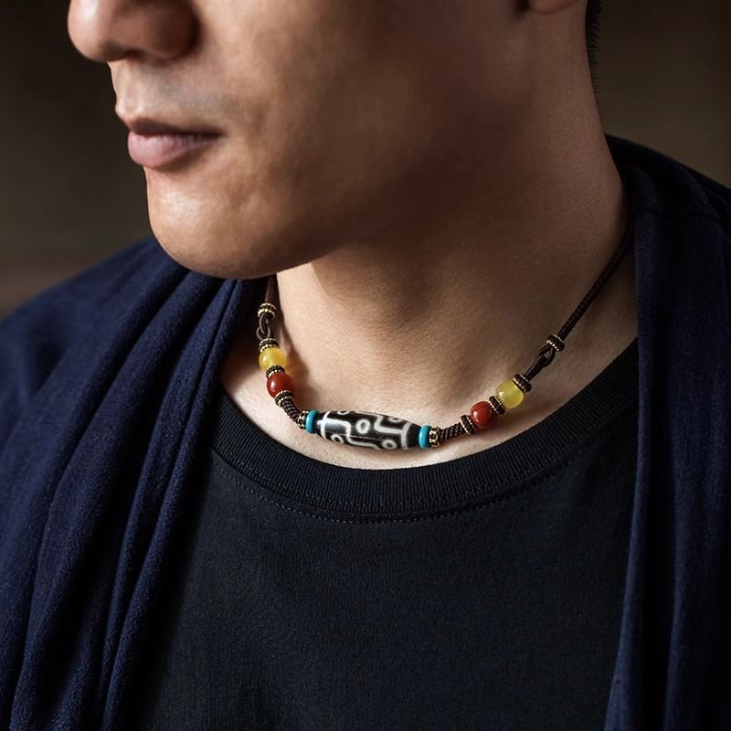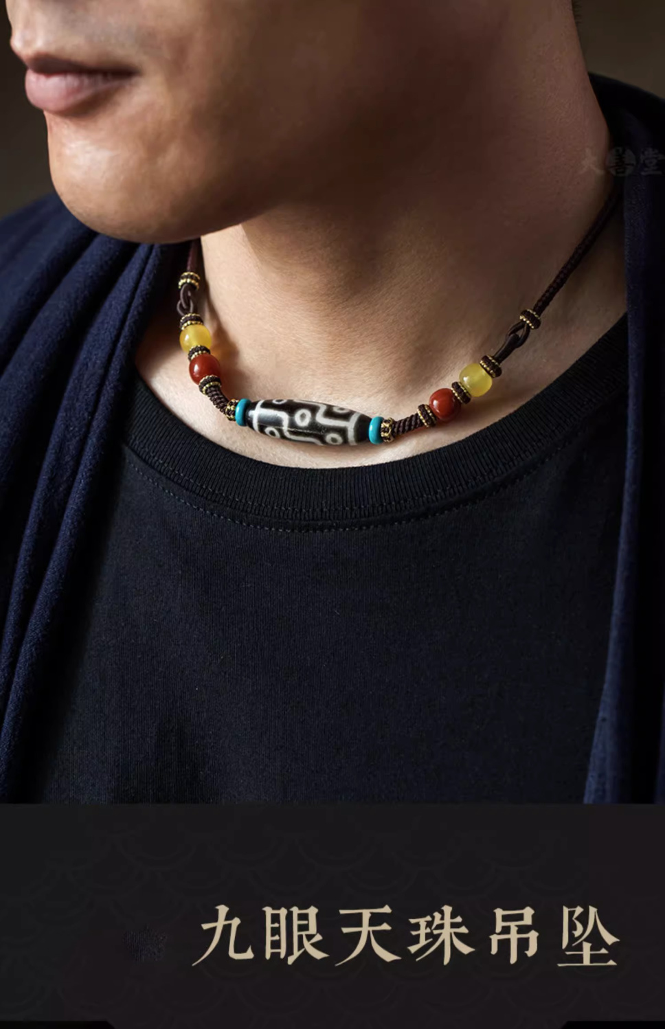 西藏九眼天珠锁骨链男士本命年复古项链女不掉色吊坠藏式饰品高级